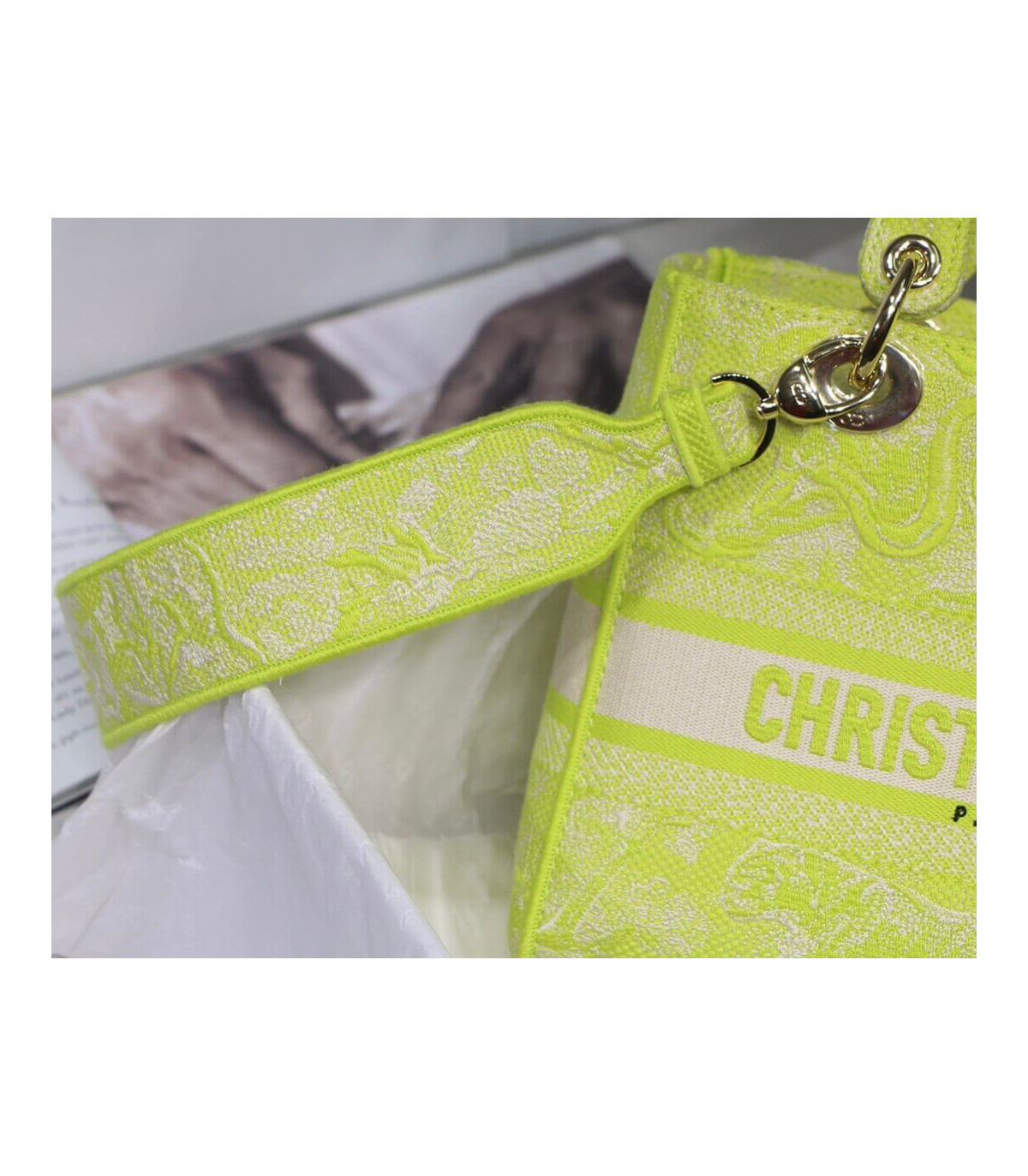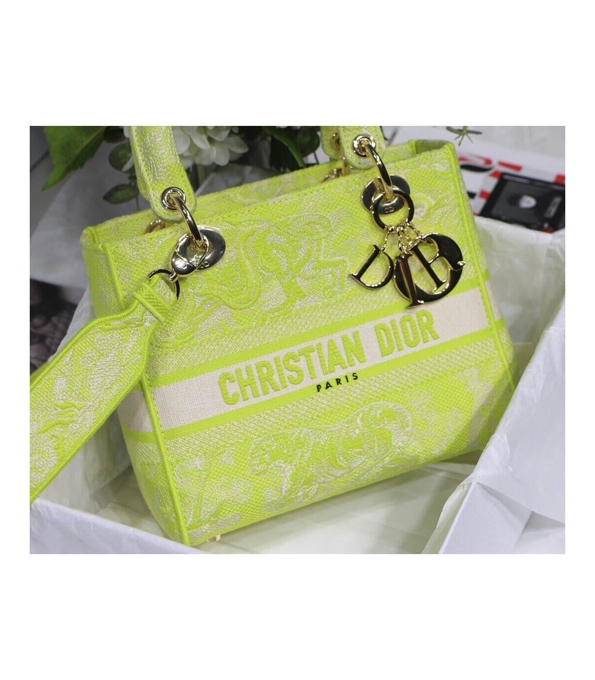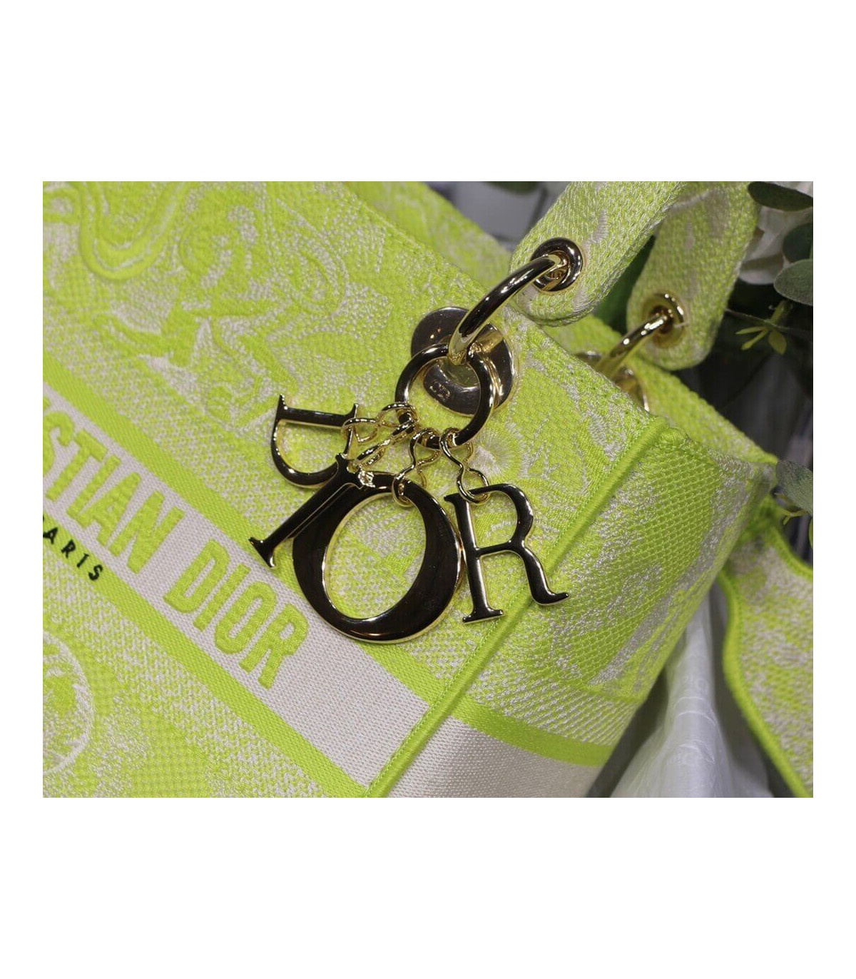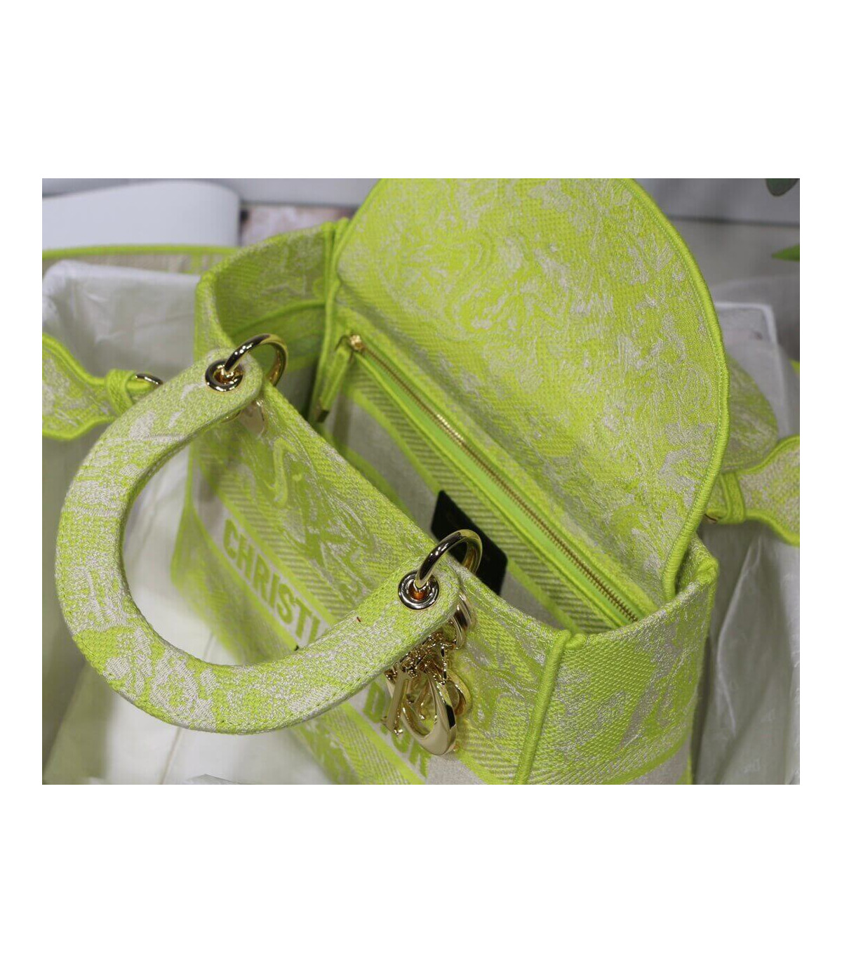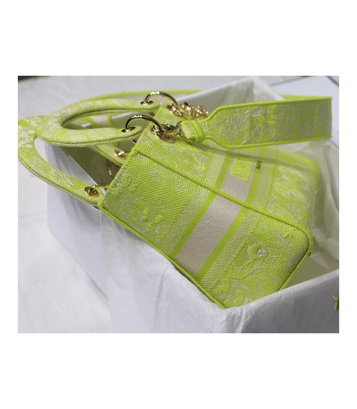 Dior Medium Lady D-Lite Bag Lime Toile de Jouy Reverse Embroidery