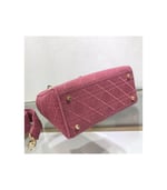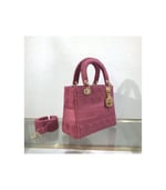 The Lady D-Lite handbag epitomizes Dior’s vision of elegance and beauty. A sleek, feminine bag, it’s timeless yet modern. Crafted in fully embroidered beige Cannage canvas with a ‘Christian Dior’ signature on the front, its supreme finishing instantly stands out. The pale gold-tone signature ‘D. I. O. R.’ charms embellish its silhouette. This medium style has a large fully embroidered, removable shoulder strap.