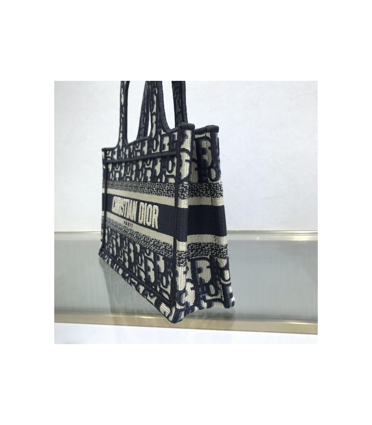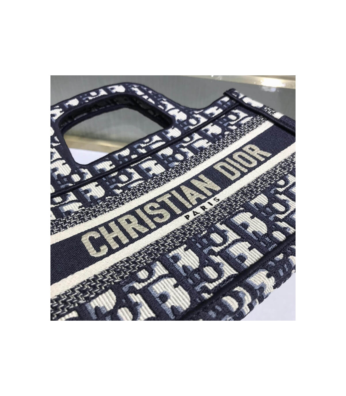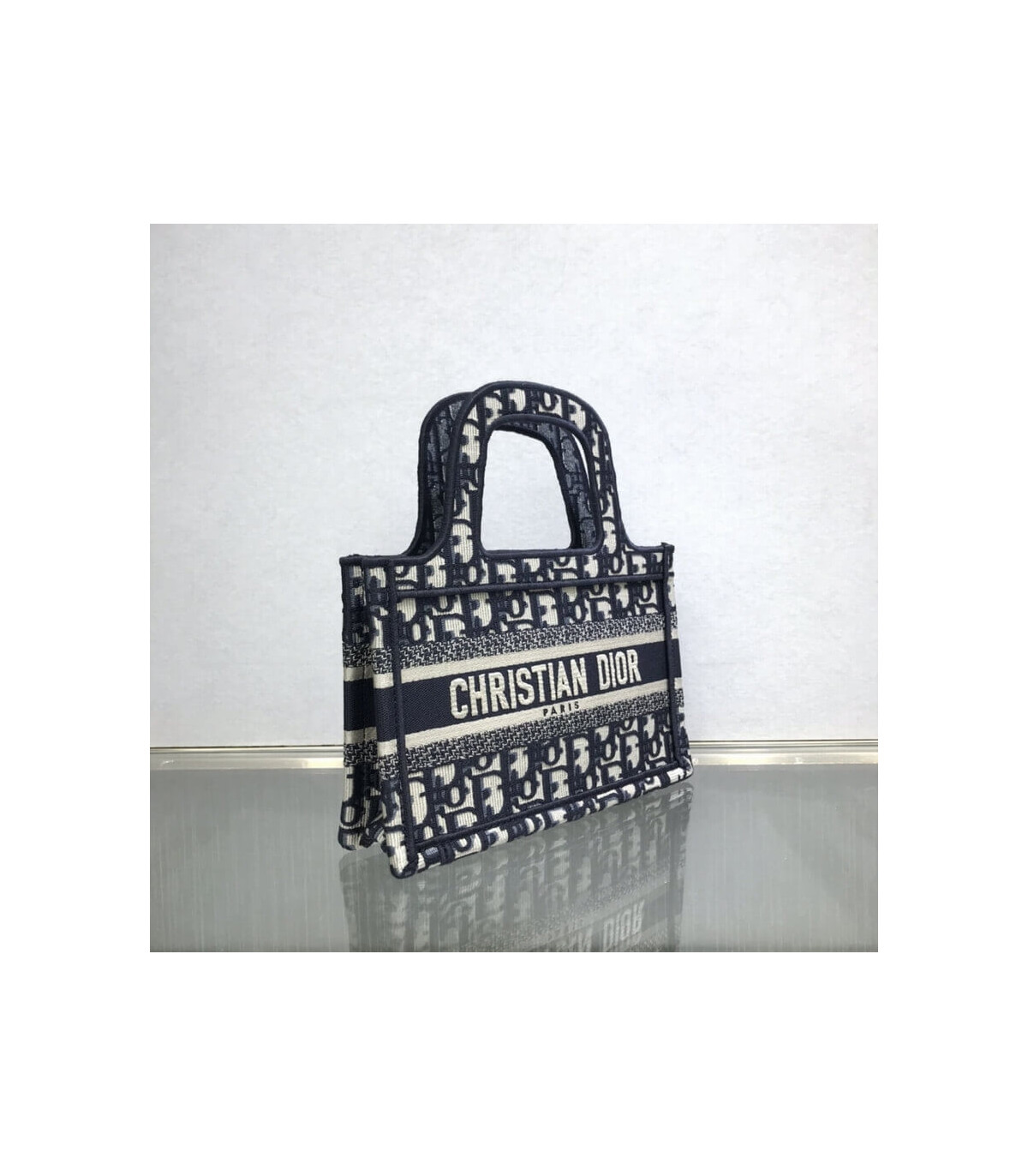 The Mini Dior Book tote, an original style introduced by Dior’s creative director Maria Grazia Chiuri, has become a staple of the Maison’s aesthetic. Ideally designed to carry a paperback-sized book and some daily essentials, the mini bag is made of fully embroidered canvas and features the logo mania original Dior Oblique pattern with the ‘Christian Dior’ signature on the front. This carryall is a perfect example of the Dior savoir-faire. It may be paired with small leather goods accessories for a complete look.