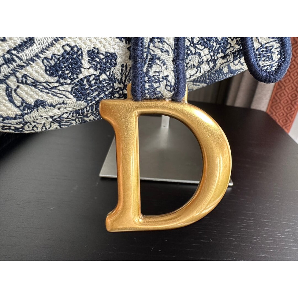 Dior Saddle Bag Blue Toile de Jouy Embroidery