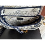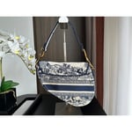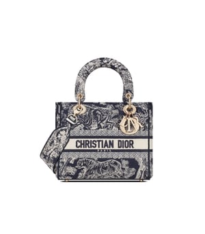 Maria Grazia Chiuri brings a fresh update to the iconic Saddle bag. The design is fully embroidered with the hallmark blue Toile de Jouy motif, further enhanced by a ‘CHRISTIAN DIOR’ signature on the front. The legendary design features a Saddle flap with a magnetic ‘D’ stirrup clasp and boasts an antique gold-finish metal ‘CD’ signature on each side of the handle. The bag can be customized with different shoulder straps and may be coordinated with the season’s other Toile de Jouy creations.