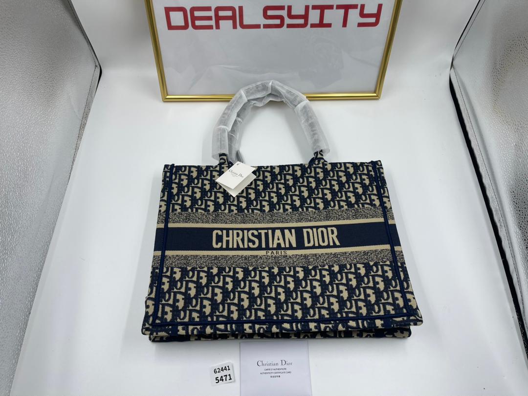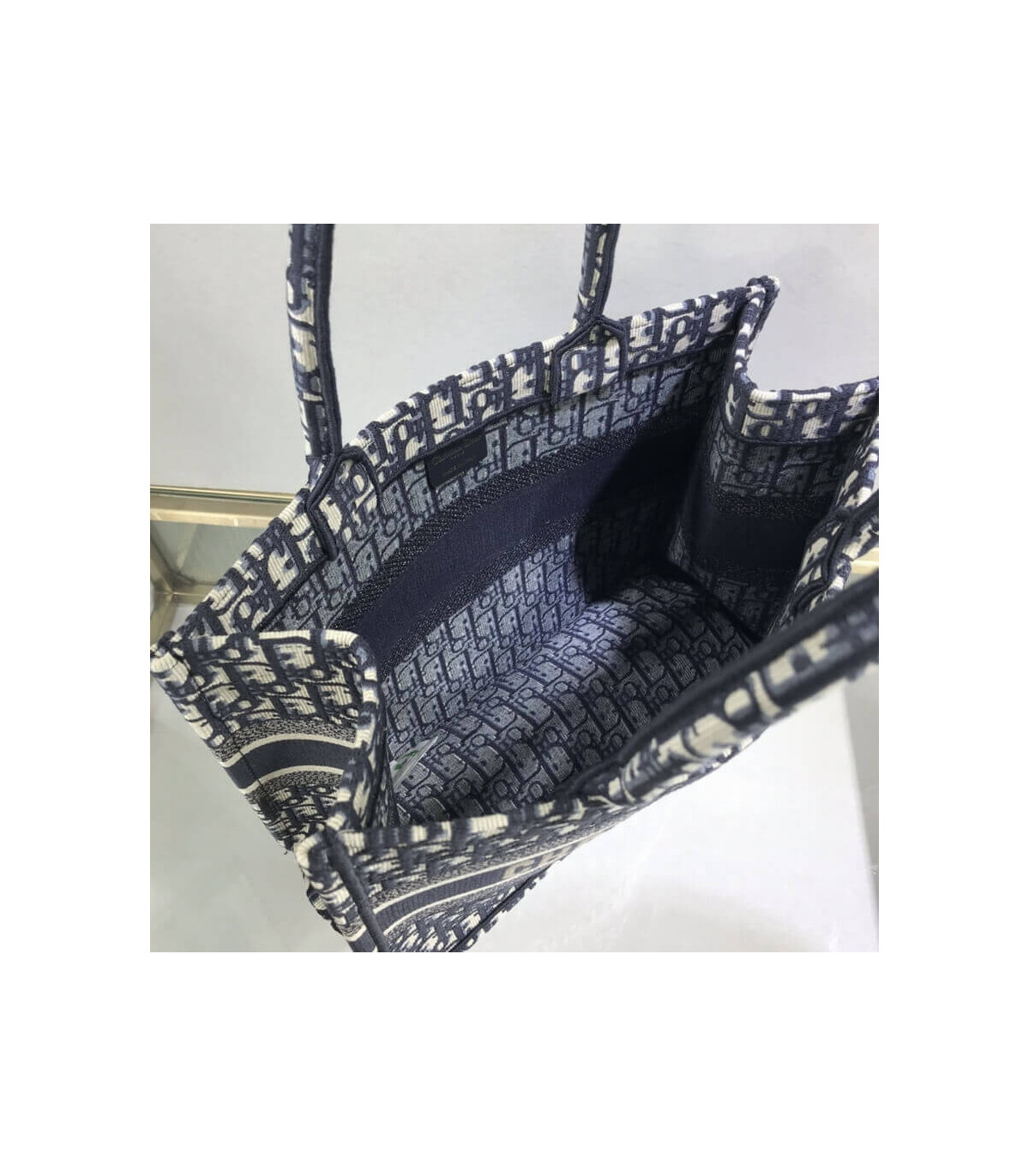 Introduced by Creative Director Maria Grazia Chiuri, the Dior Book Tote has become a staple of the Dior aesthetic. Designed to hold all the daily essentials, the small style has been fully embroidered with a blue Dior Oblique motif. Adorned with the ‘CHRISTIAN DIOR’ signature on the front, the bag embodies the House’s signature savoir-faire and may be carried by hand or worn over the shoulder.