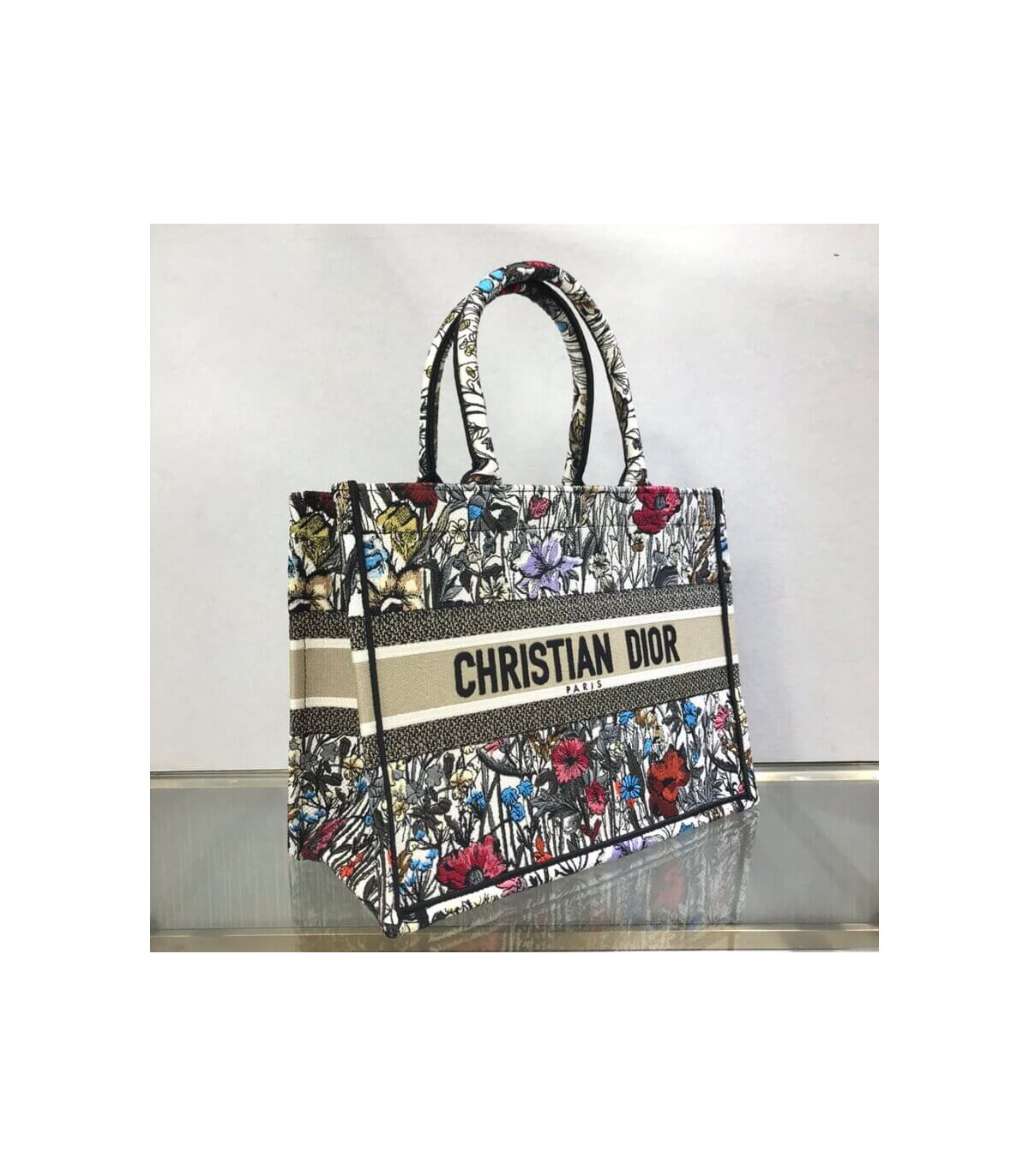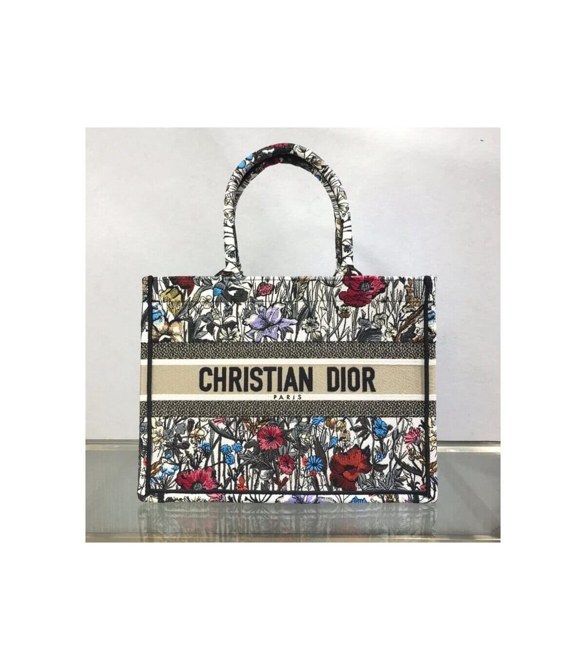 Dior Small Book Tote Multicolor Mille Fleurs Embroidery