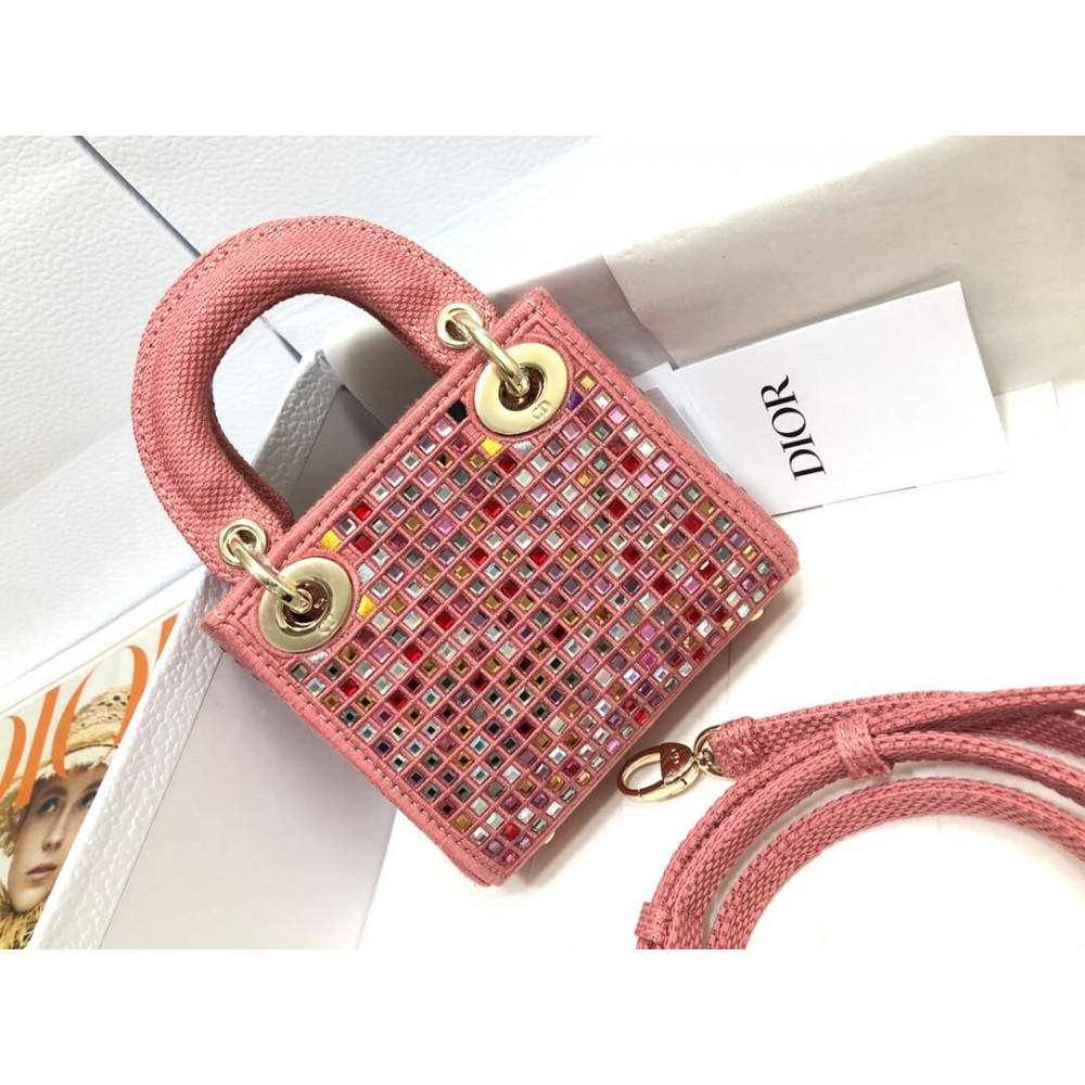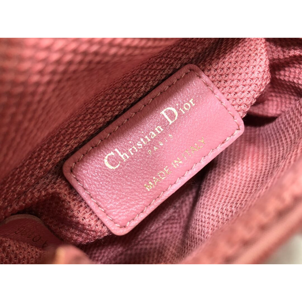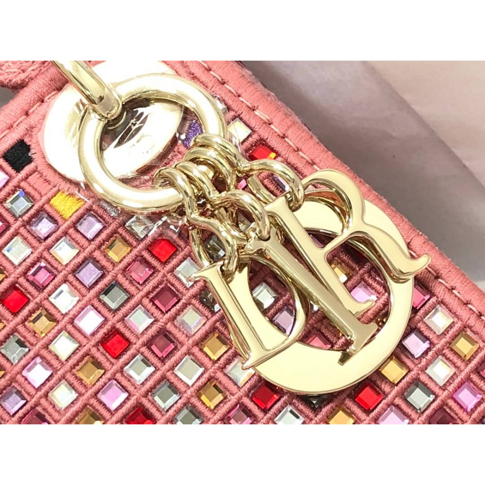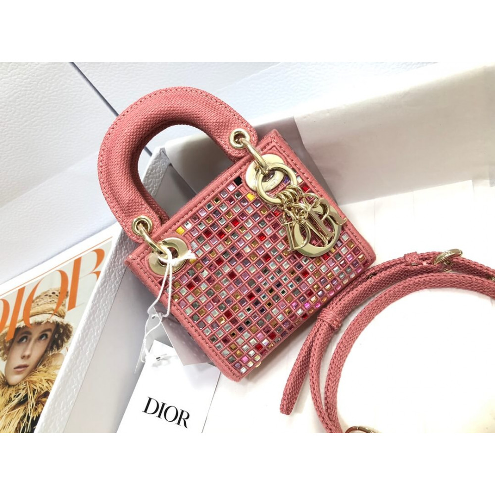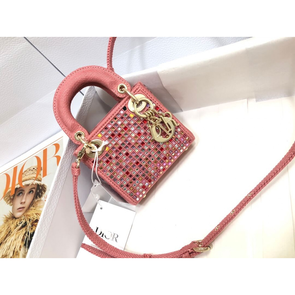 The Lady Dior bag embodies the House’s vision of elegance and beauty. Crafted in dark pink metallic canvas embroidered with multicolor crystals, its iconic silhouette is embellished with a ‘D.I.O.R.’ charm. The micro style can accommodate all the small essentials. Thanks to top handles and an adjustable and removable shoulder strap, the versatile style can be carried by hand, worn over the shoulder or crossbody.