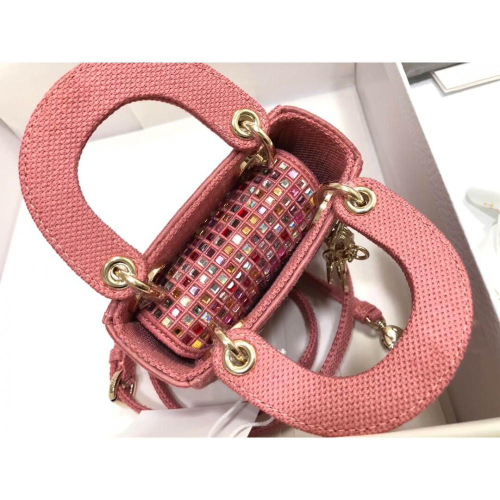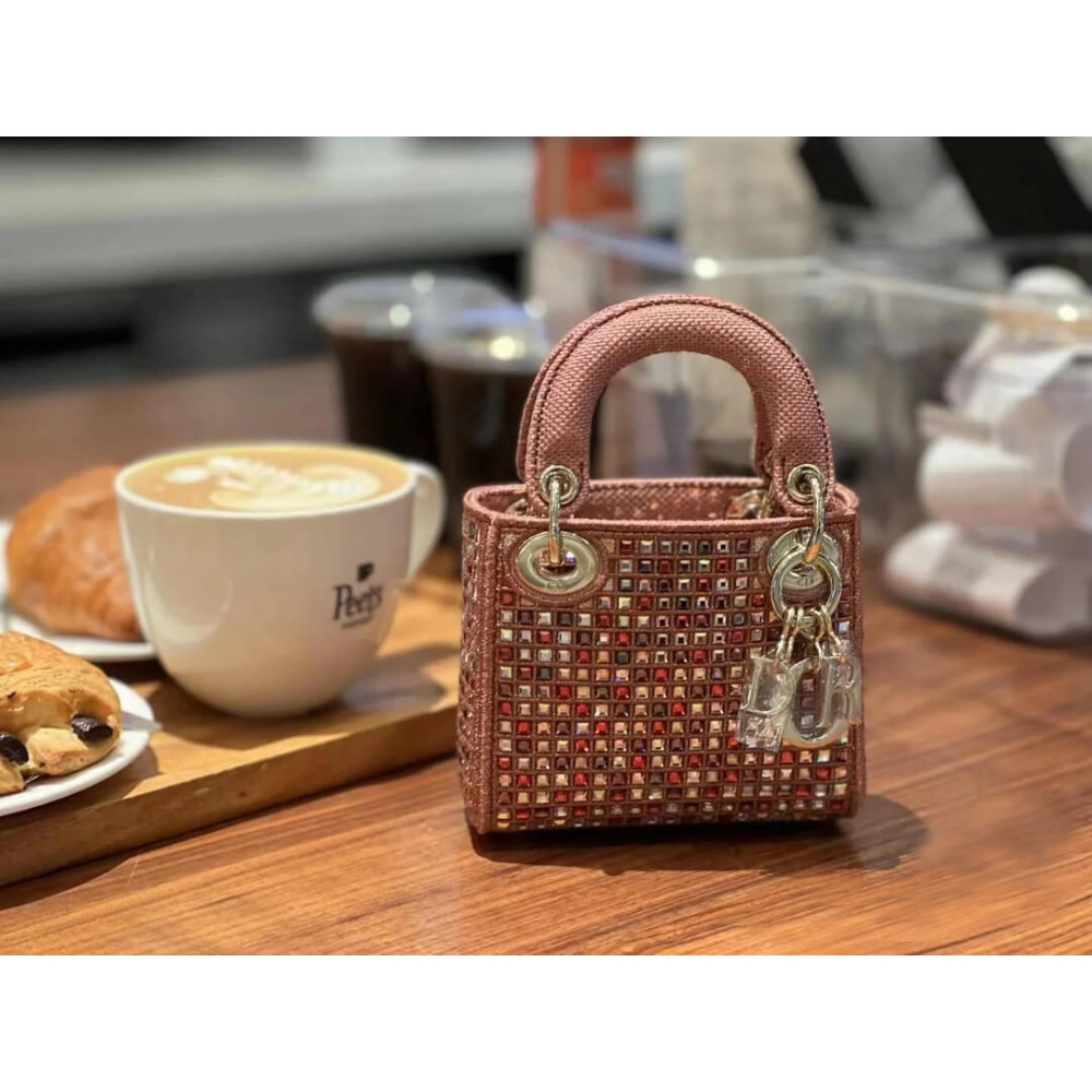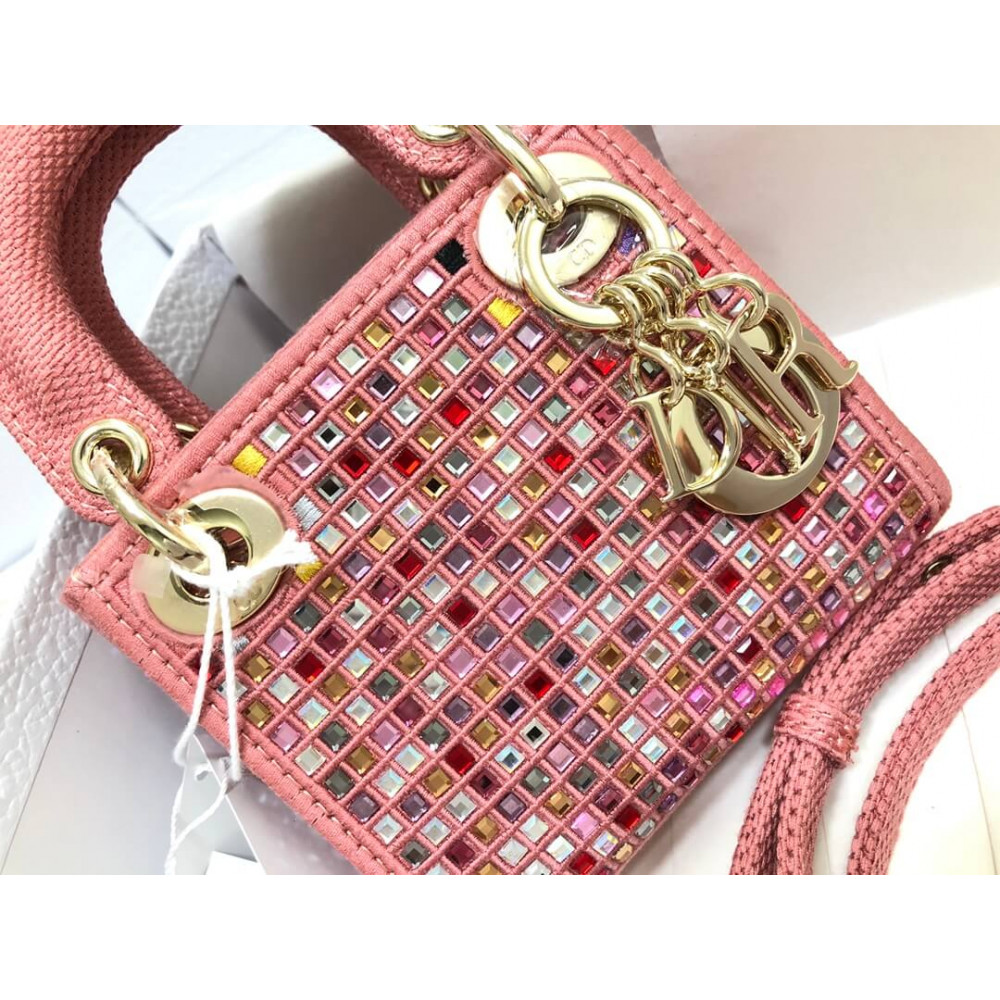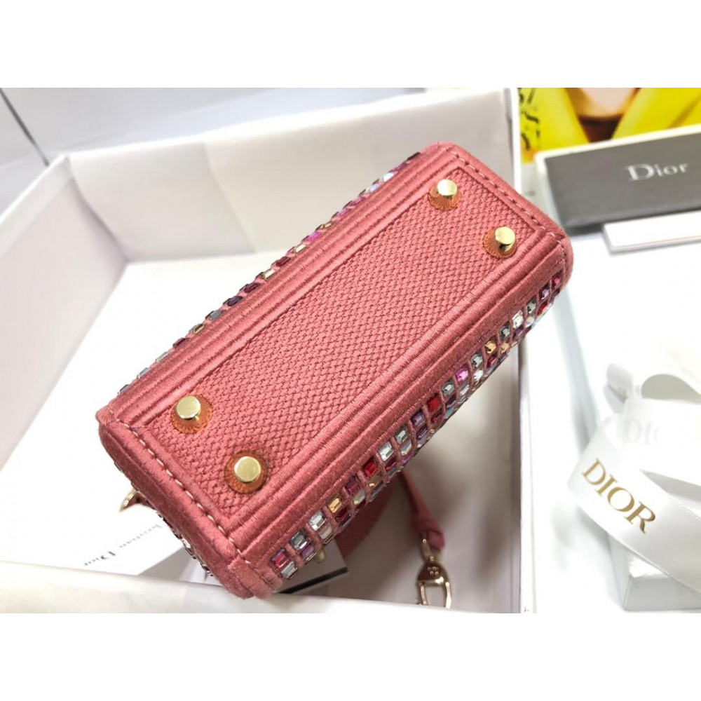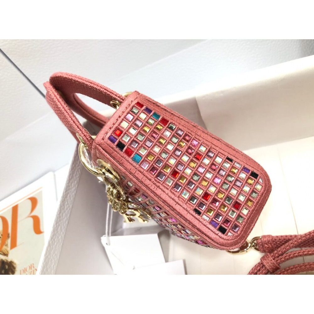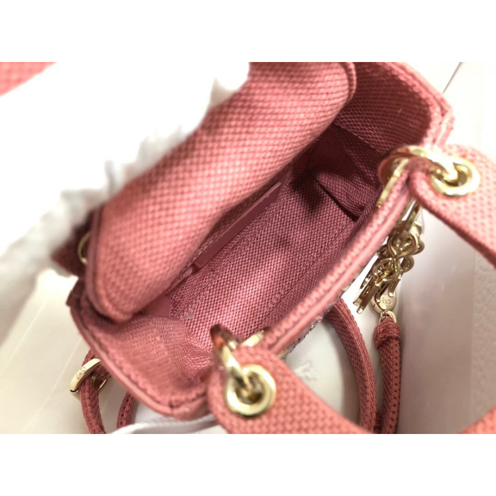 The Lady Dior bag embodies the House’s vision of elegance and beauty. Crafted in dark pink metallic canvas embroidered with multicolor crystals, its iconic silhouette is embellished with a ‘D.I.O.R.’ charm. The micro style can accommodate all the small essentials. Thanks to top handles and an adjustable and removable shoulder strap, the versatile style can be carried by hand, worn over the shoulder or crossbody.