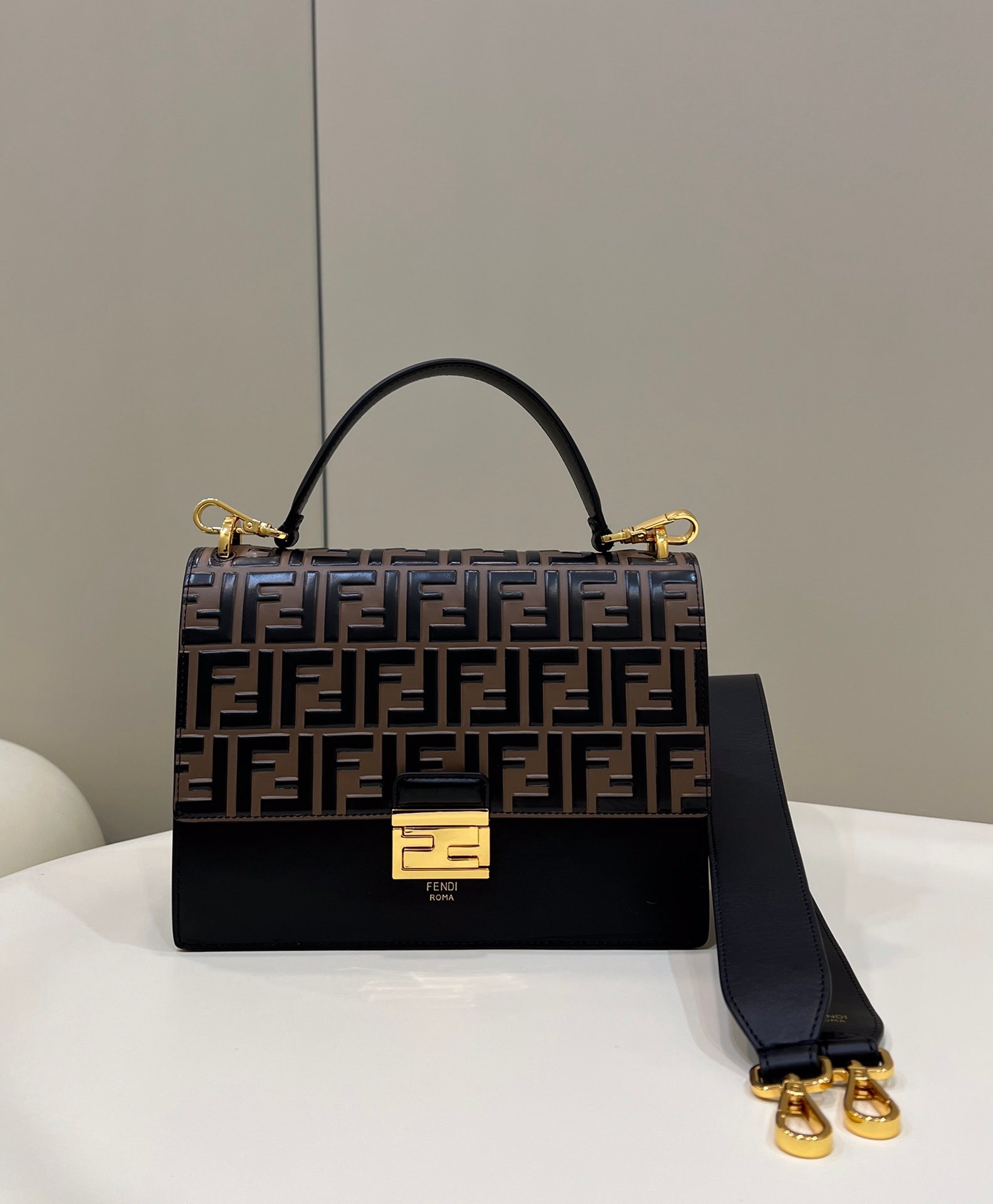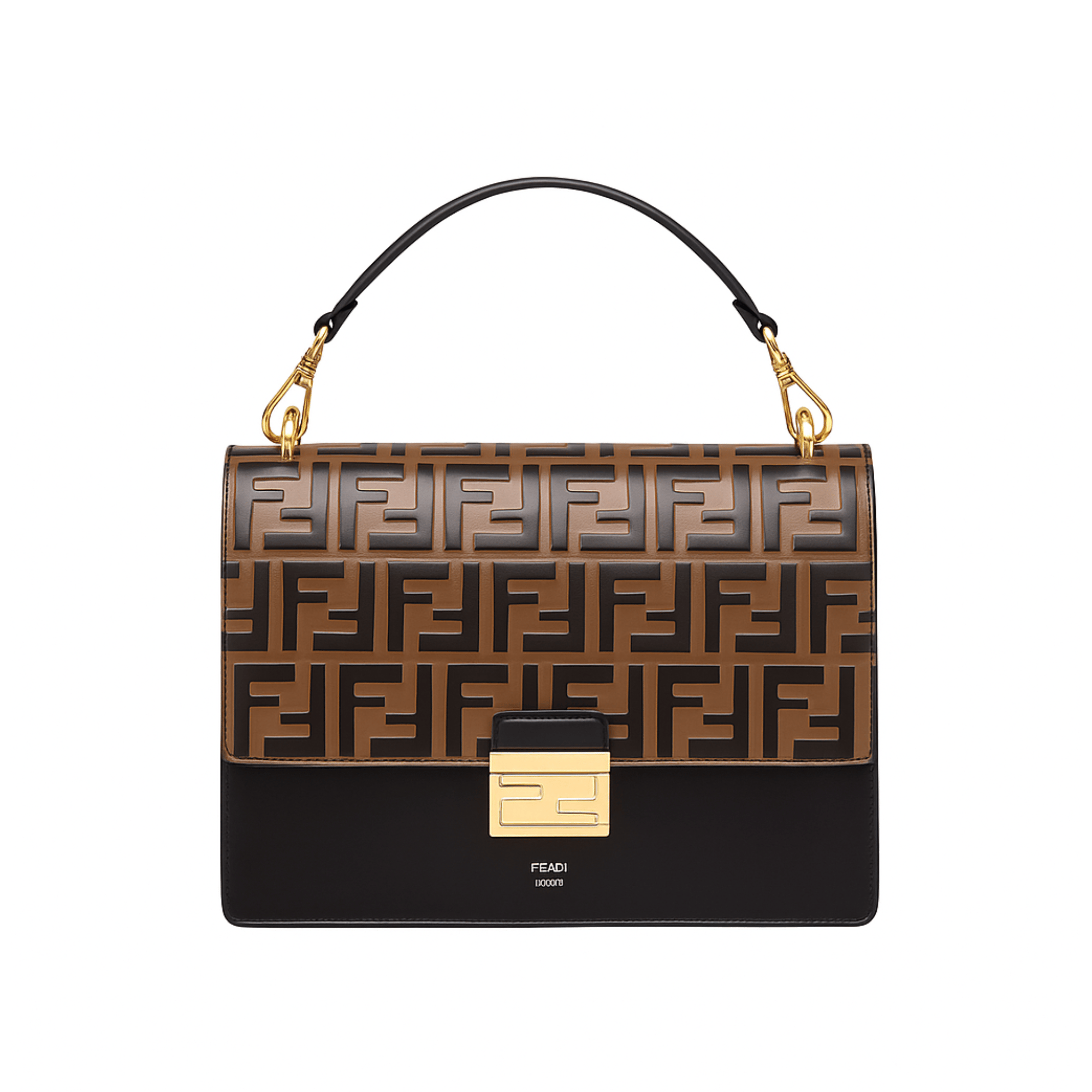 Fendi Kan Shoulder Bag Black Calf Leather 25cm