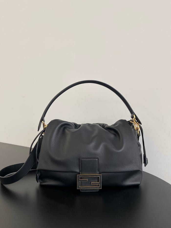 Fendi Mamma Baguette Large Black Nappa Leather Bag 31.5cm