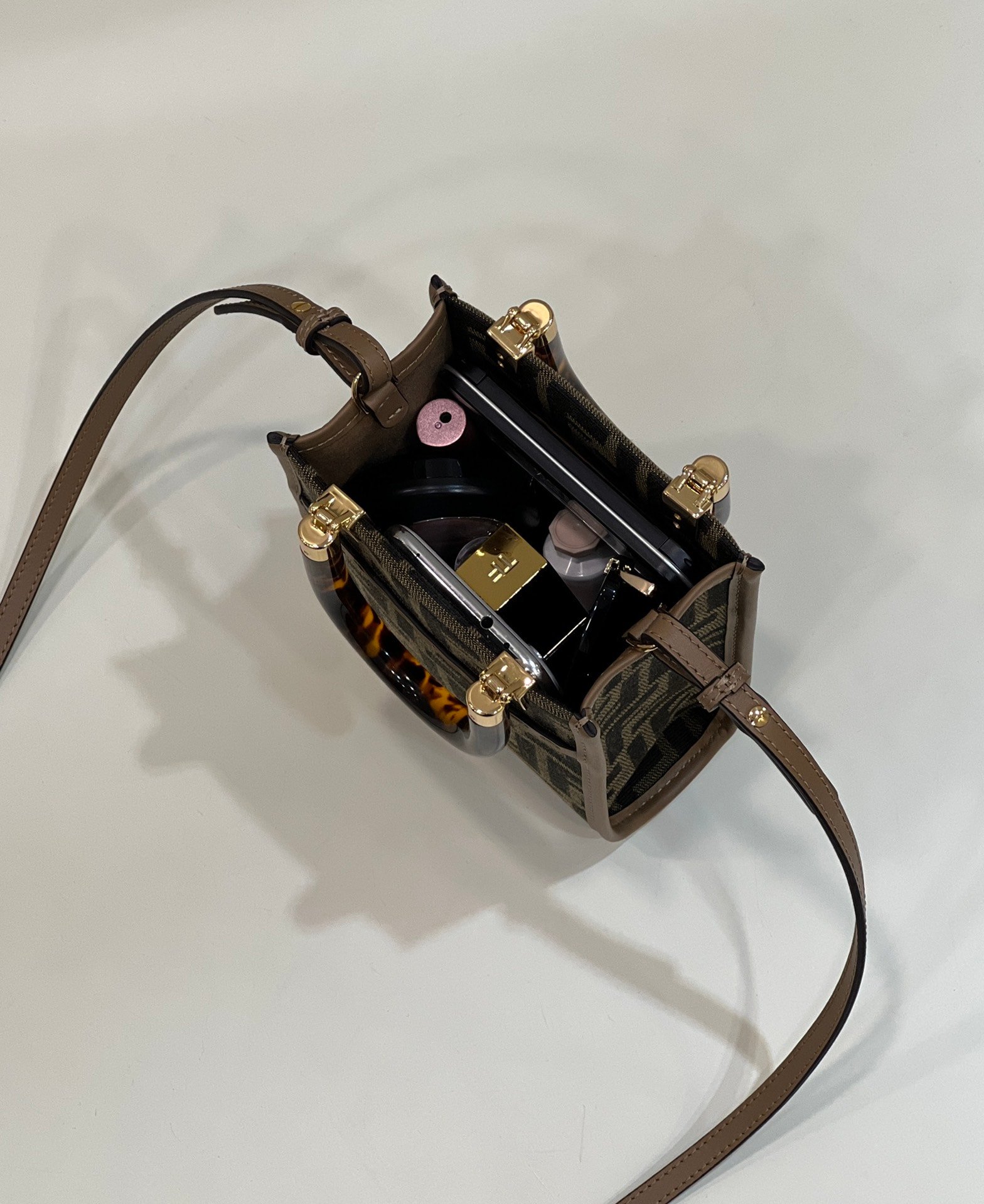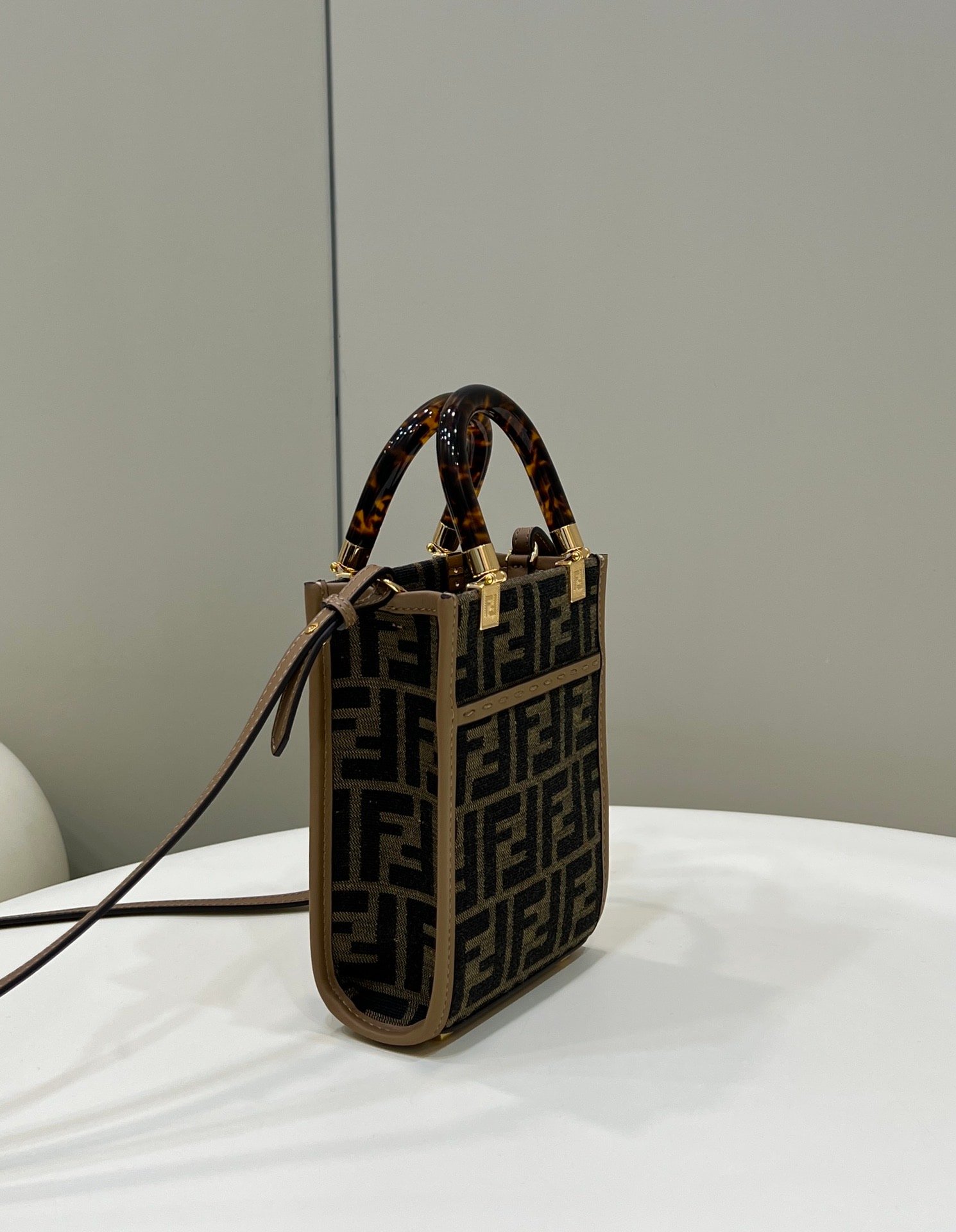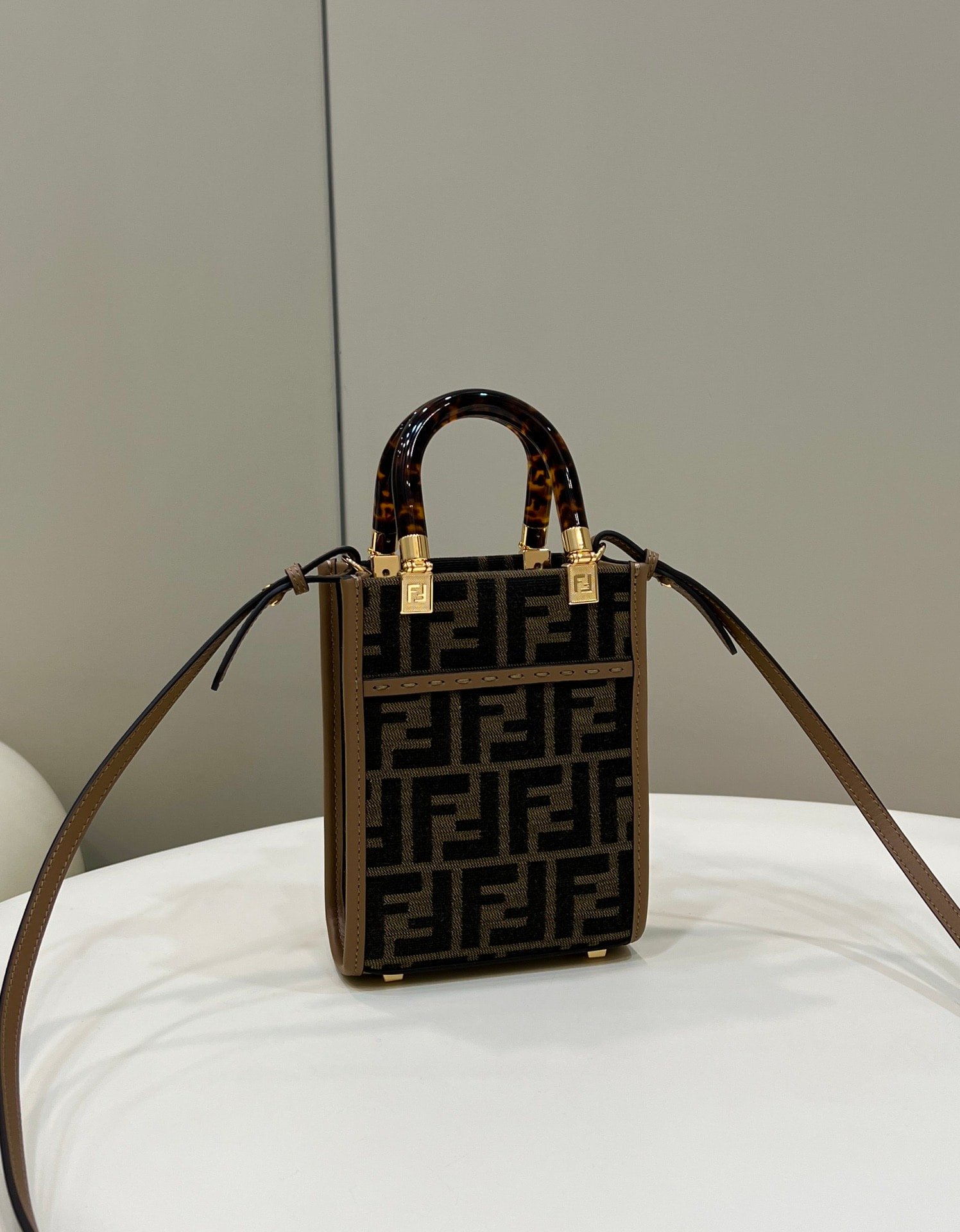 Fendi Mini Sunshine Shopper Brown Ff Fabric Mini Bag 18Cm