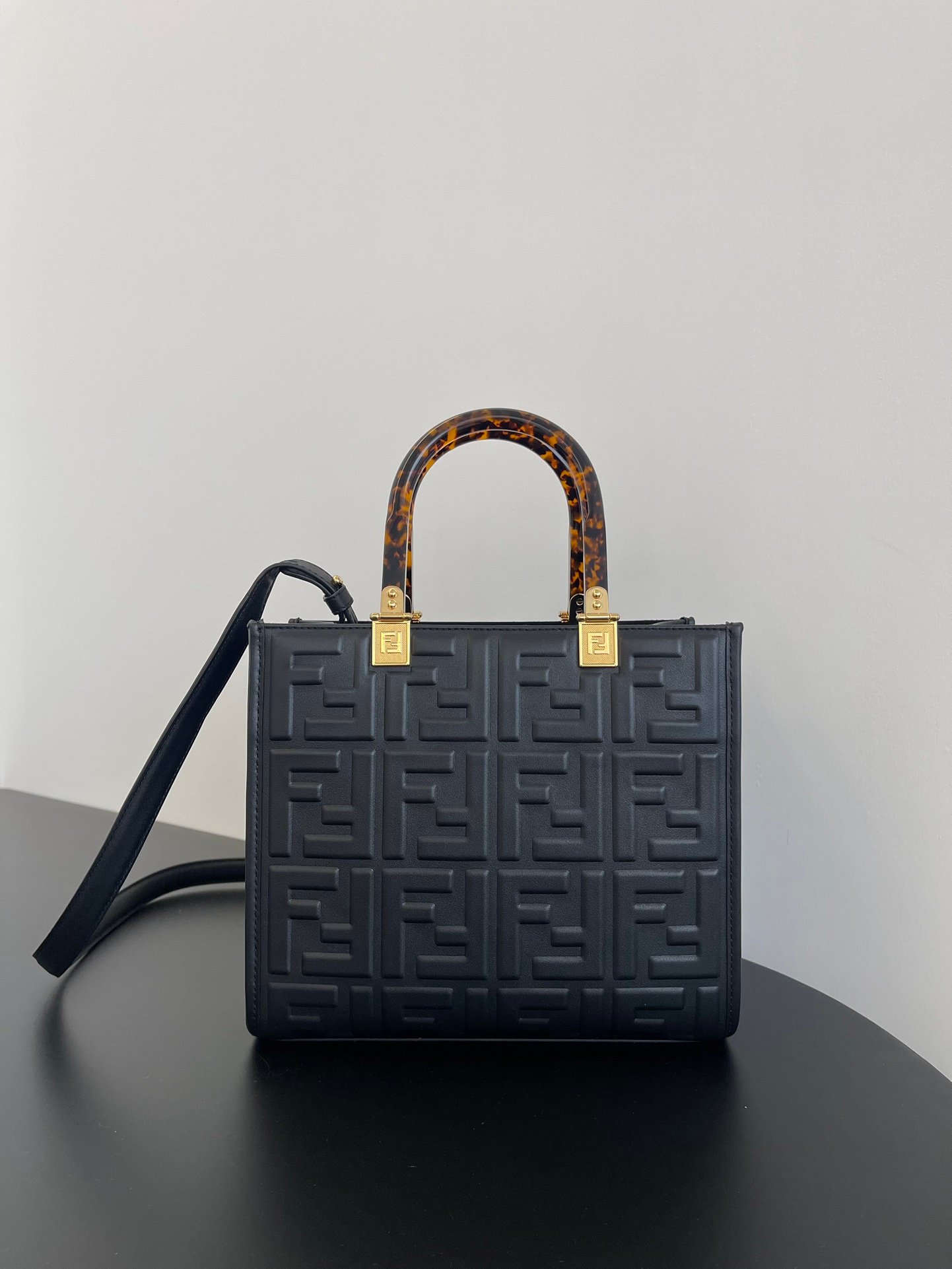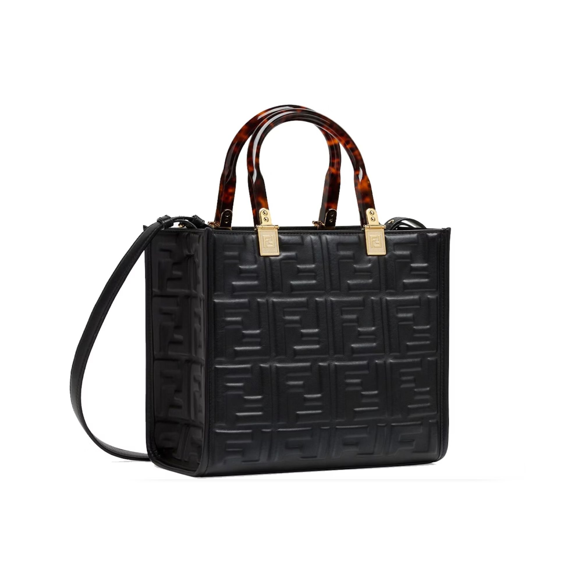 Fendi Sunshine Small Black Leather Shopper 25Cm