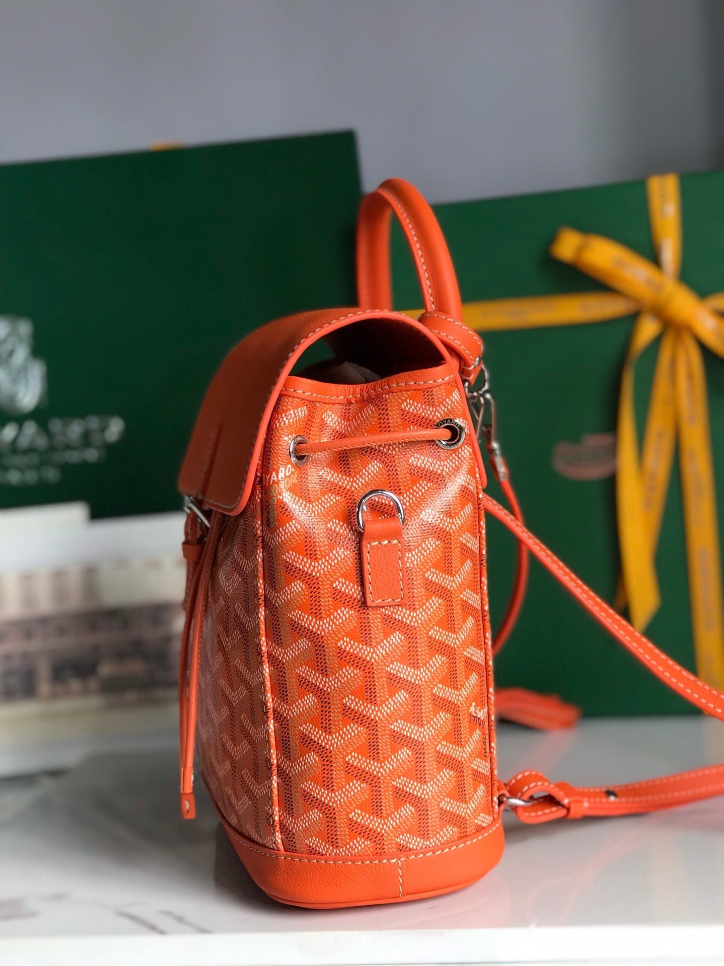 Goyard Alpin Mini Backpack 21 Cm Orange Lambskin And Goyardine Canvas