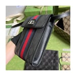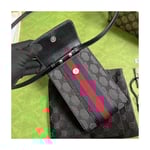Hacker Phone Bag in beige and brown coated canvas with aged gold hardware is from The Hacker Project.