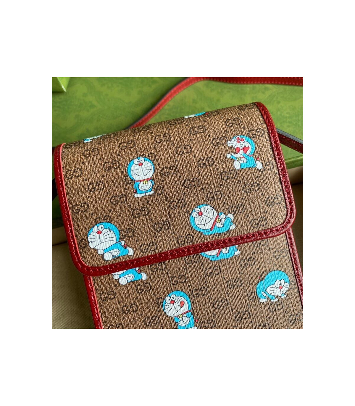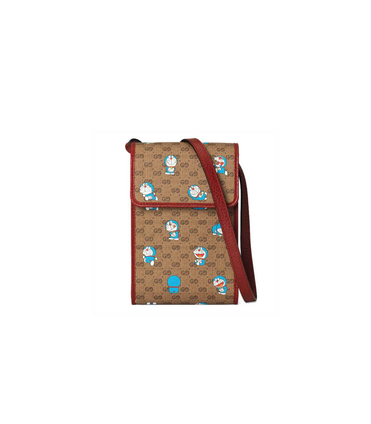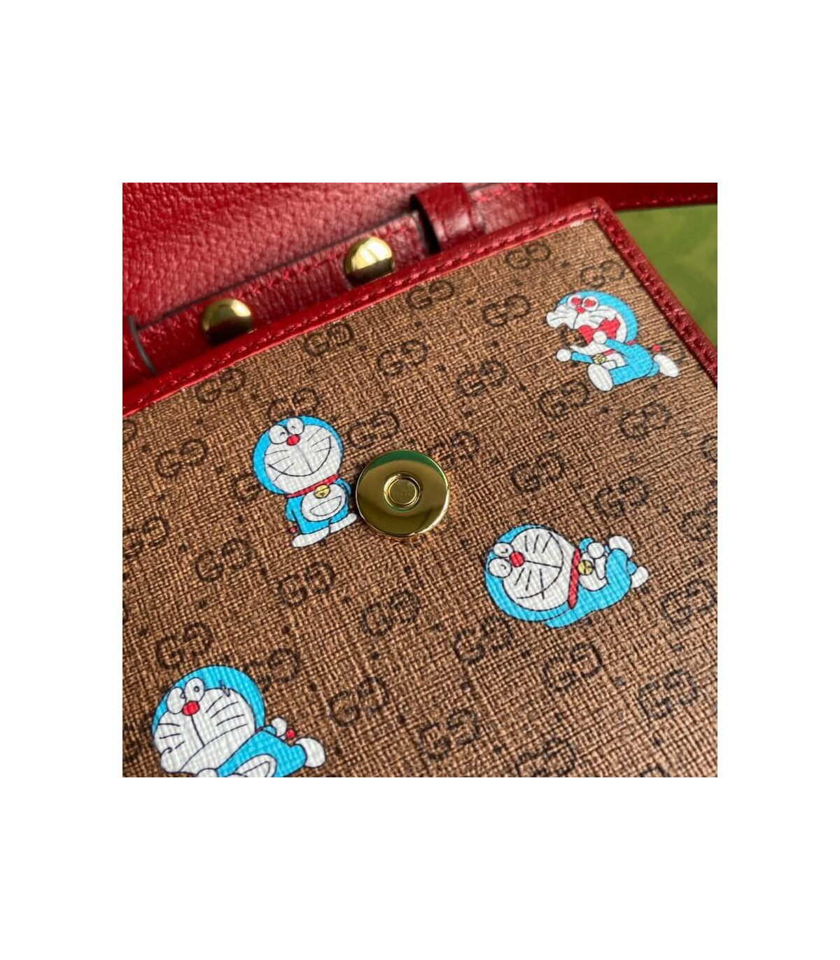 This bag is part of a special collaboration between Doraemon and Gucci. Born on September 3rd, 2112, a cat-type robot was sent from the 22nd century to help a young boy called Nobita with secret gadgets from his four-dimensional pouch. A playful character, Doraemon hates mice and loves Dorayaki, a sweet pancake.