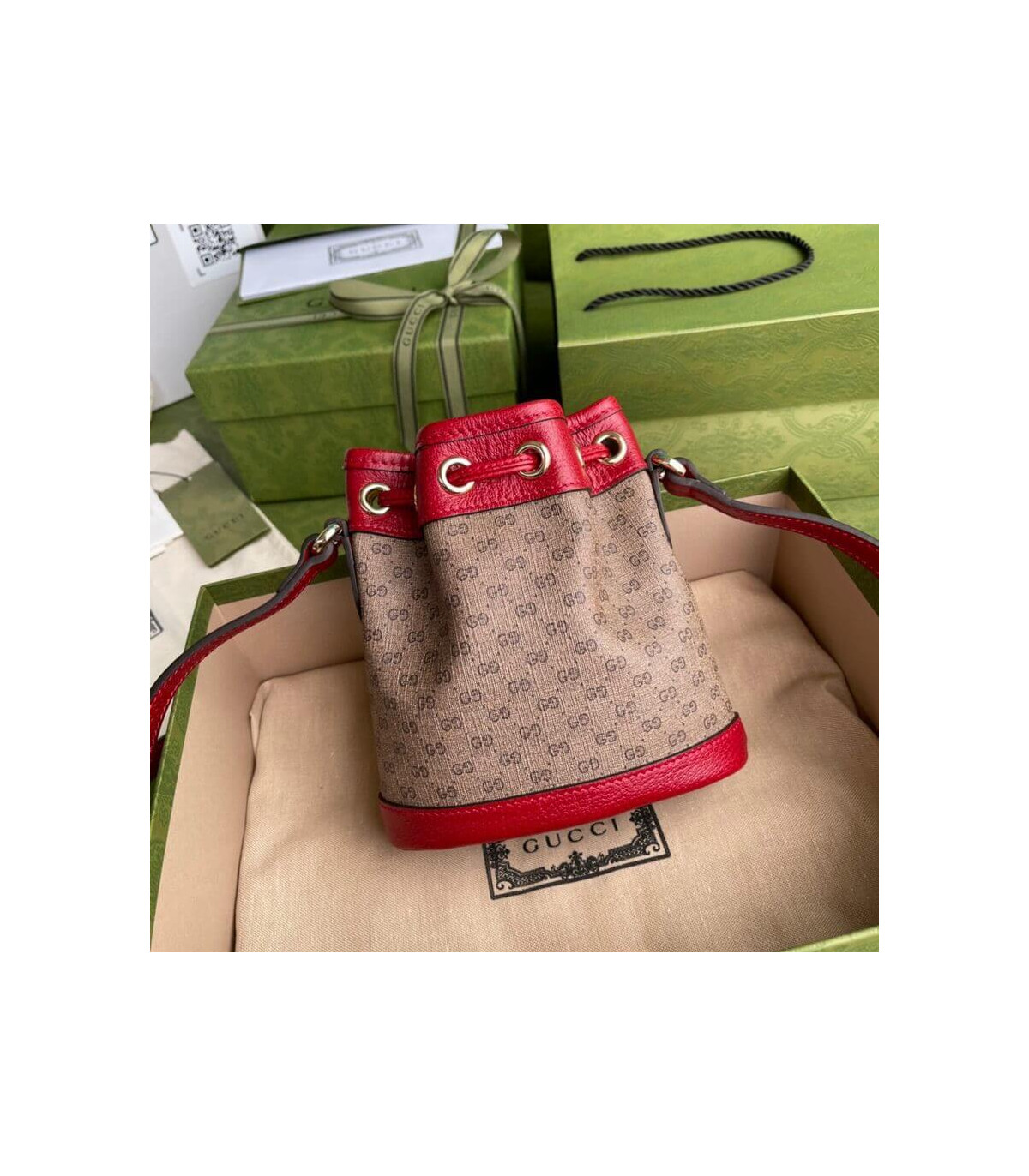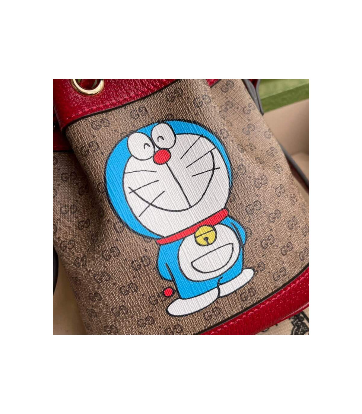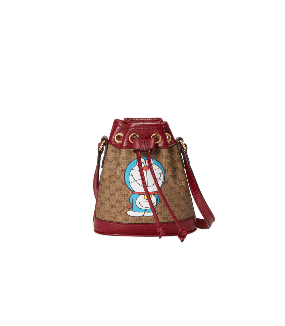 This mini bucket bag is part of a special collaboration between Doraemon and Gucci. Born on September 3rd, 2112, a cat-type robot was sent from the 22nd century to help a young boy called Nobita with secret gadgets from his four-dimensional pouch. A playful character, Doraemon hates mice and loves Dorayaki, a sweet pancake.