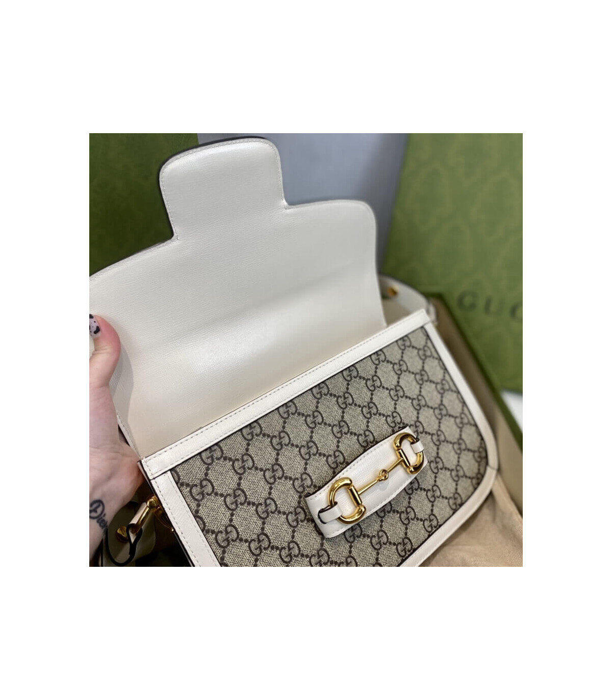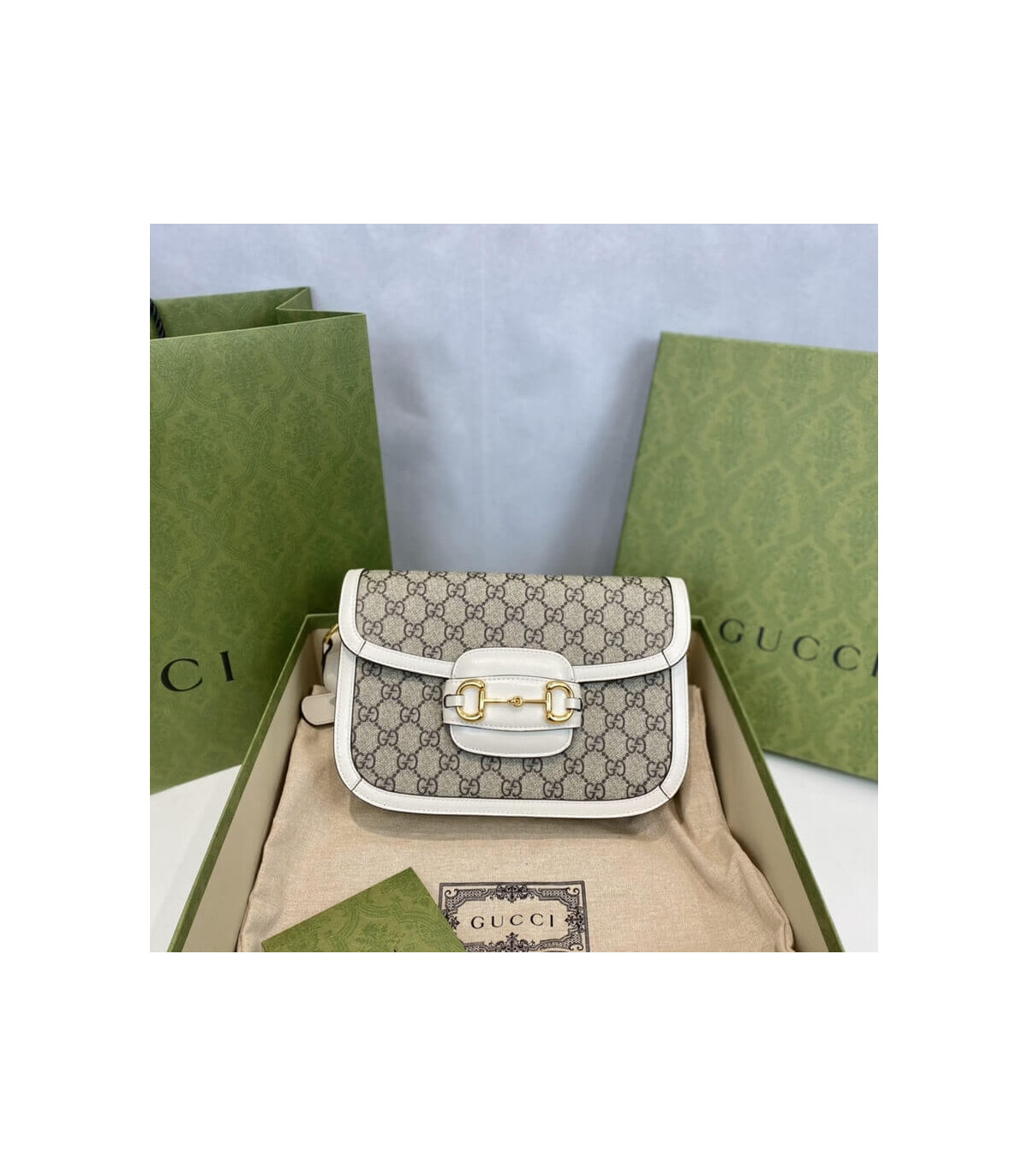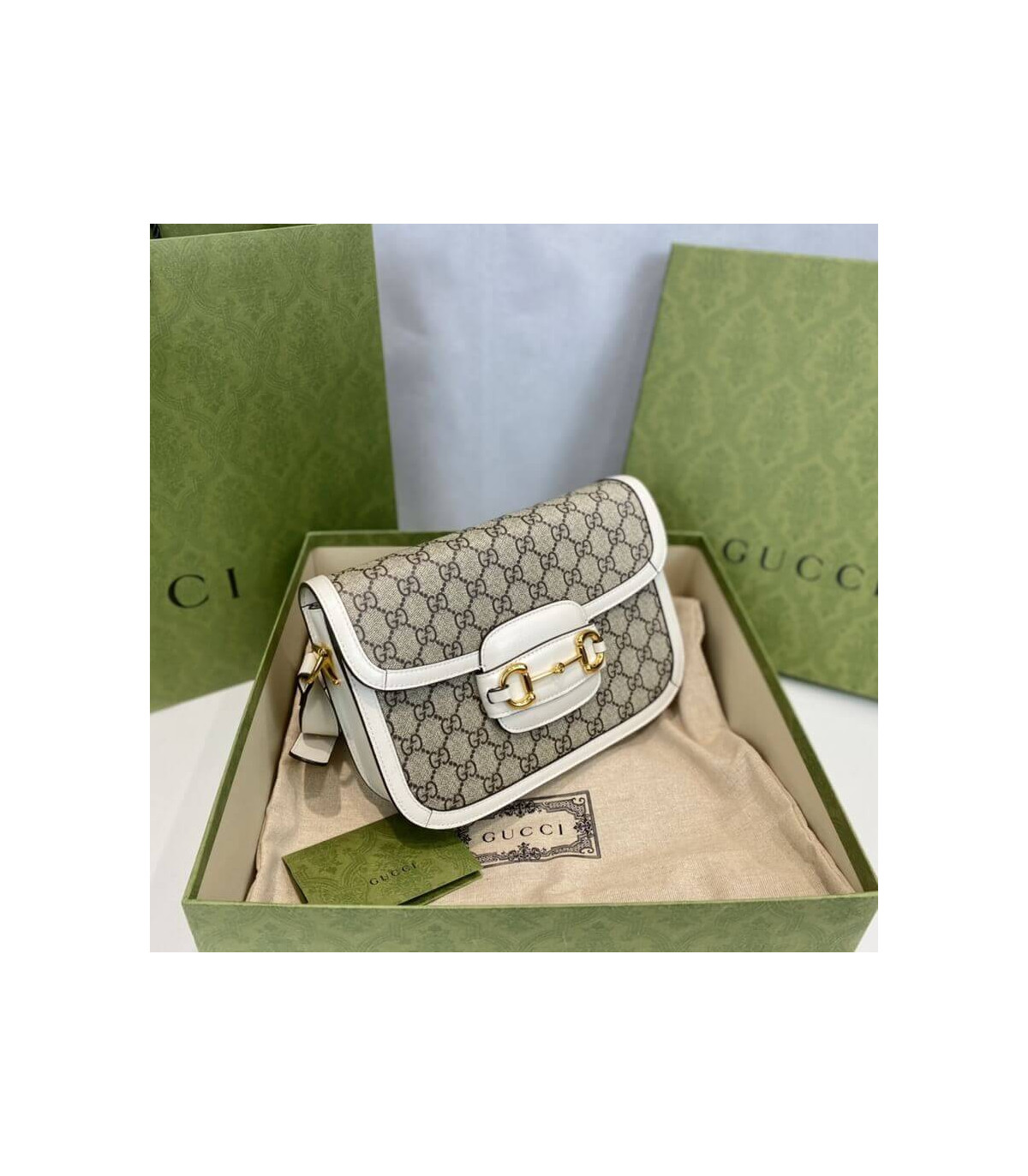 Crafted in beige/ebony GG Supreme canvas, a material with low environmental impact, the bag is finished with white leather trim and gold-toned hardware. A specially designed shoulder strap mechanism allows for versatile wear—either over the shoulder or as a crossbody.
