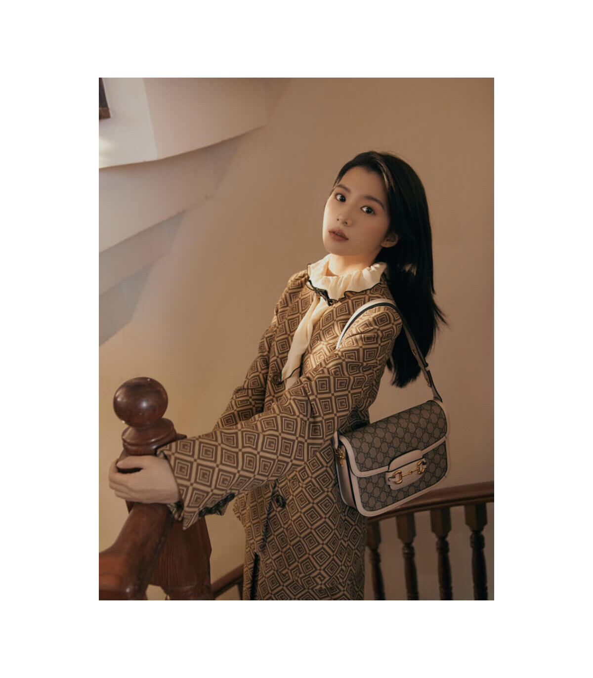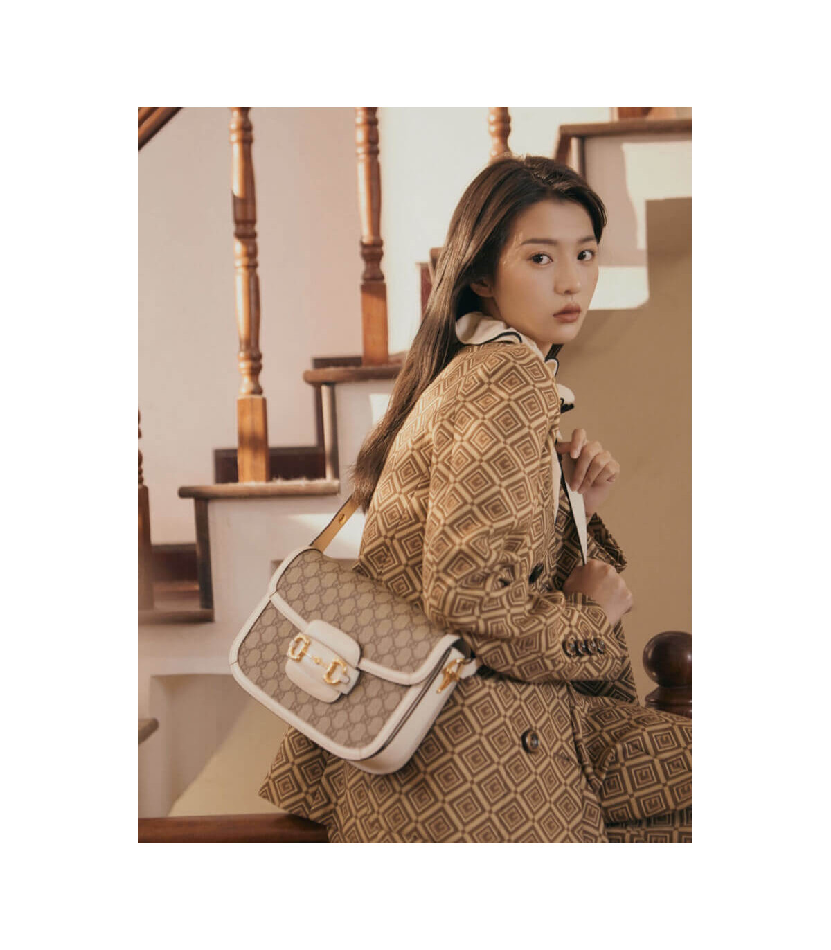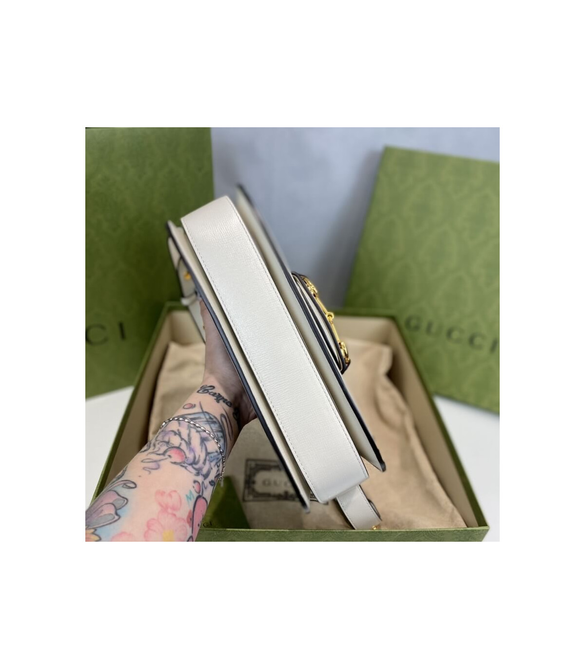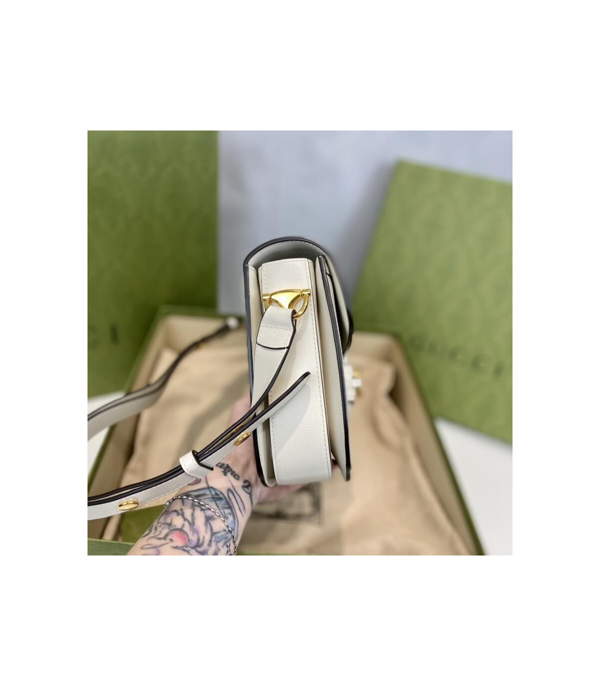Crafted in beige/ebony GG Supreme canvas, a material with low environmental impact, the bag is finished with white leather trim and gold-toned hardware. A specially designed shoulder strap mechanism allows for versatile wear—either over the shoulder or as a crossbody.