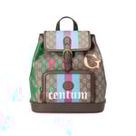 This item features bright and colourful geometric motifs that recall the uniforms worn by horse riding jockeys. The collection is inspired by the Parade Ring, or paddock, where horses walk around as a warm-up before the race and to help racegoers pick a winner. Here the print appears on this backpack.