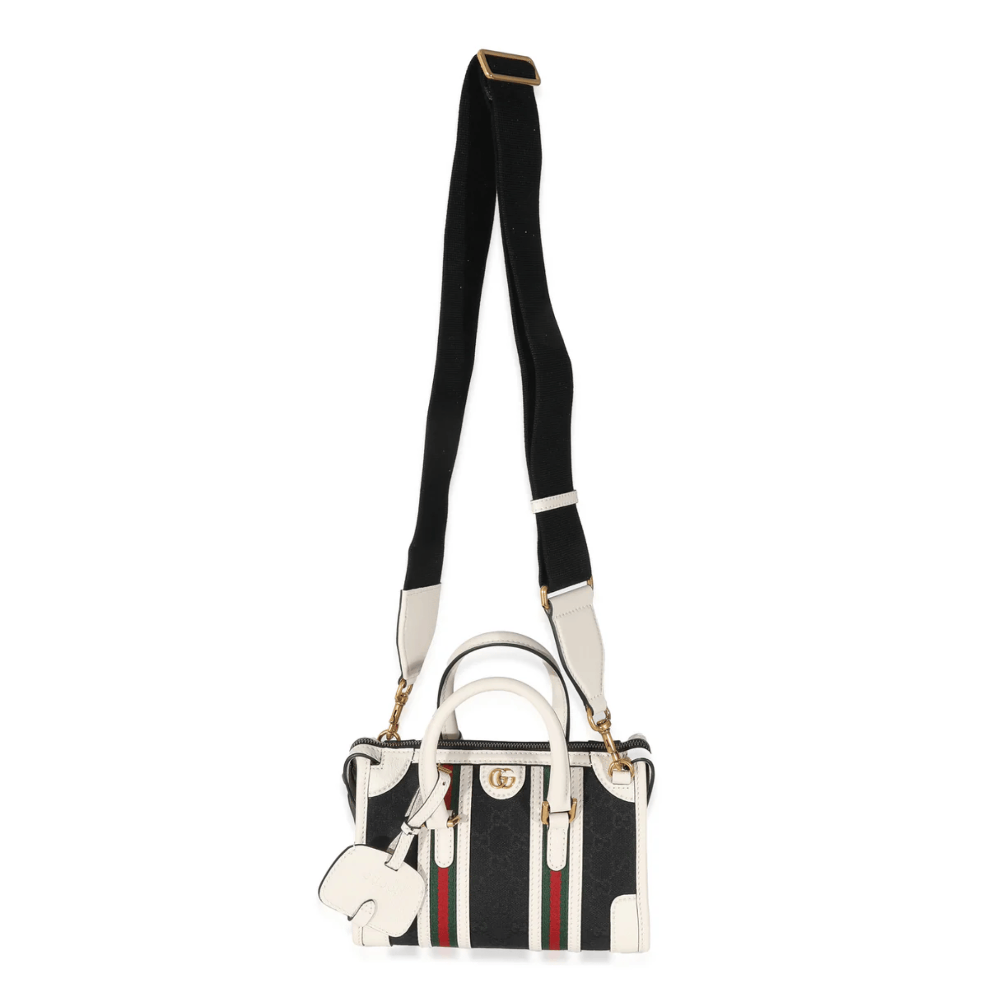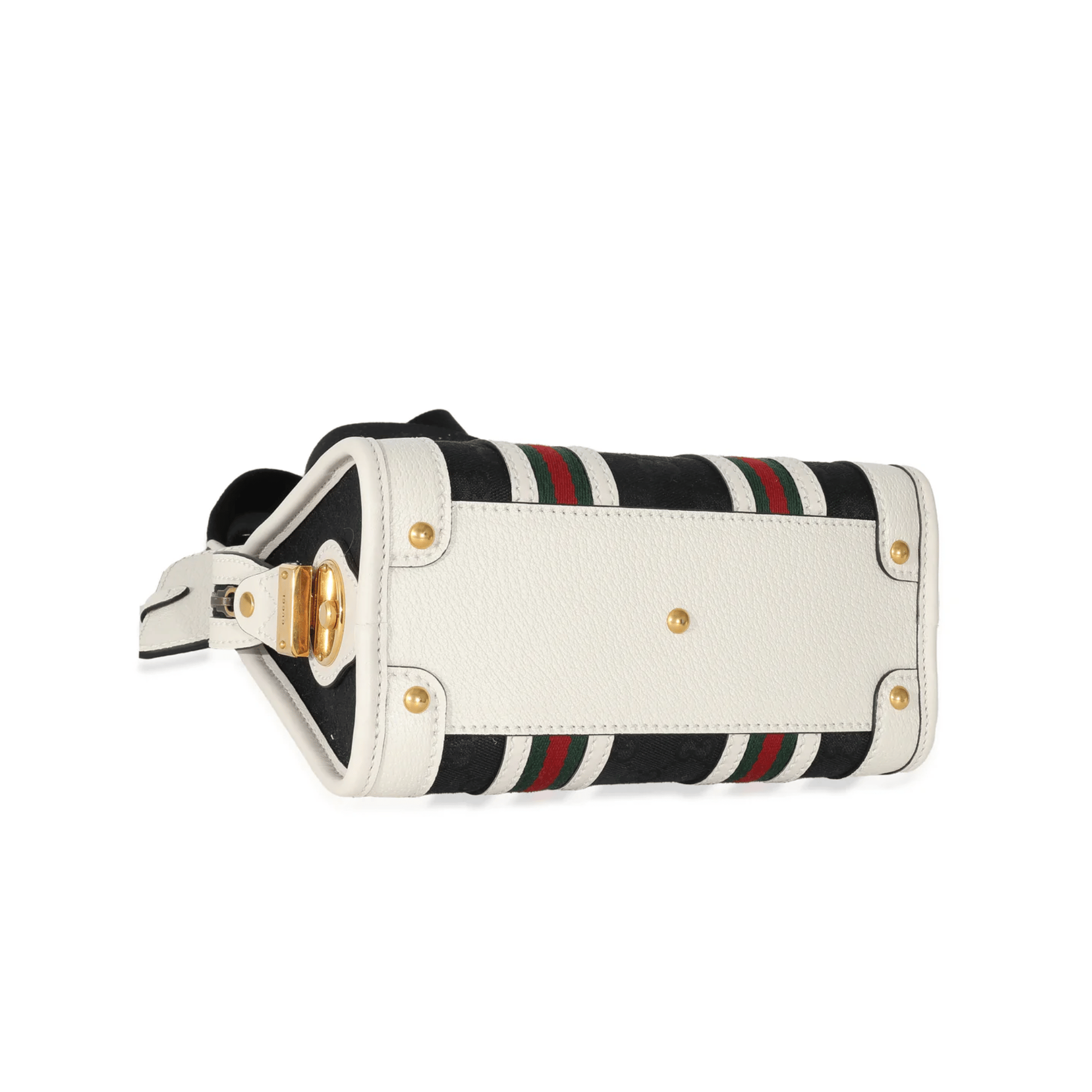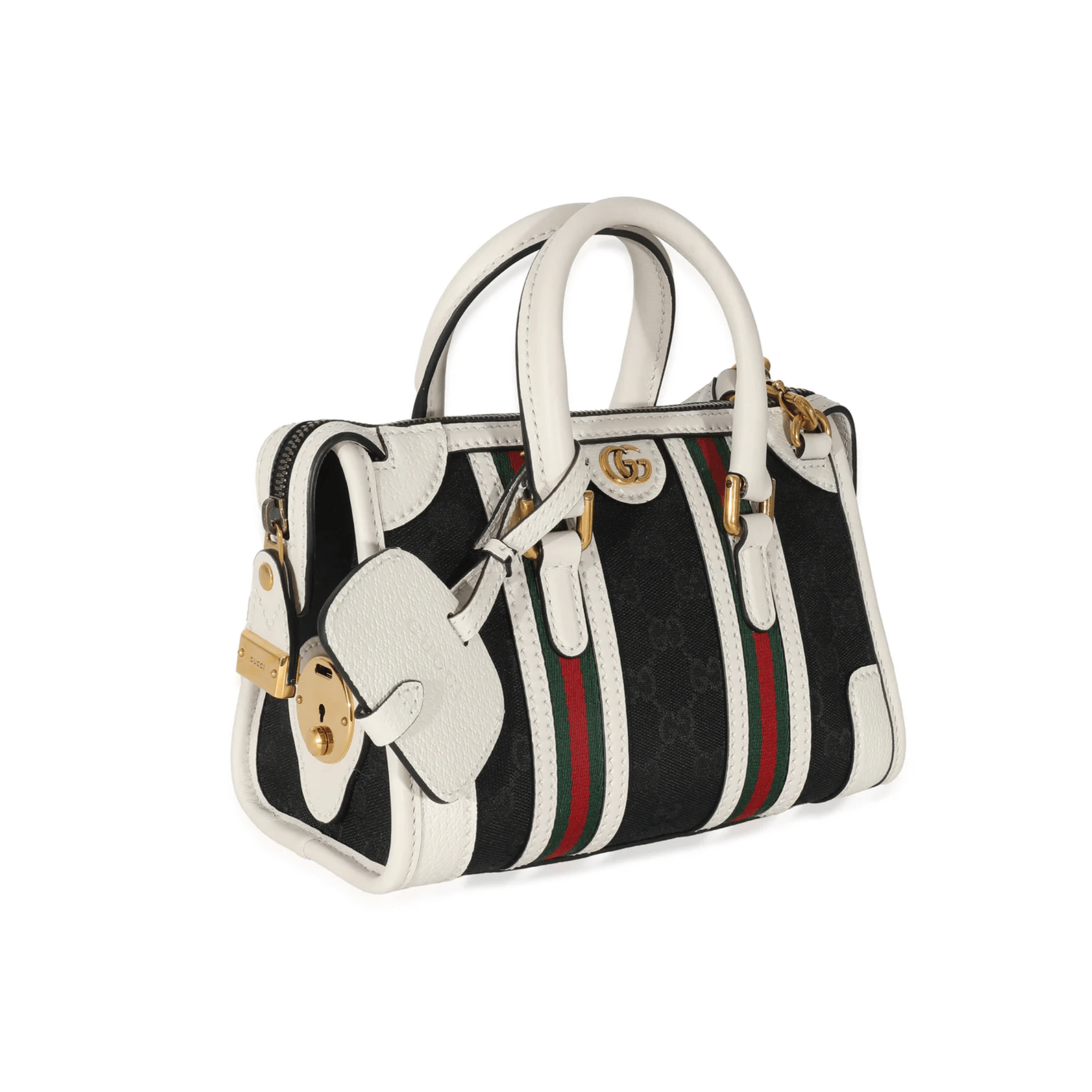 Gucci Black White Canvas Mini Double G Top Handle Bag 22cm/8.6in