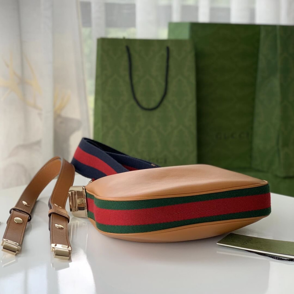 An ode to the timeless Hollywood glamour that shaped Gucci Love Parade, classic elements from the House’s archives are reintroduced. Distinguished by its crescent moon shape, the accessory is further defined by a G shaped hook closure. Paired with soft materials, the heritage hardware creates a refined design with vintage appeal. This small version is crafted in black leather with orange and black Web trim.