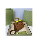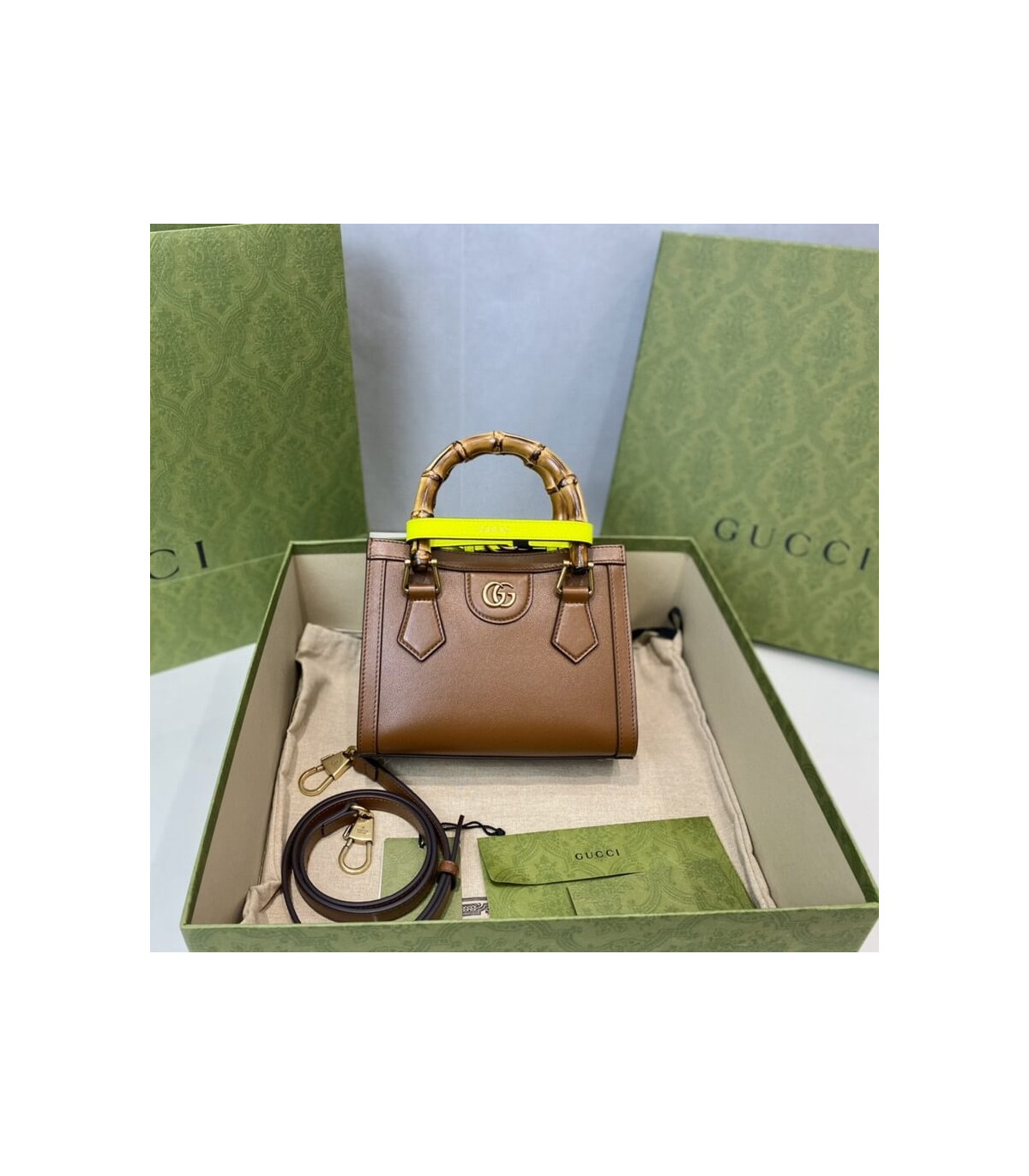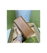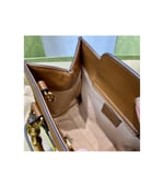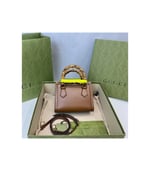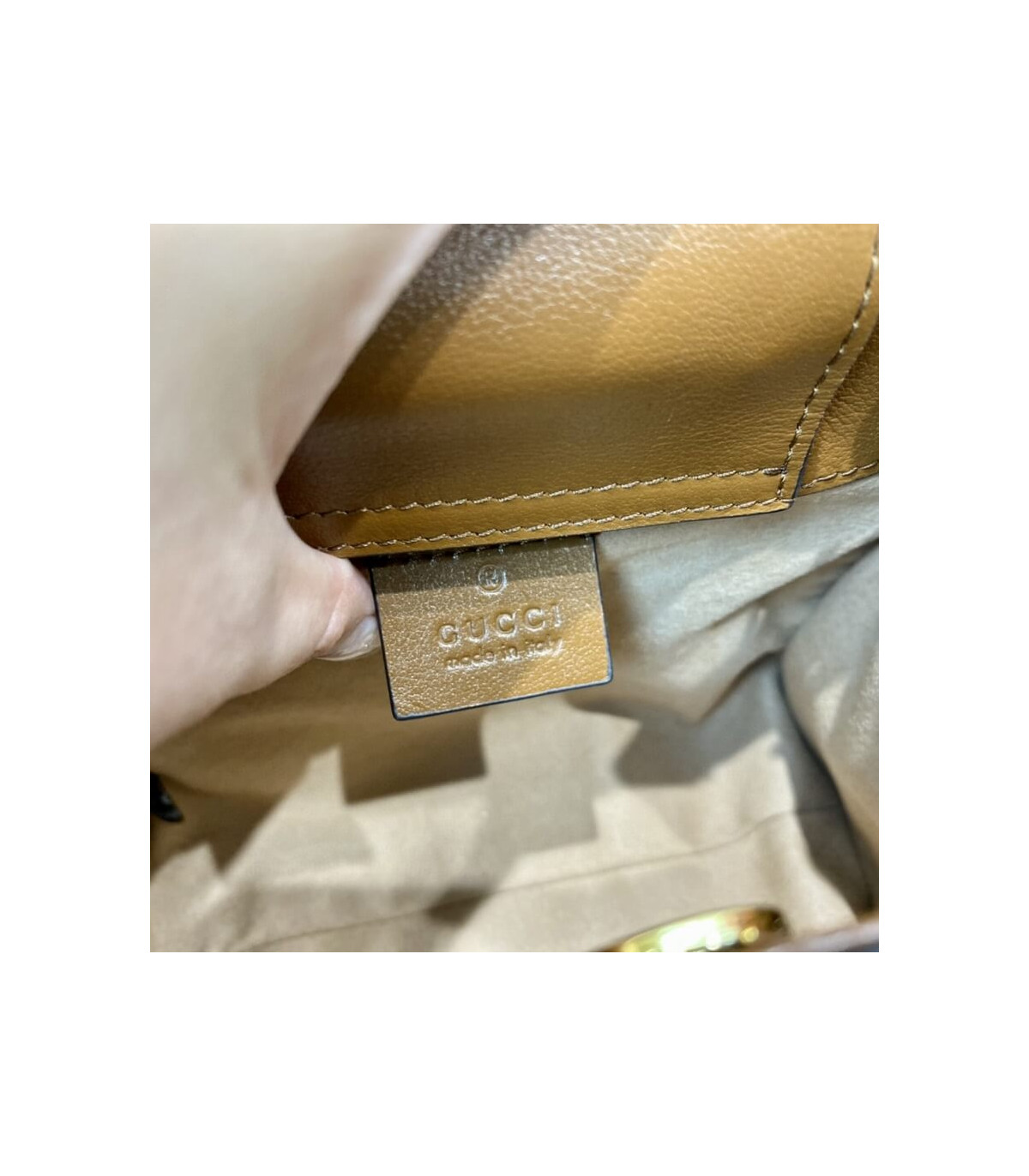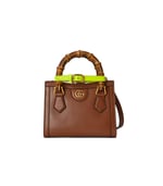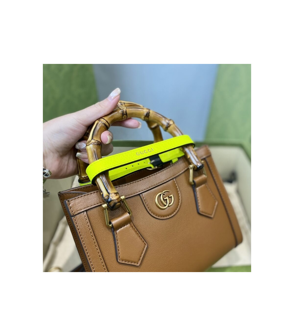 Combining recognizable elements of the House, the mini tote bag is defined by its bamboo handles and Double G hardware. Crafted from light blue leather, the accessory is further accentuated by two neon bands, a playful reference to the bands used to keep handles in shape.