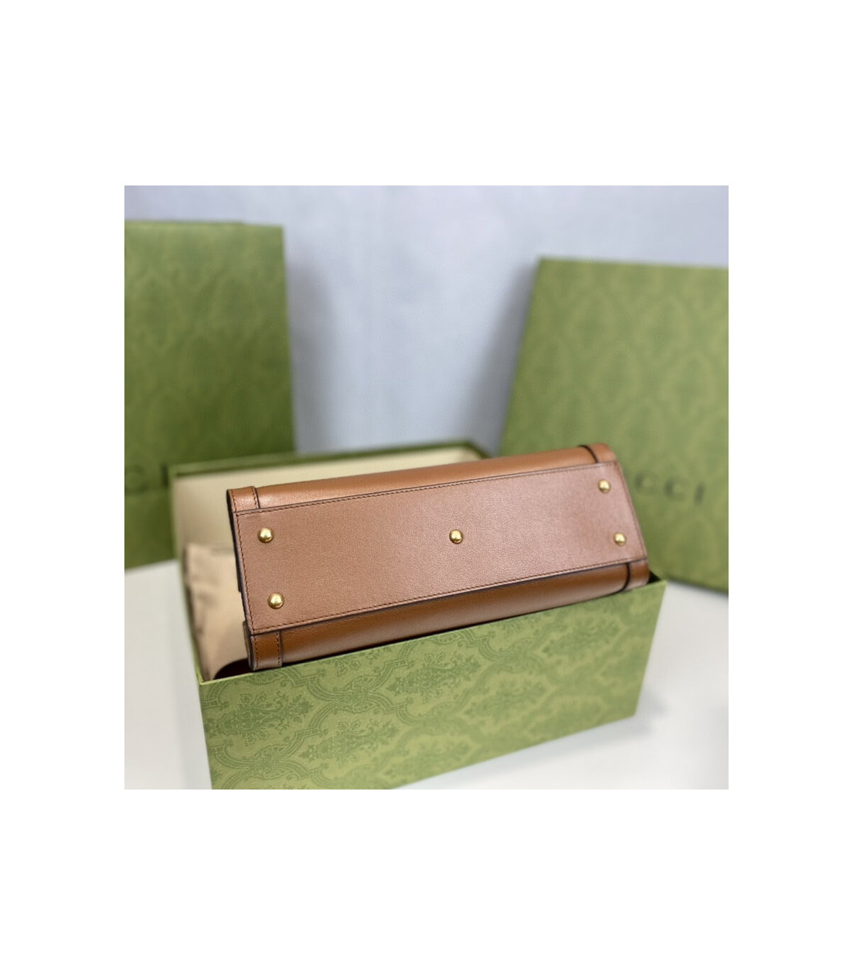 – Gold-toned hardware