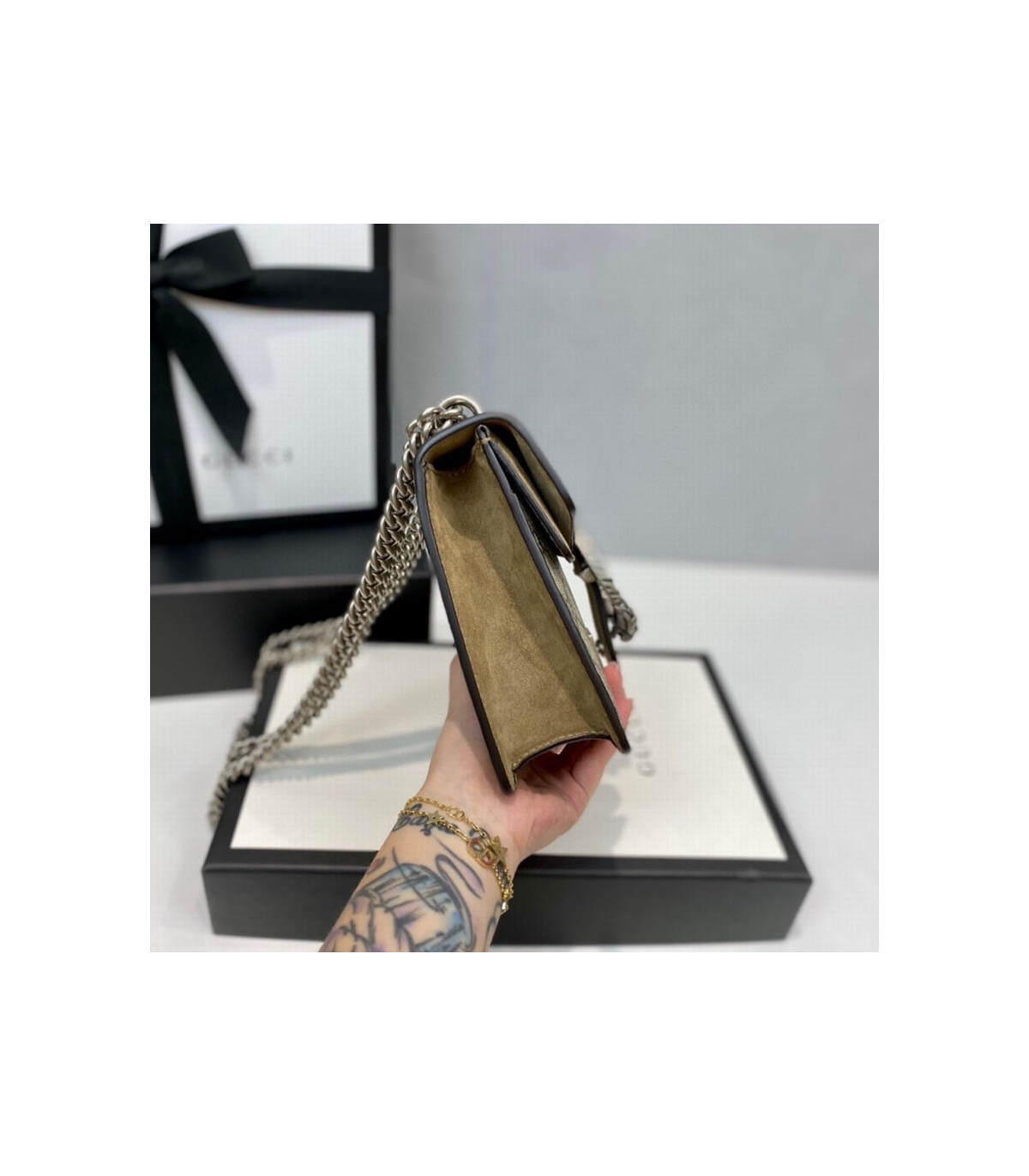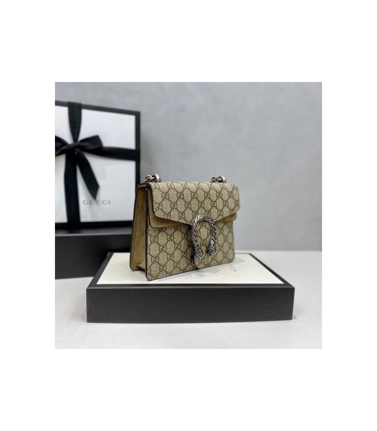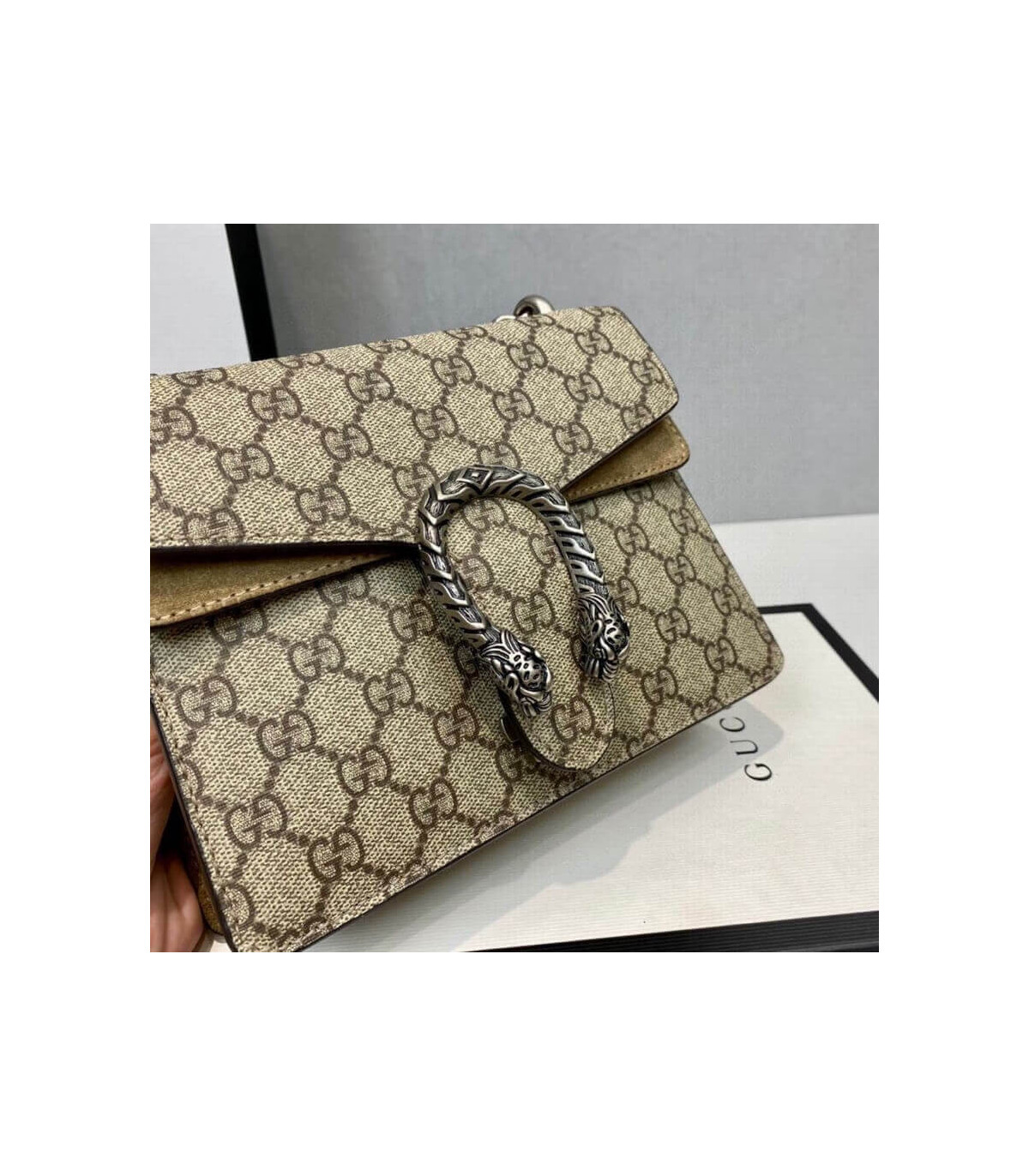 – Beige/ebony GG Supreme canvas, a material with low environmental impact, with taupe suede trim