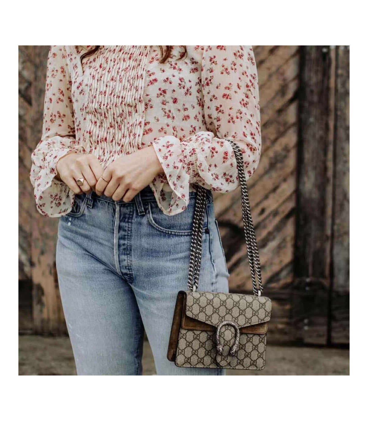 – Sliding chain strap can be worn as a shoulder strap with 15.5″ drop or can be worn as a top handle with 9″ drop