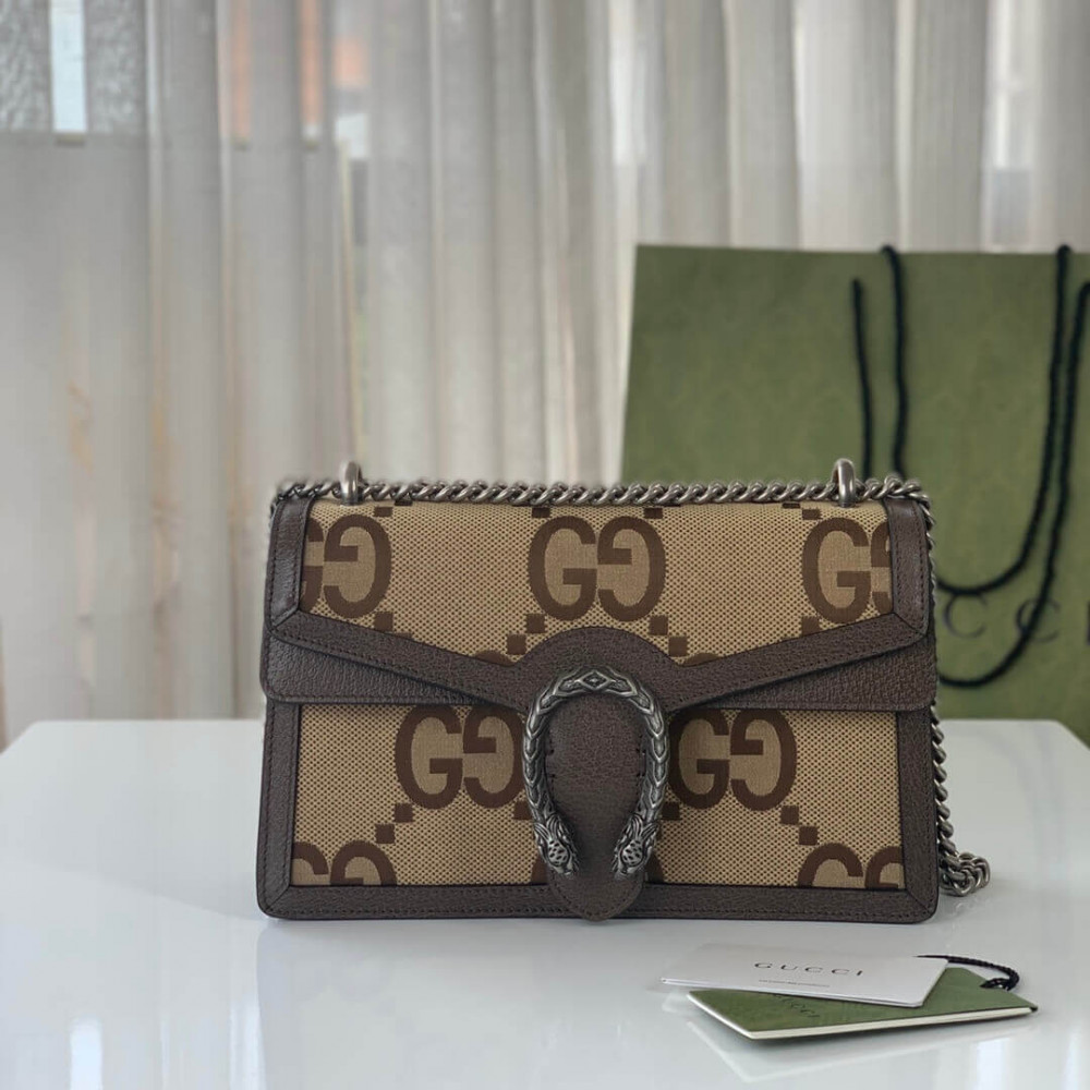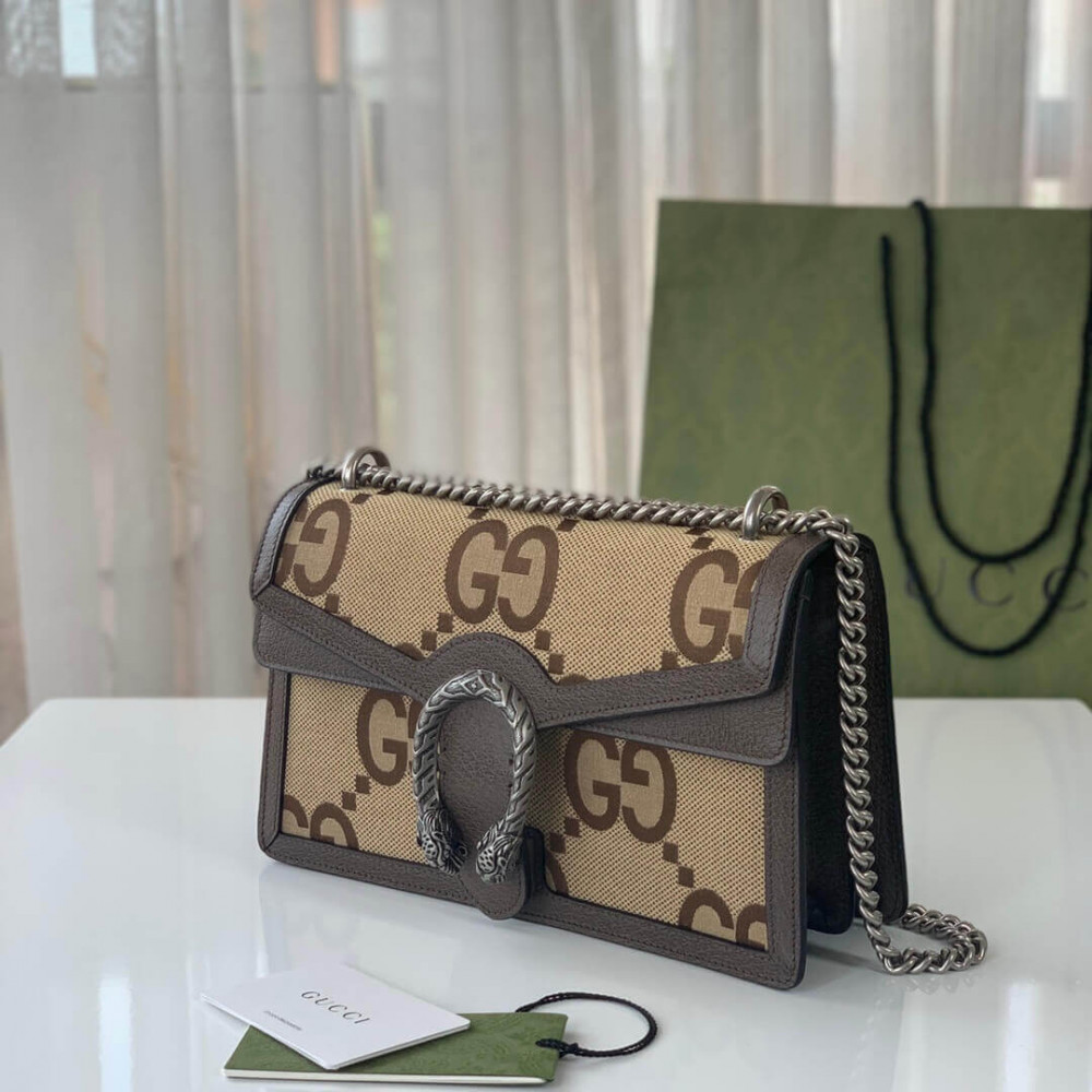 Marking the House’s first in-person fashion show since February 2020, Gucci Love Parade unfolded along Los Angeles’ walk of fame. Inspired by the timeless nature of old-Hollywood glamour, the collection presents contemporary takes on traditional pieces. This Dionysus small shoulder bag is presented in GG canvas – a reimagination of Guccio Gucci’s initials in a maxi size.