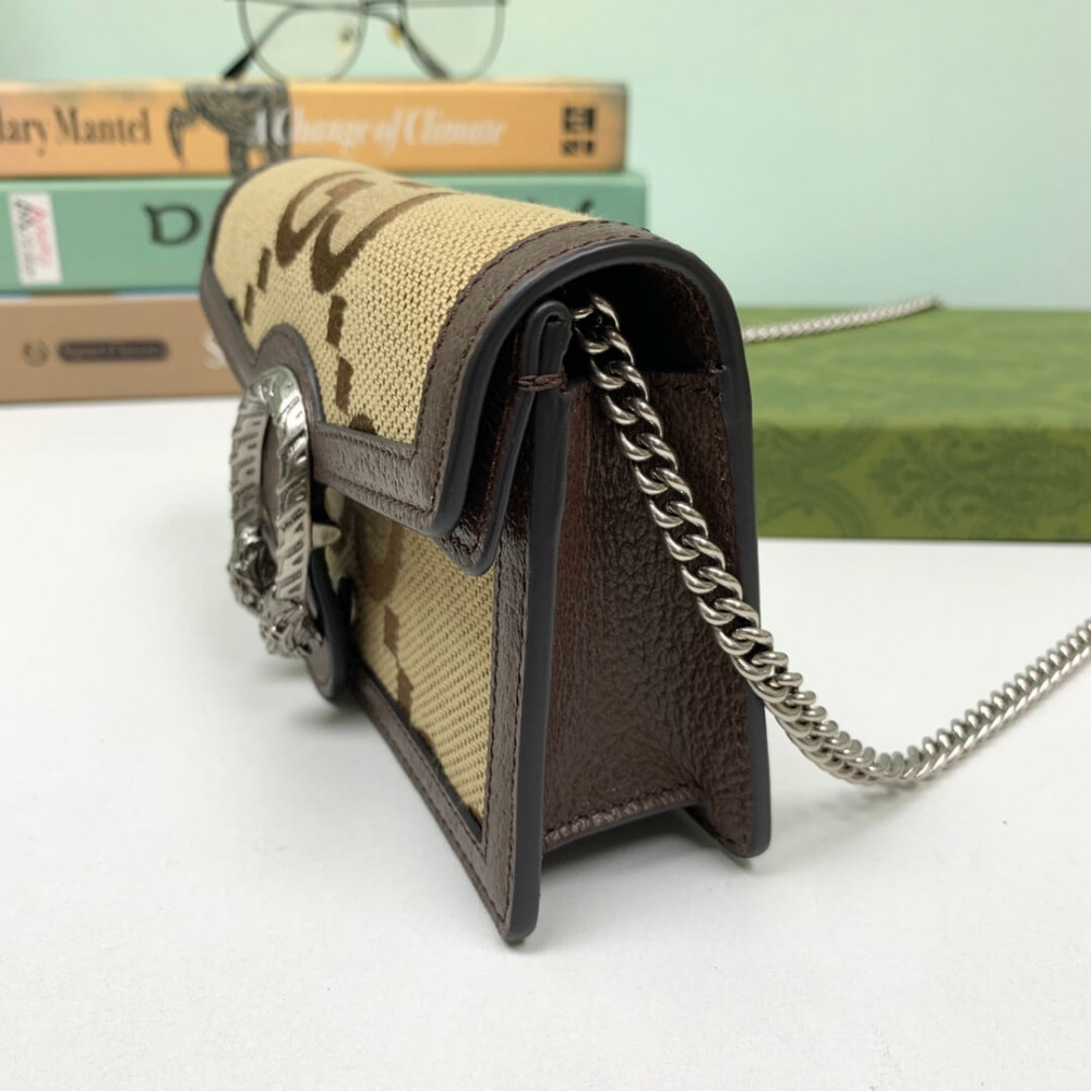 With its super mini size and maxi logo pattern, this Dionysus bag has a defined retro feel. The petite accessory expresses the House’s fascination with the past. Each collection is a journey through different decades and eras, combining vintage elements with archival codes or contemporary details to create new designs that exist outside of space and time.