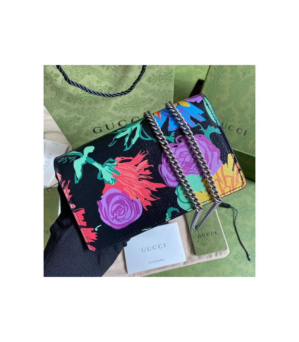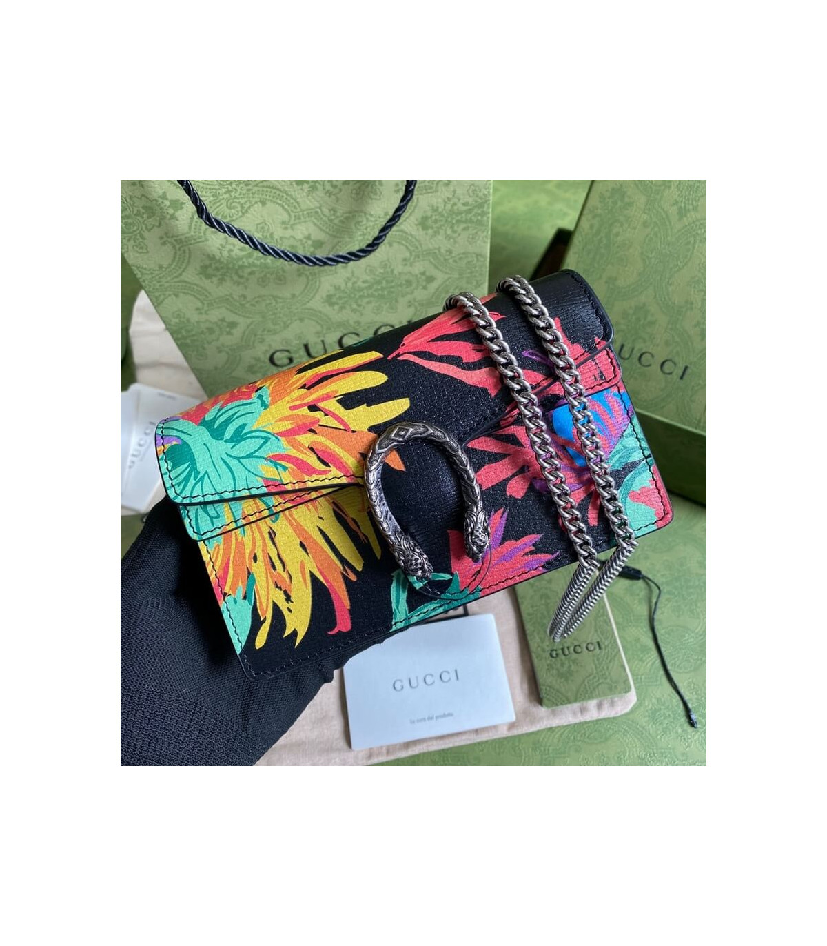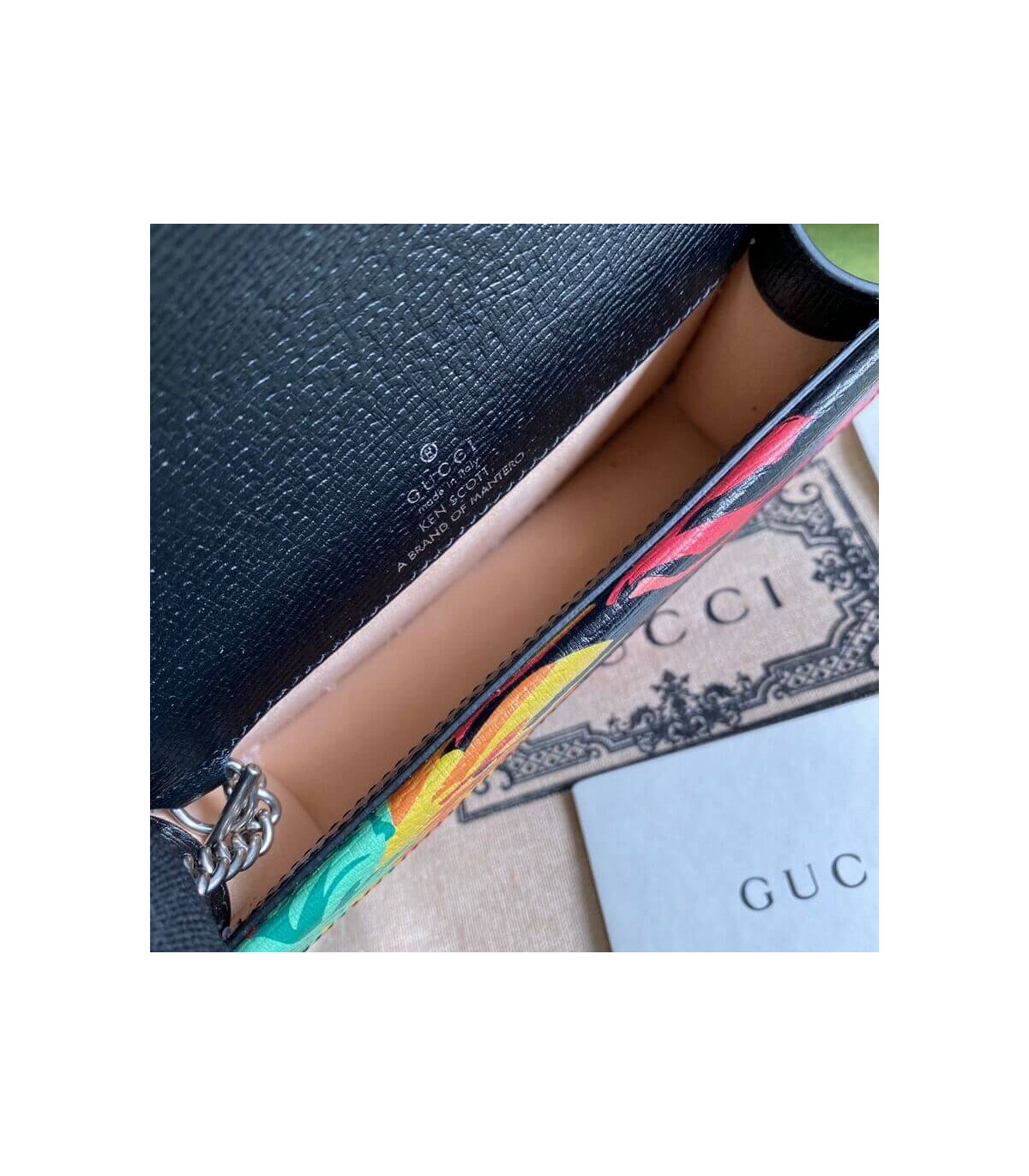 Home Shop All Bags Gucci Gucci Dionysus Ken Scott Print Super Mini Bag Black