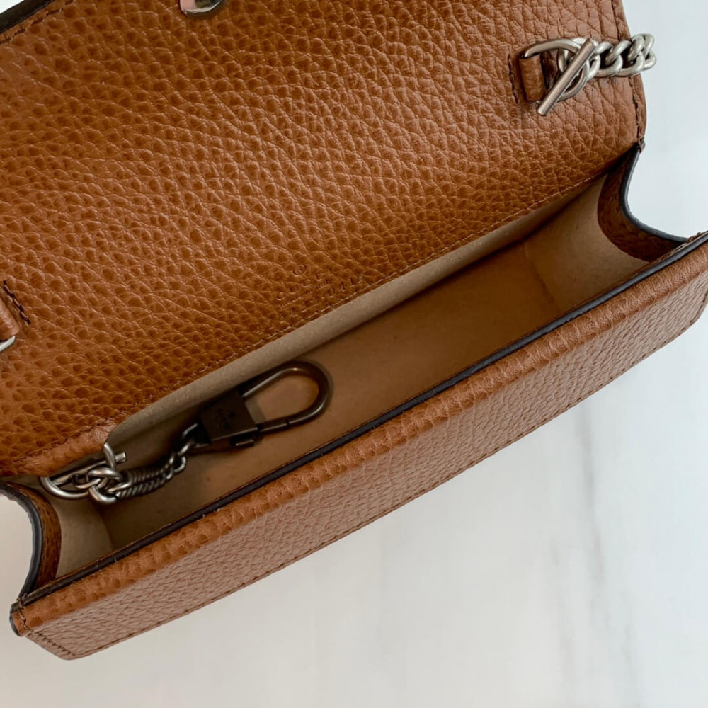 A part of the Epilogue collection, the super mini Dionysus is presented with a strong logo feel in GG washed organic jacquard. Continuing to frame House codes in new ways, the bag’s emblematic tiger head closure is enriched with vibrant blue enamel which complements the denim’s dark shade. The style is completed by a contrasting leather trim.