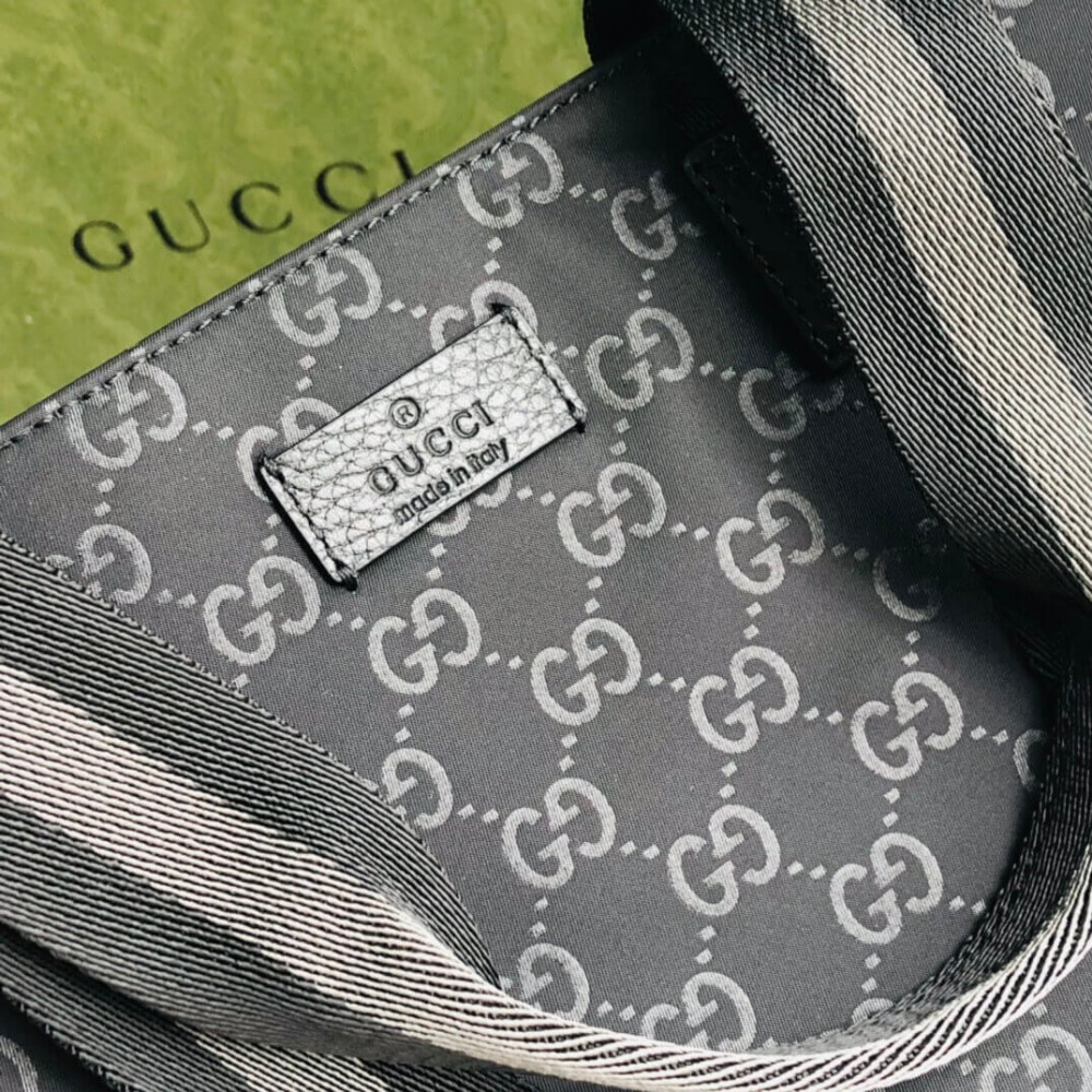 Gucci Unisex Black GG Nylon Canvas Web Viaggio Collection Tote Bag