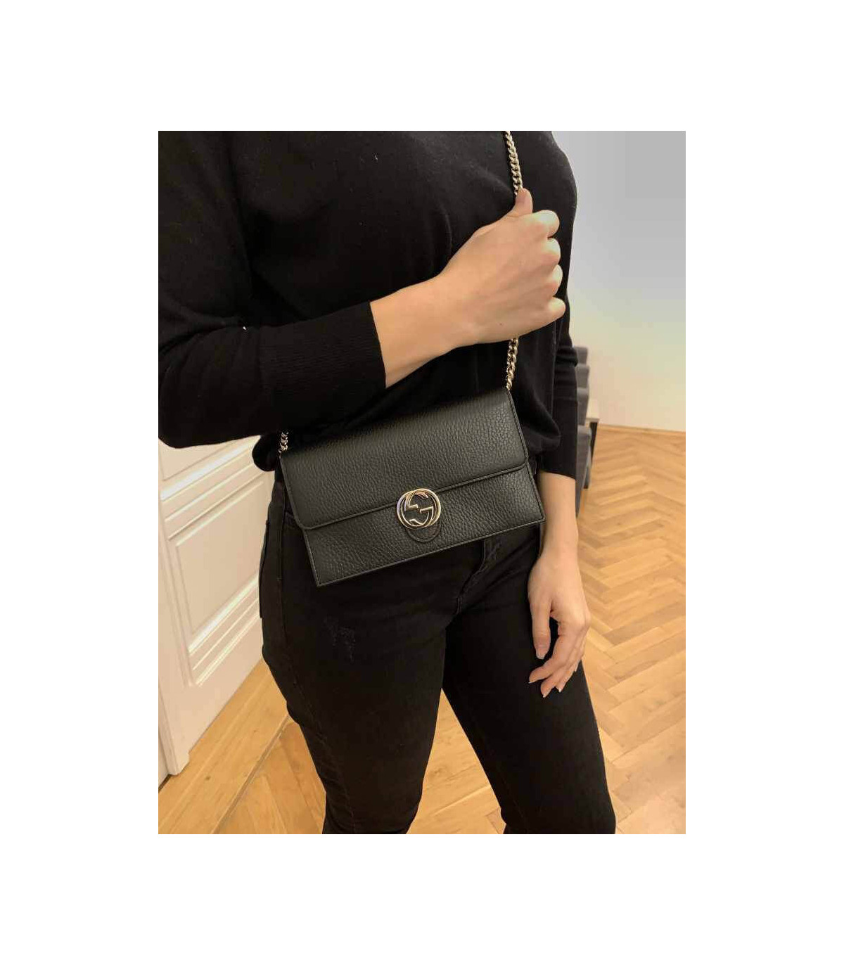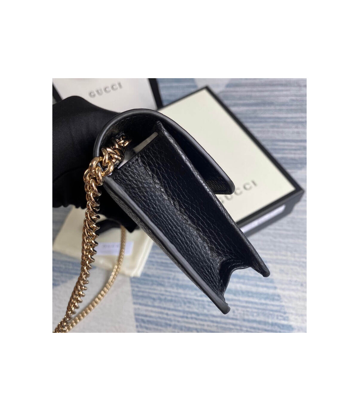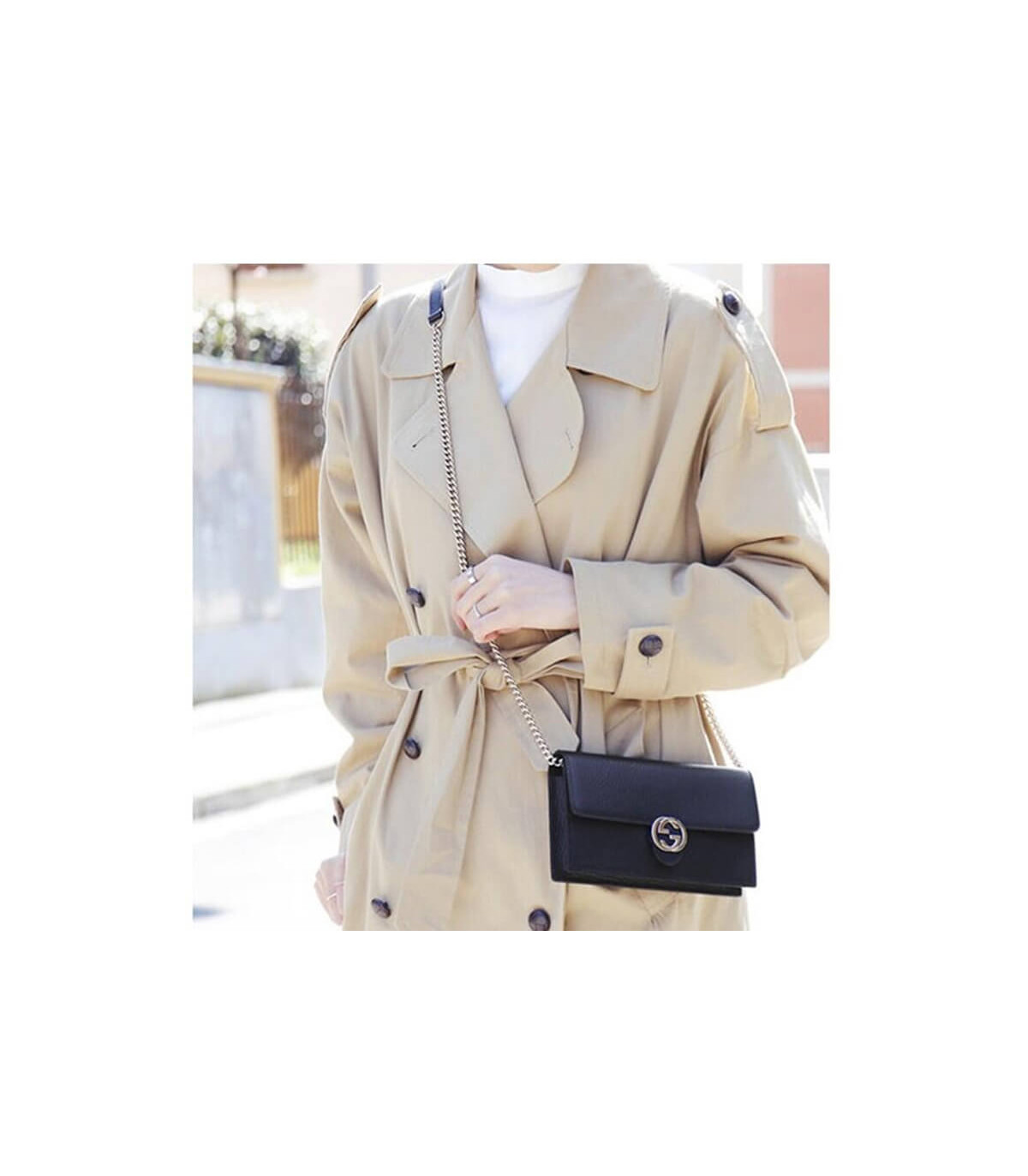 – Removable Golden Chain and Leather Crossbody Strap with a 22″ Drop
