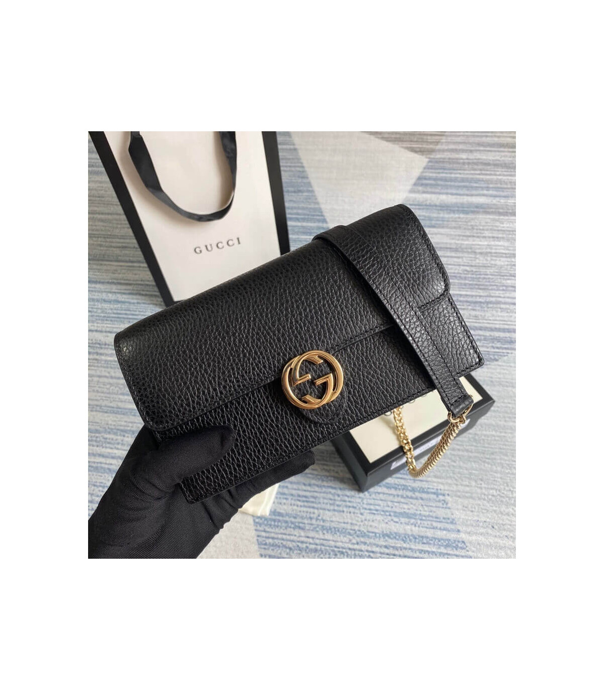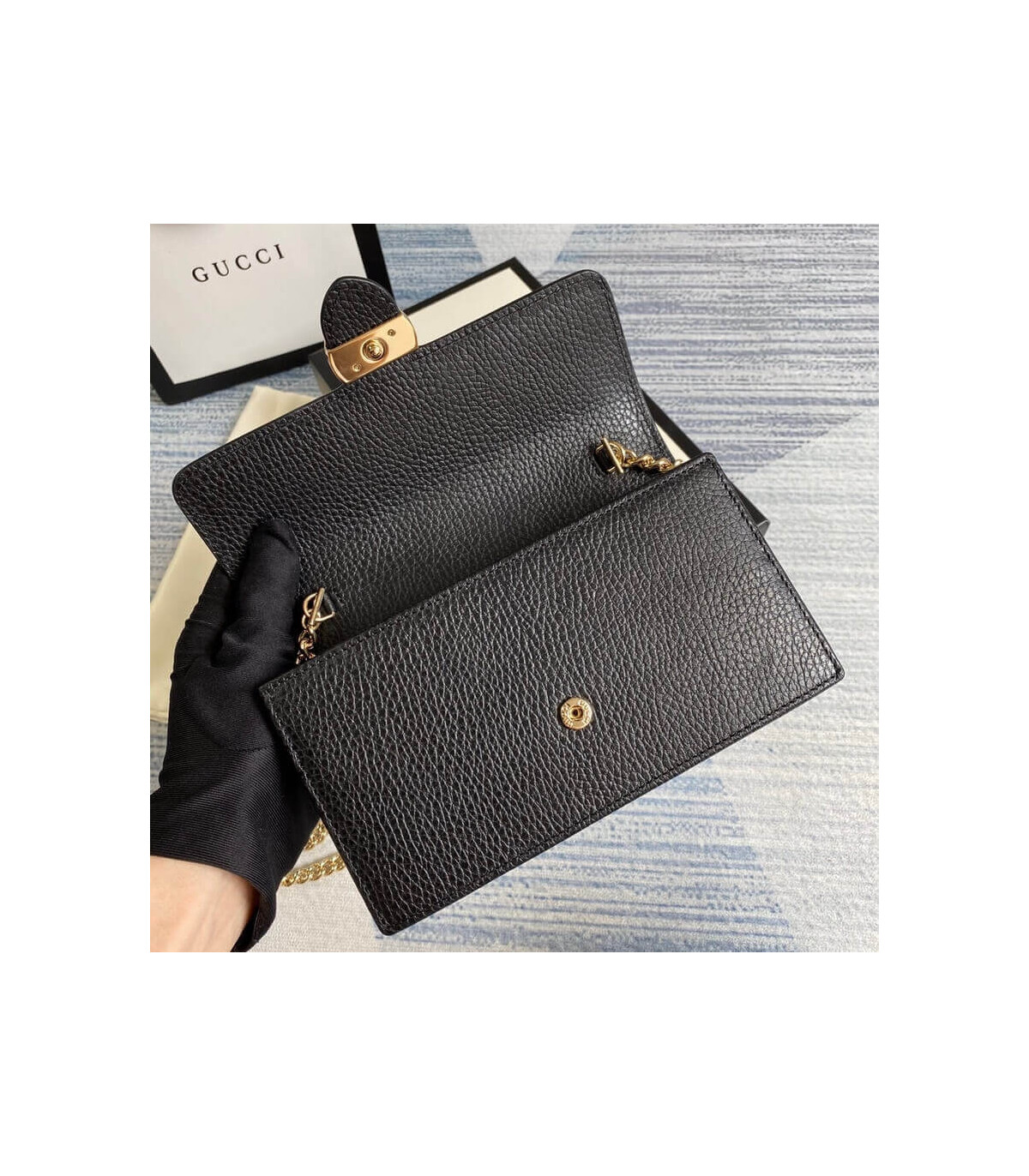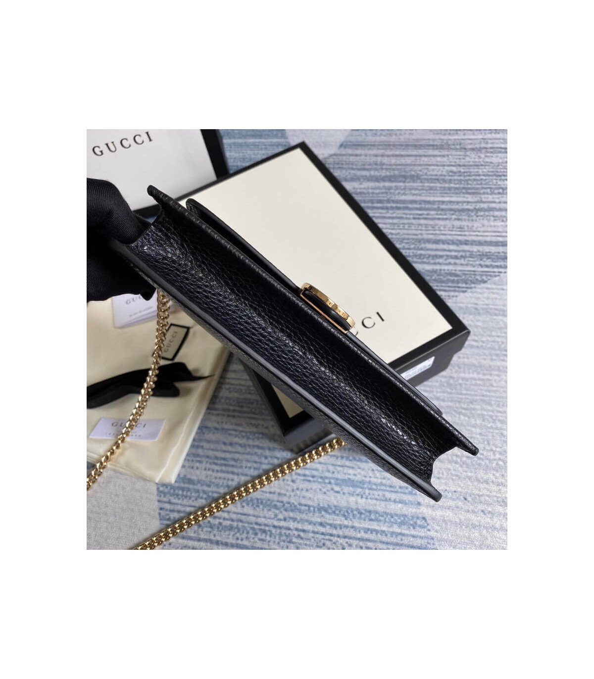 – Removable Golden Chain and Leather Crossbody Strap with a 22″ Drop