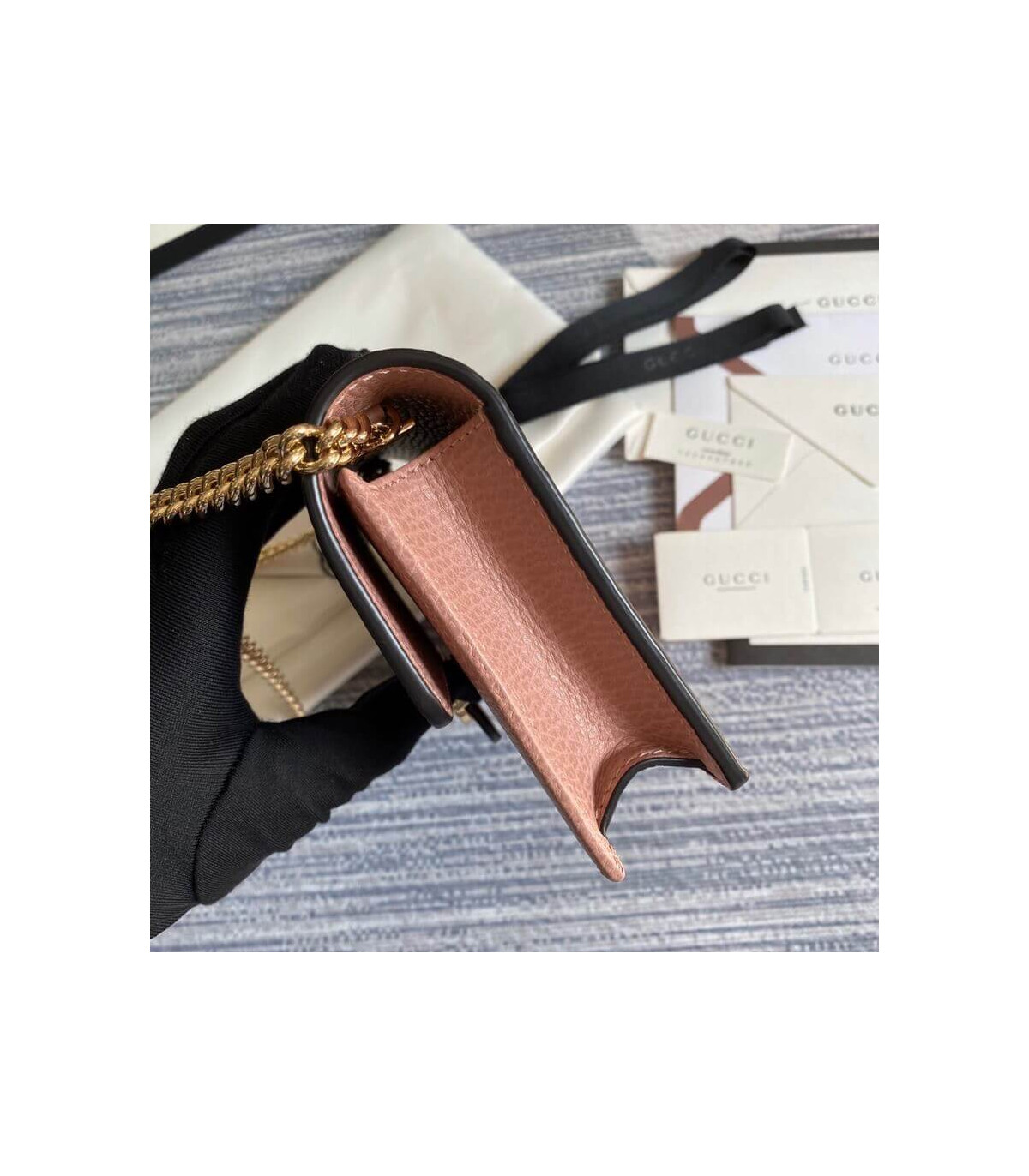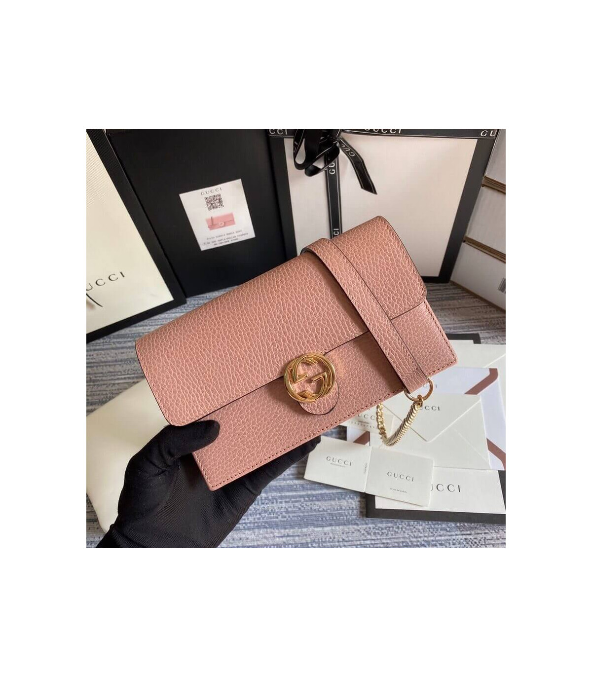 Home Shop All Bags Gucci Gucci GG Interlocking Wallet On Chain Pink