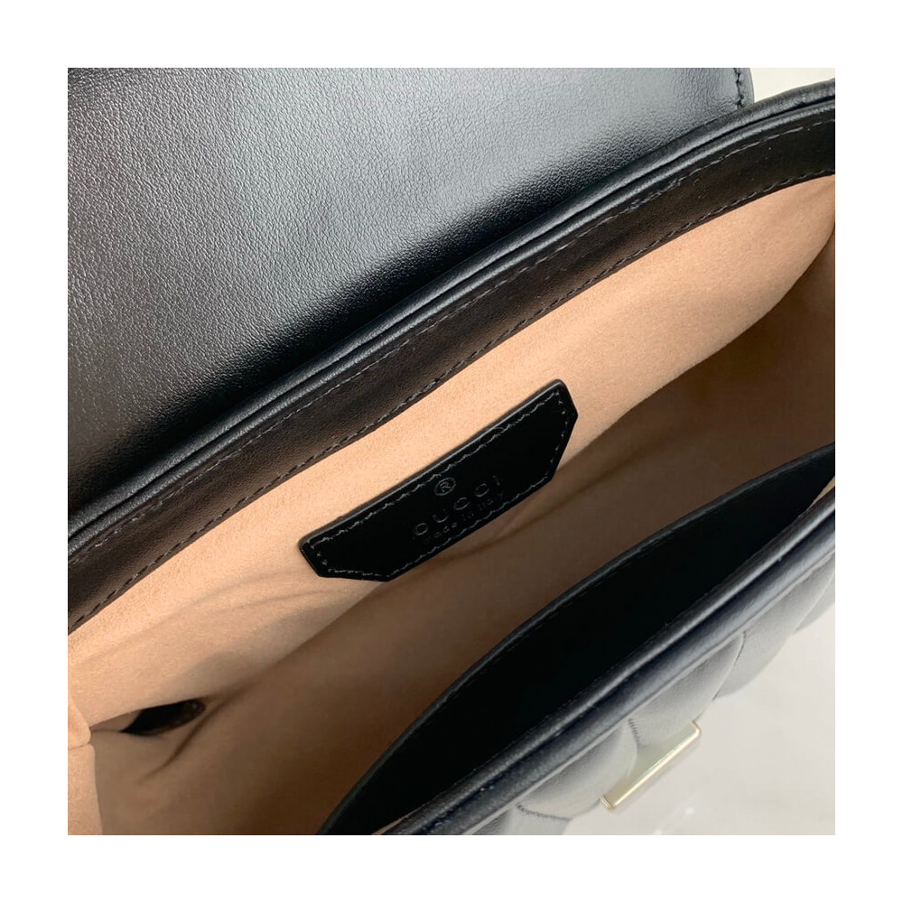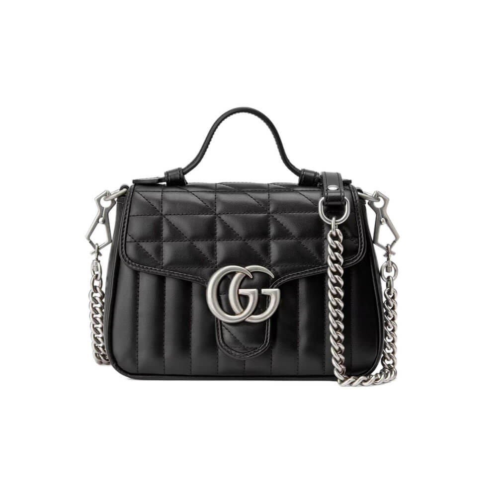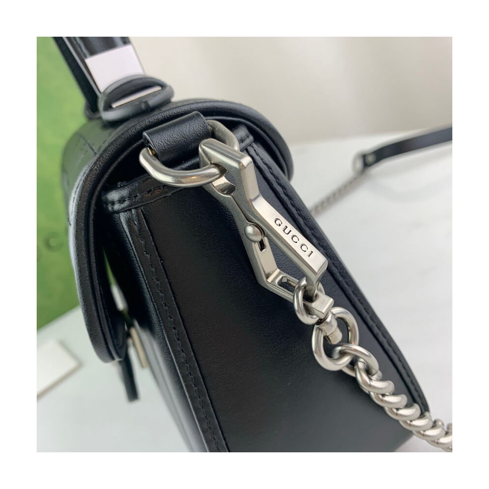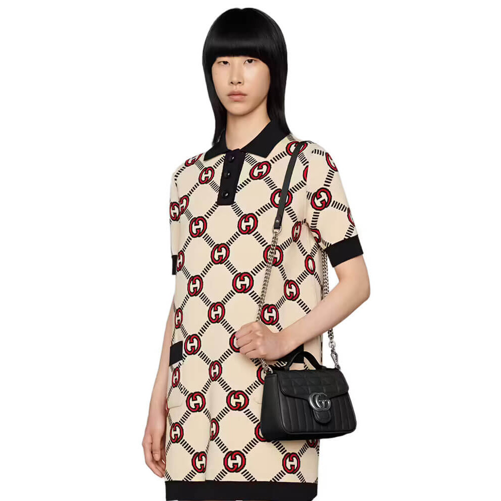 Gucci Aria explores the House’s archives, telling Gucci’s story though a mix of archival and contemporary elements. The GG Marmont was introduced in one of the Creative Director’s first fashion shows and each season its design evolves through the lens of the latest collection. Here, the mini bag is presented in soft white matelassé leather with antique silver-toned hardware.