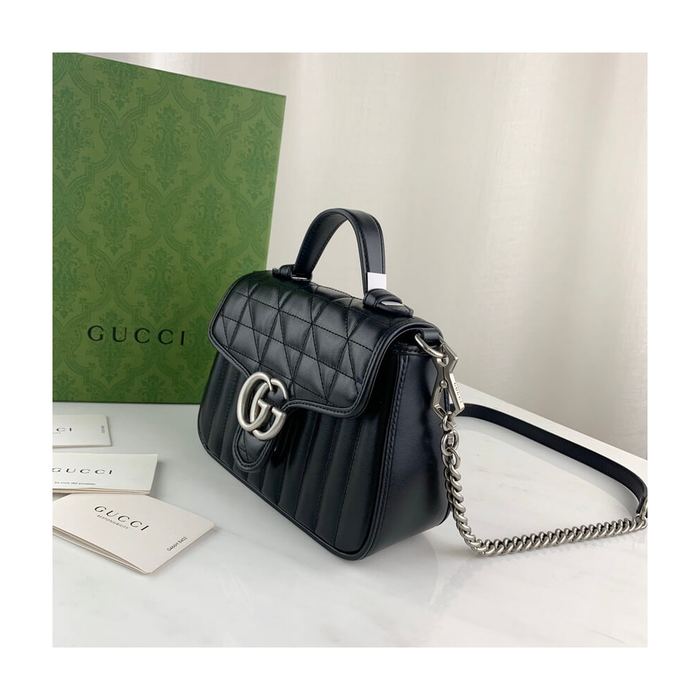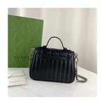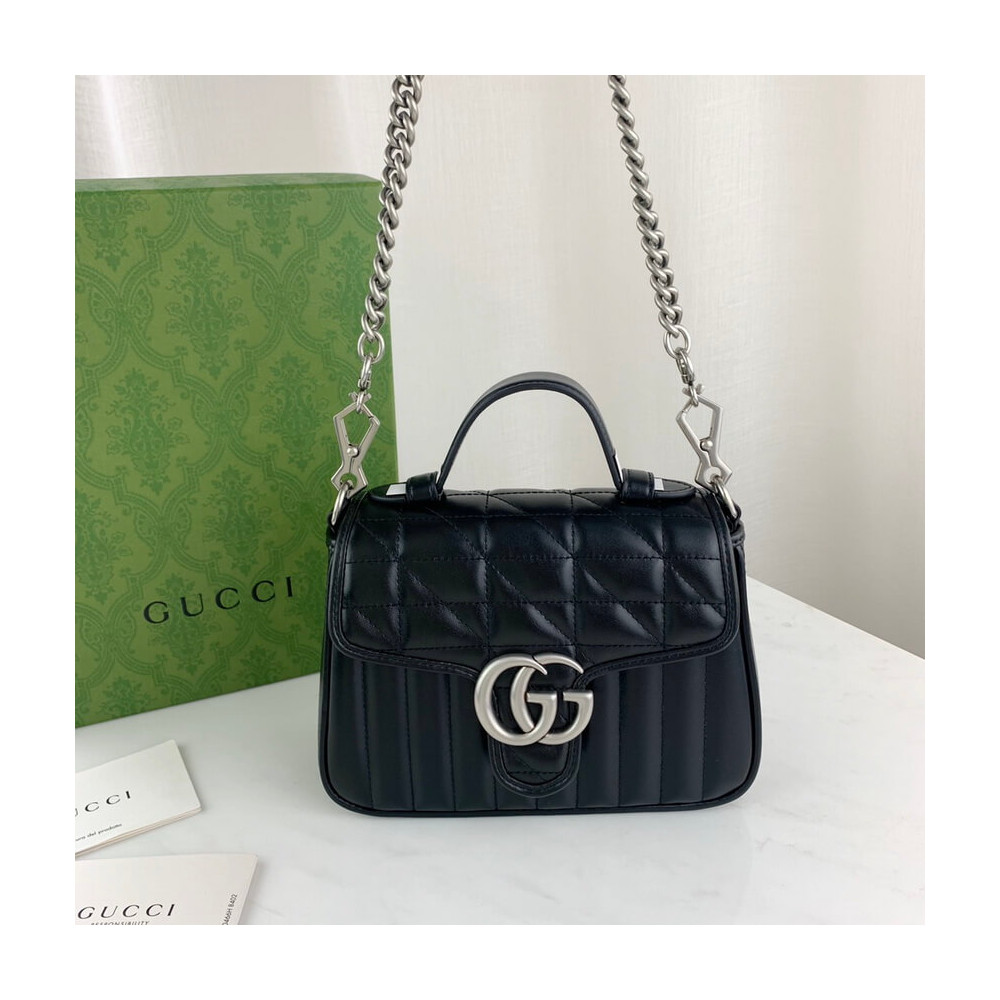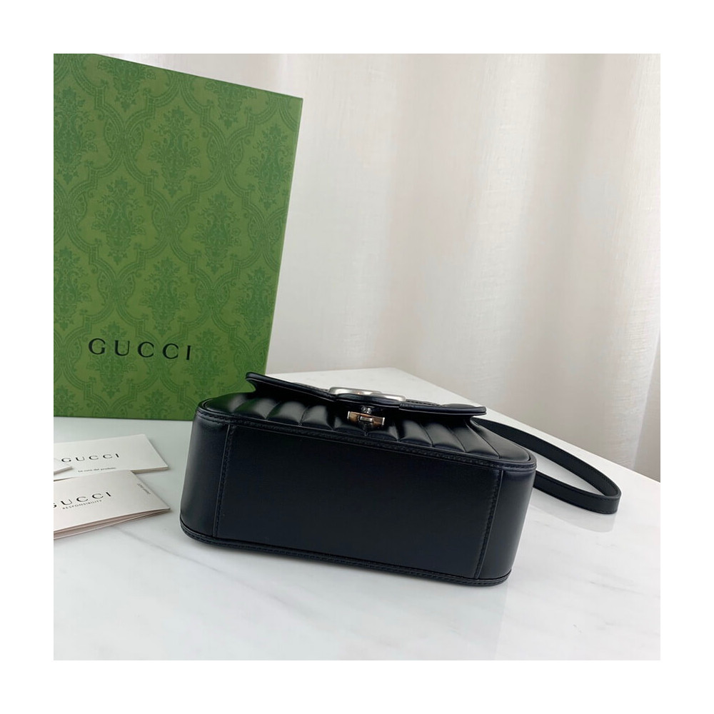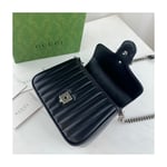 Gucci Aria explores the House’s archives, telling Gucci’s story though a mix of archival and contemporary elements. The GG Marmont was introduced in one of the Creative Director’s first fashion shows and each season its design evolves through the lens of the latest collection. Here, the mini bag is presented in soft white matelassé leather with antique silver-toned hardware.