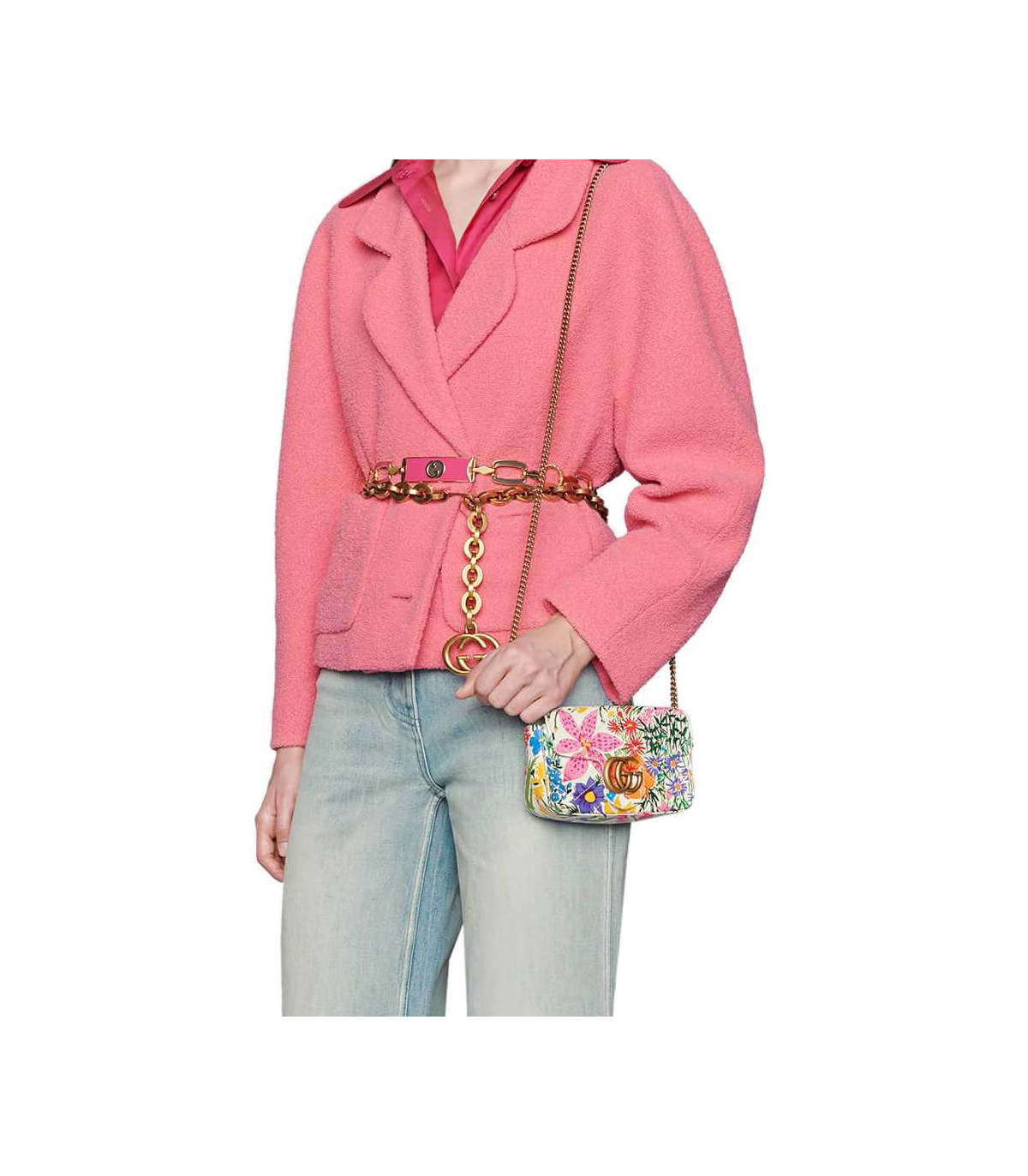 – Chain shoulder strap with 23.5″ drop