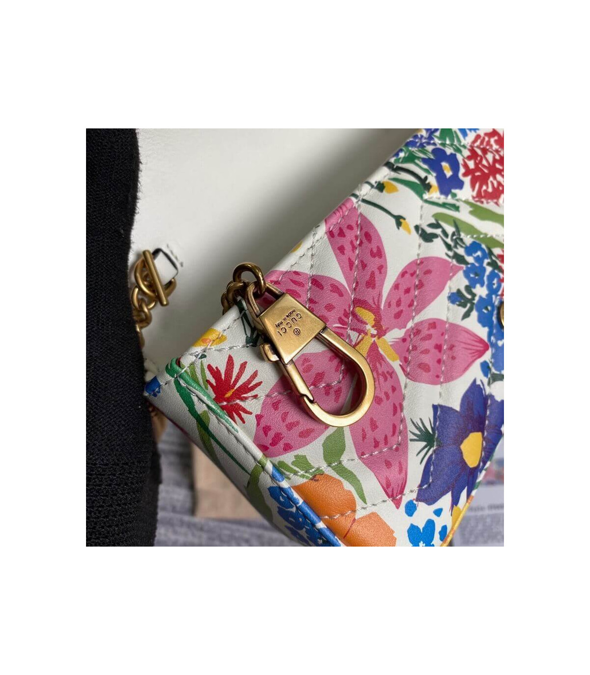– Gold-toned hardware