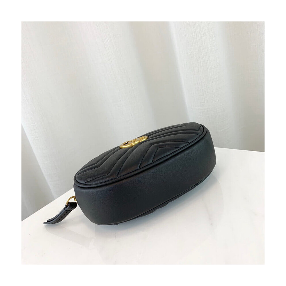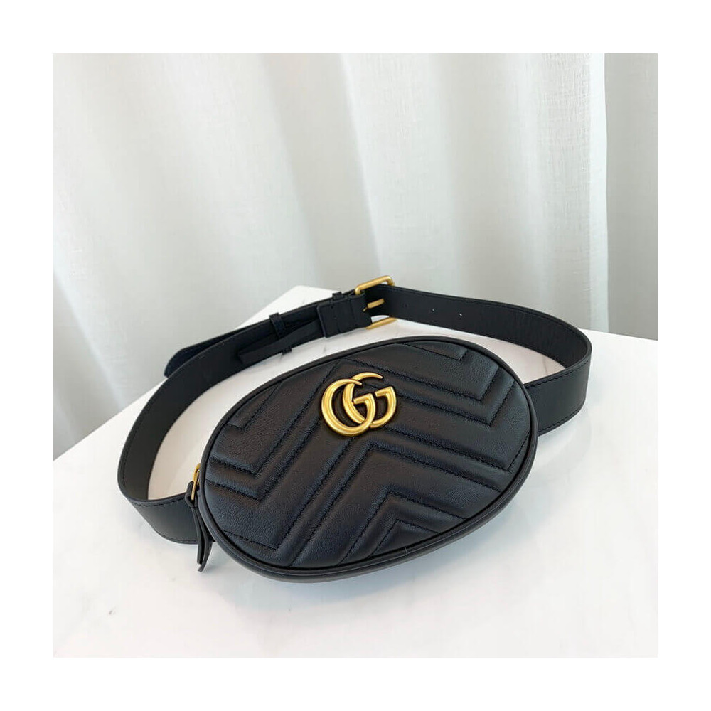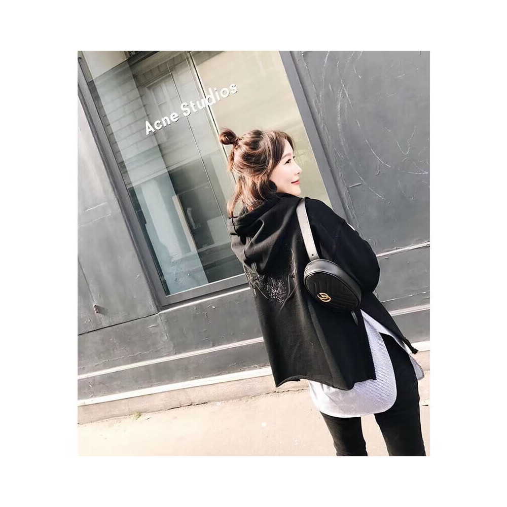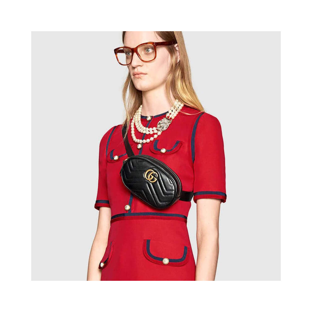 Part of the GG Marmont line, the belt bag was presented for the first time by Alessandro Michele in the Pre-Fall 2017 collection. It has a sportswear-inspired rounded shape with a leather belt which is designed so the bag can be worn high on the waist. It features the recognizable Double G detail-an archival play on the Running G.