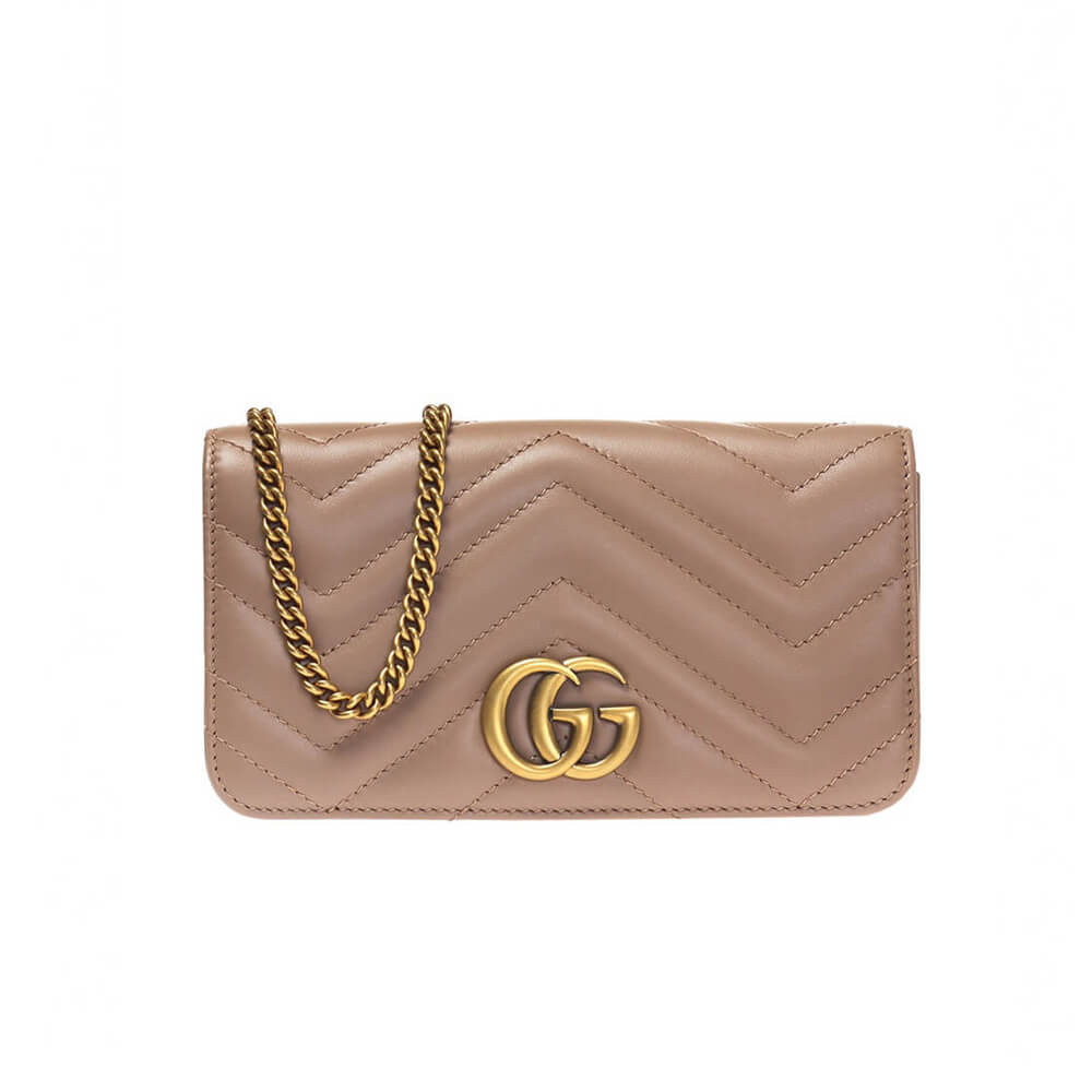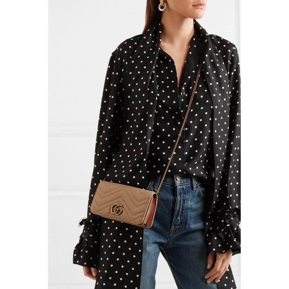 The GG Marmont chain mini bag has a softly structured shape and oversized flap closure with Double G hardware. The hardware is inspired by an archival design from the ’70s. Made in matelassé chevron leather.