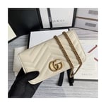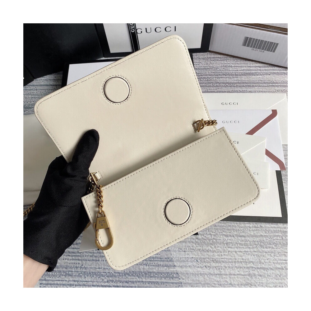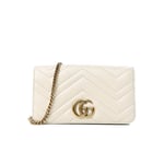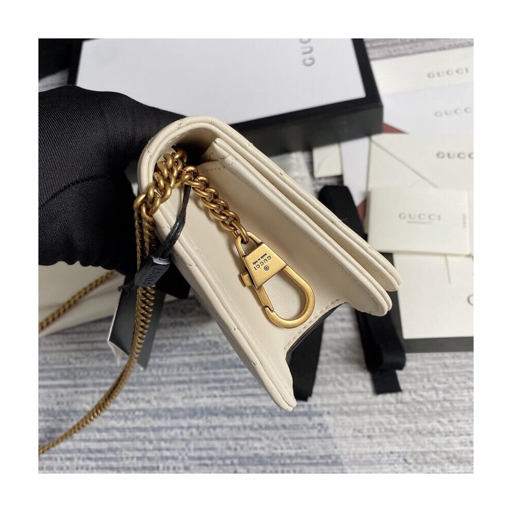 The GG Marmont chain mini bag has a softly structured shape and oversized flap closure with Double G hardware. The hardware is inspired by an archival design from the ’70s. Made in matelassé chevron leather.