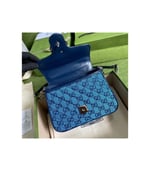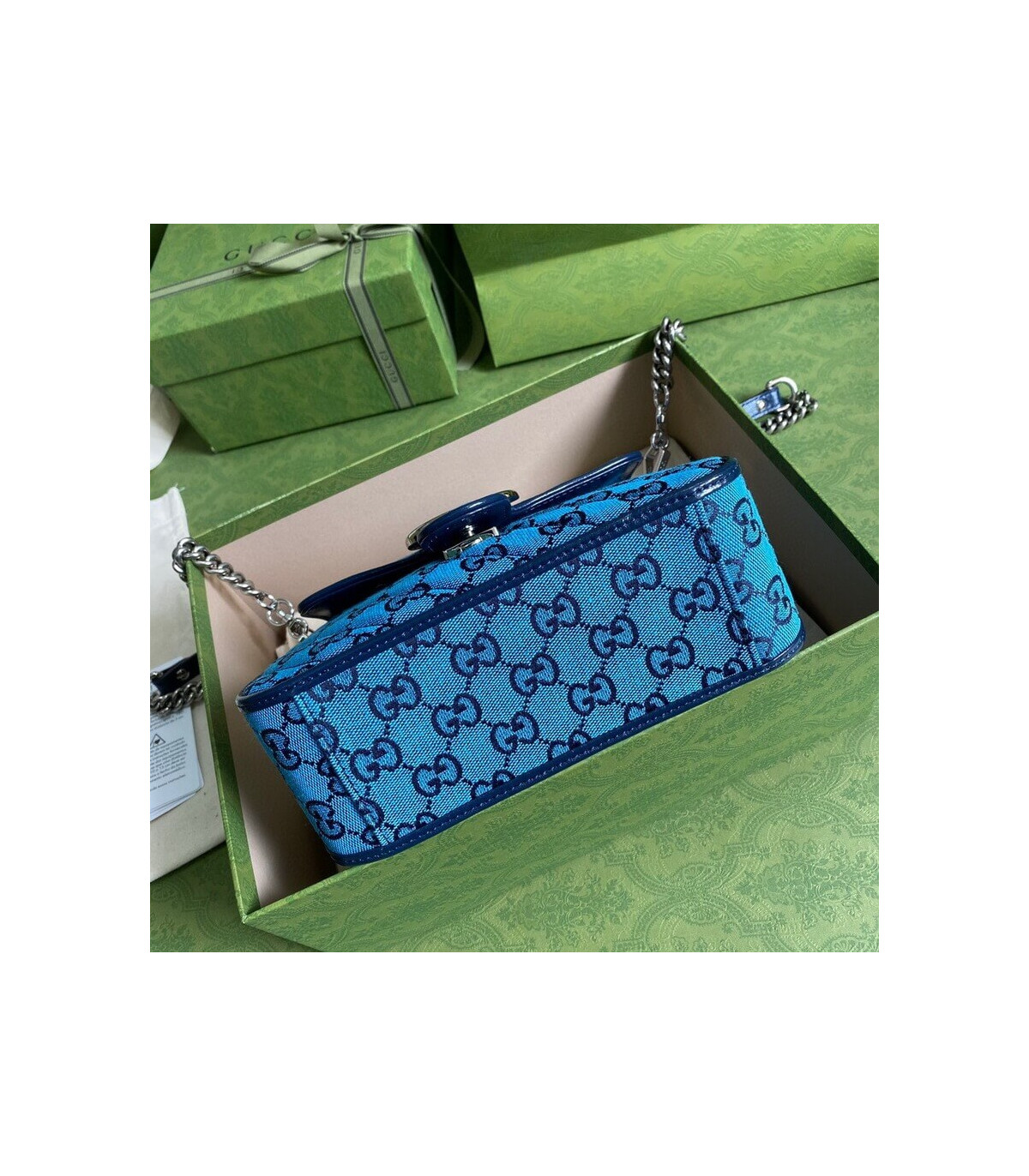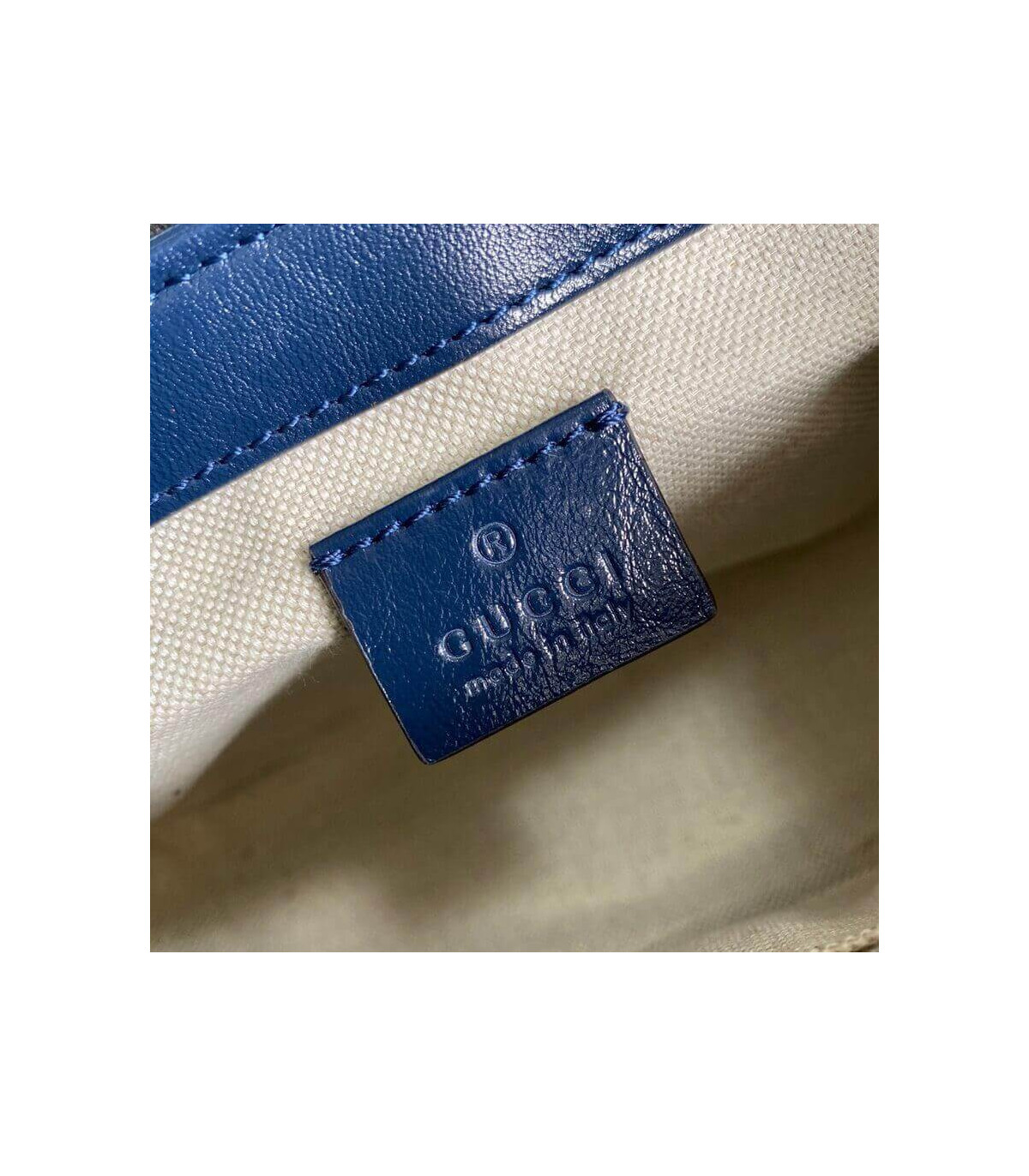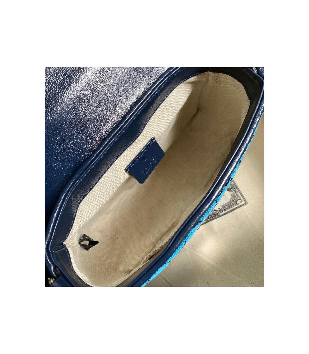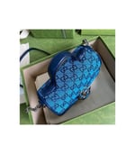 Embracing the new possibilities that lie within variations of the Gucci archives, various pieces throughout the collection provide a new lens through which to view the emblematic GG rhombi motif. Already an evolution of the House logo, it is once again reimagined in a series of bright colors—a theme that has become synonymous with the Creative Director’s vision. This GG Marmont mini top handle bag is part of the GG Multicolor collection.