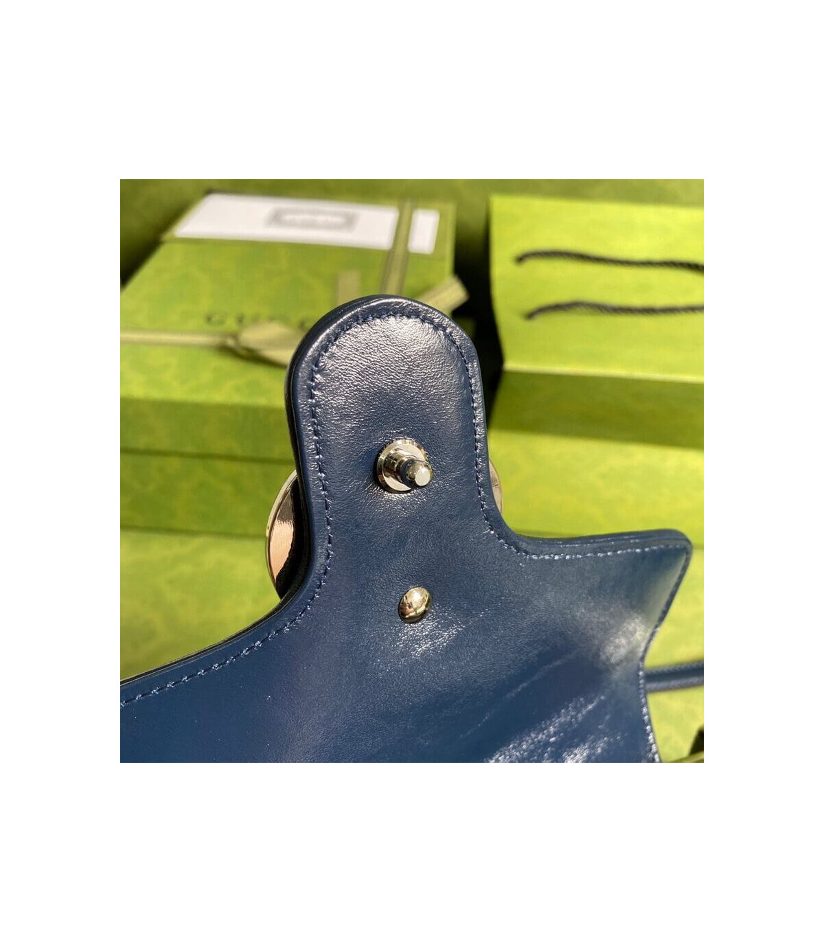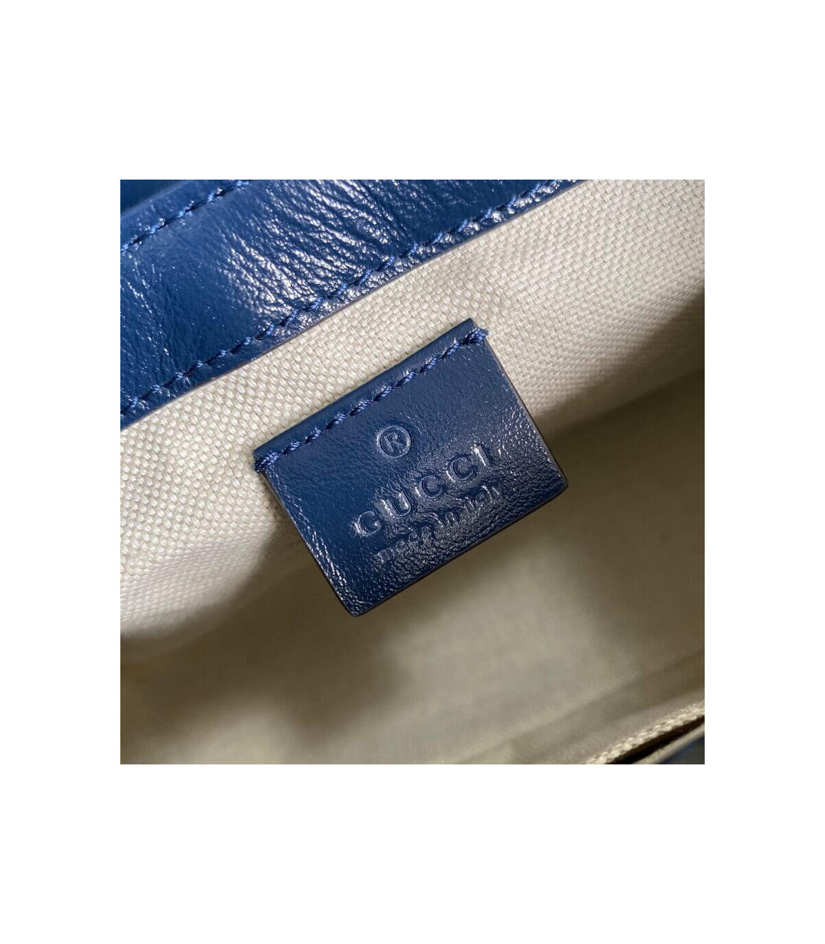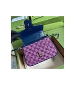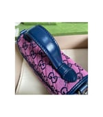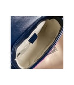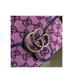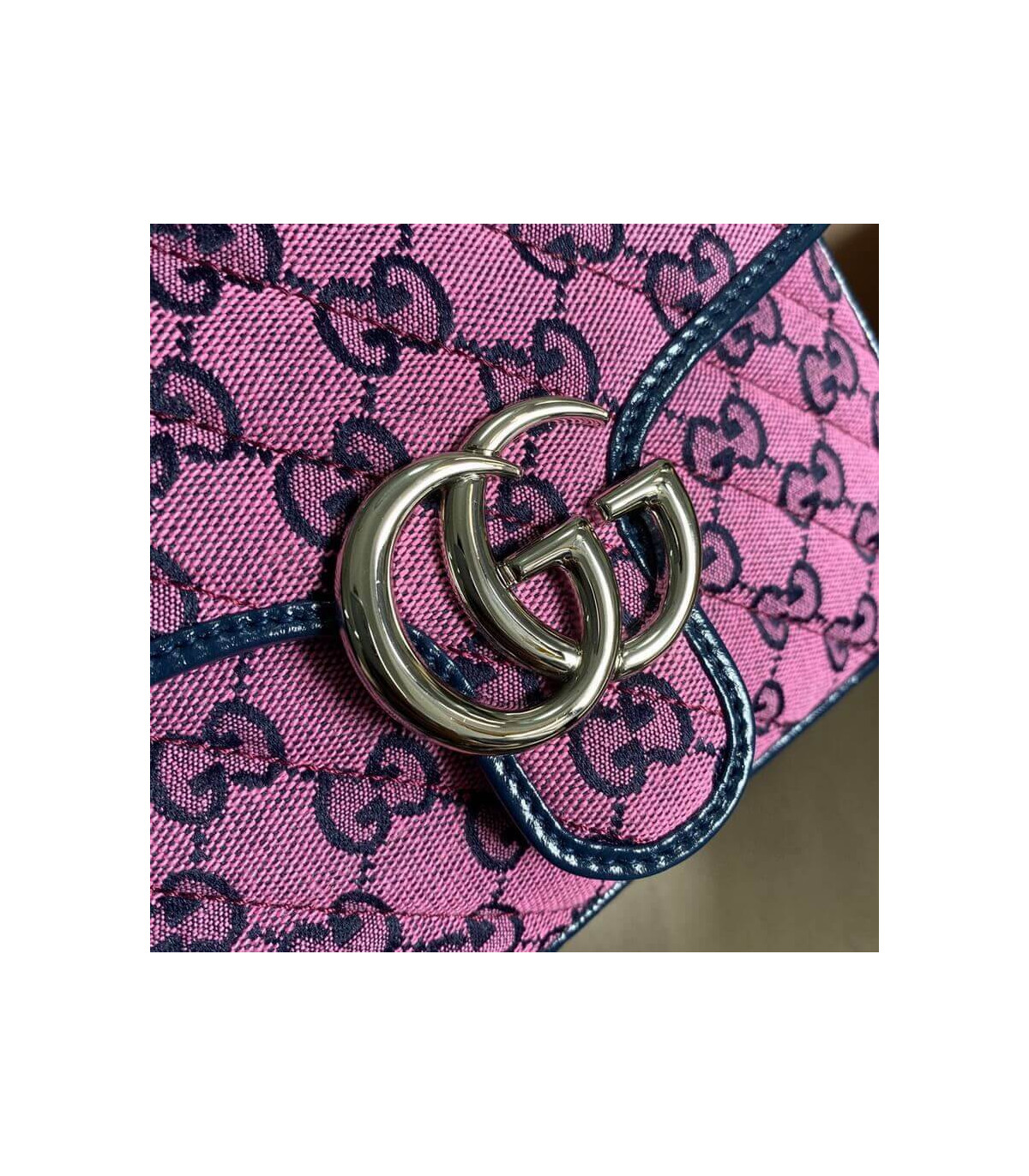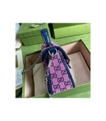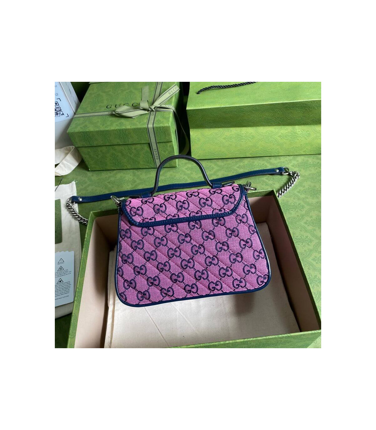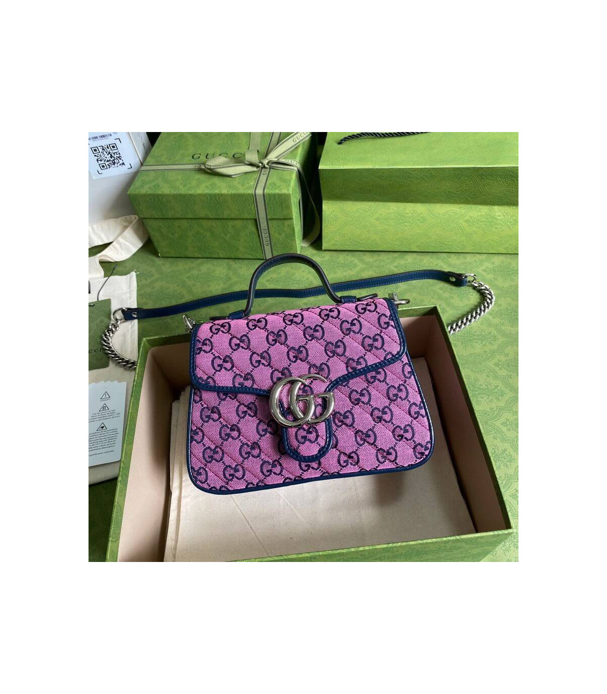 Embracing the new possibilities that lie within variations of the Gucci archives, various pieces throughout the collection provide a new lens through which to view the emblematic GG rhombi motif. Already an evolution of the House logo, it is once again reimagined in a series of bright colors—a theme that has become synonymous with the Creative Director’s vision. This GG Marmont mini top handle bag is part of the GG Multicolor collection.