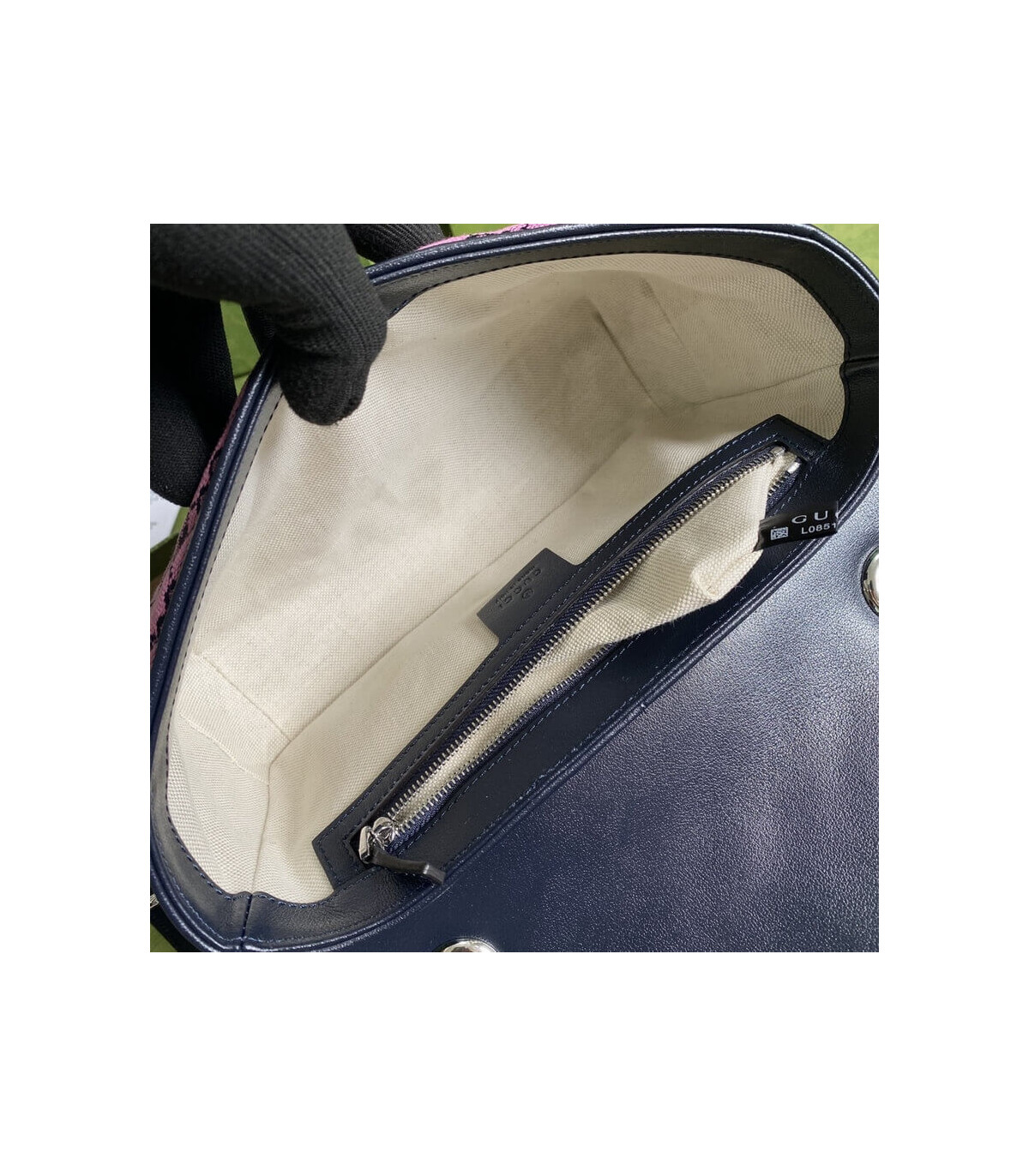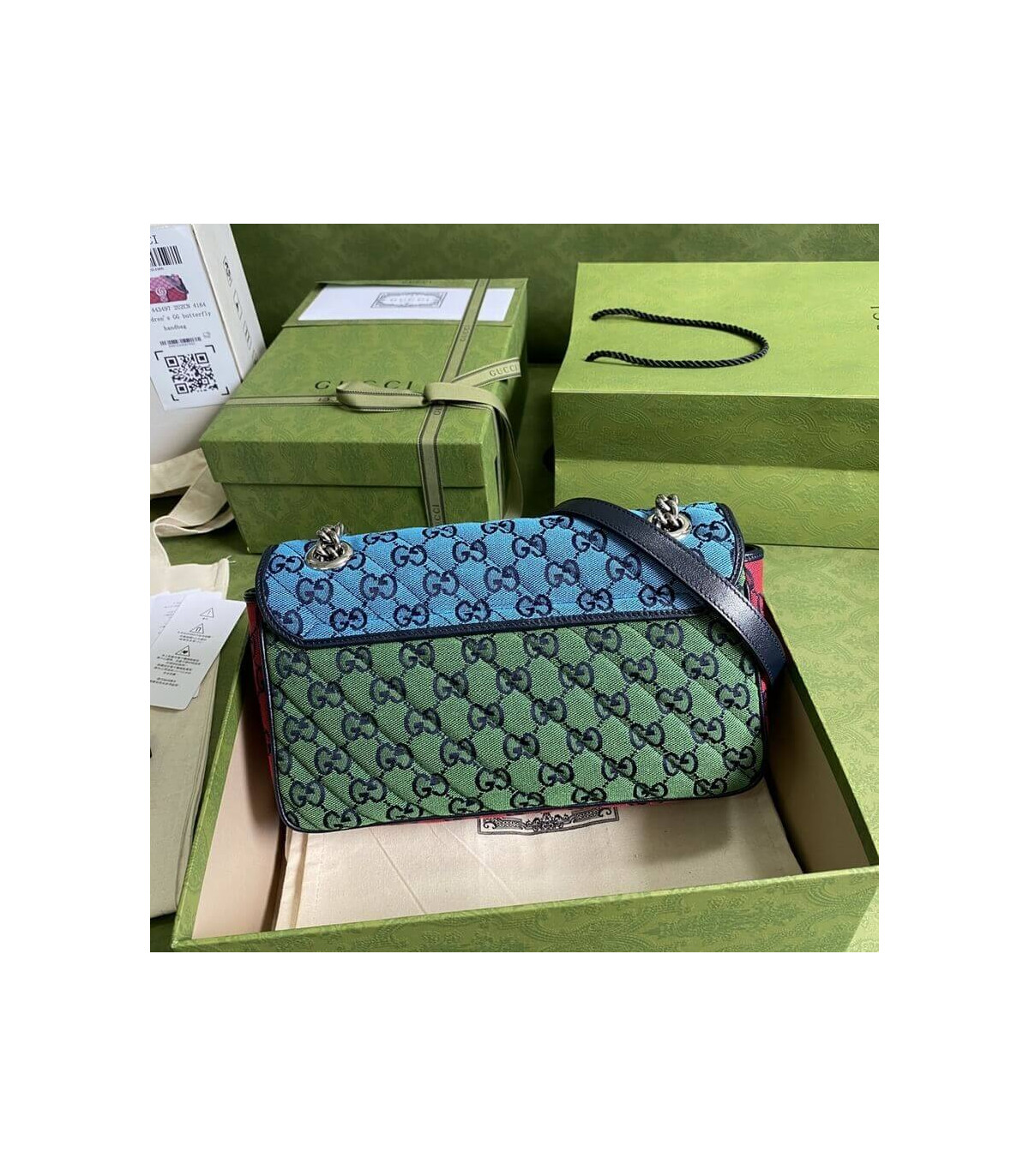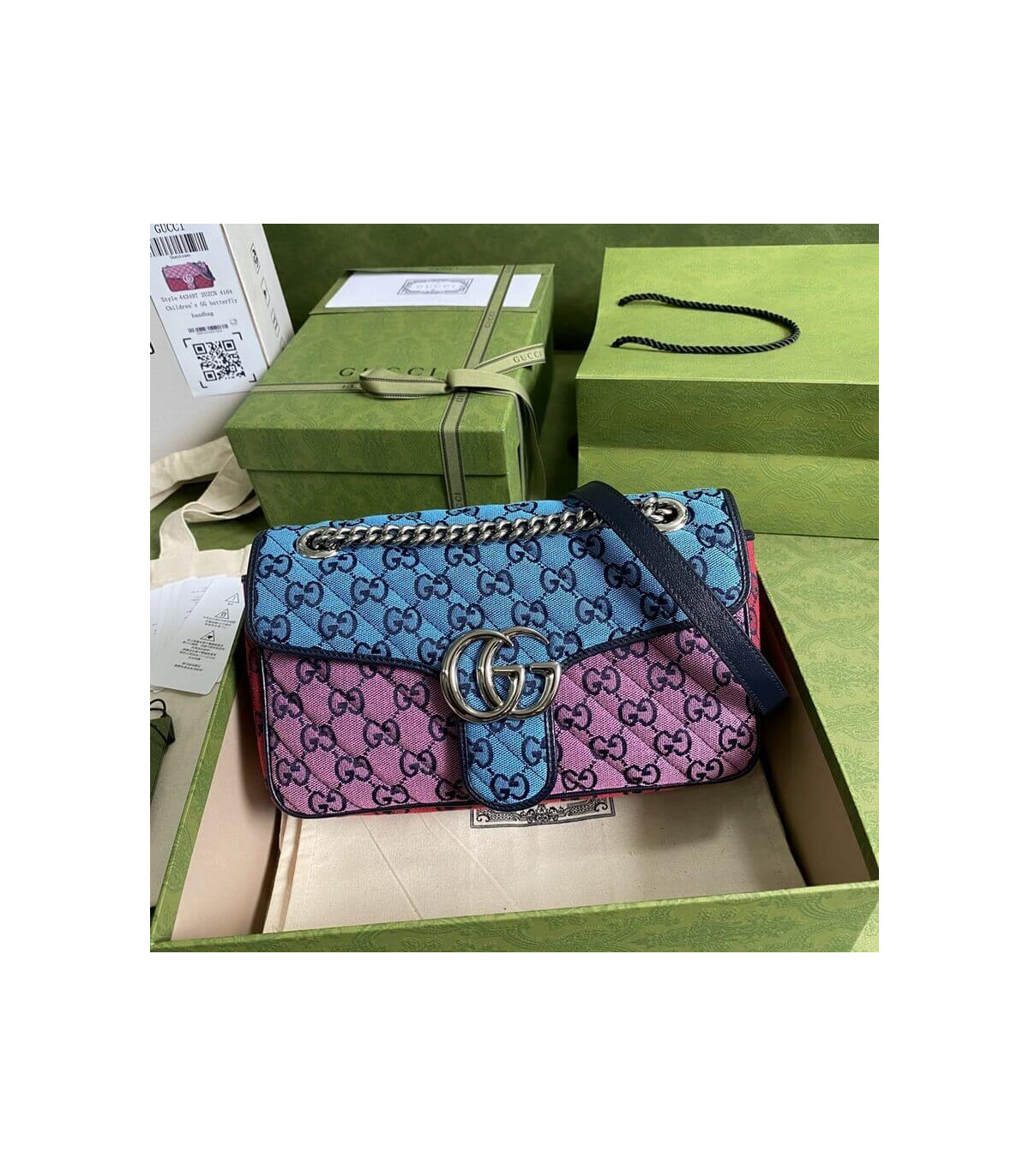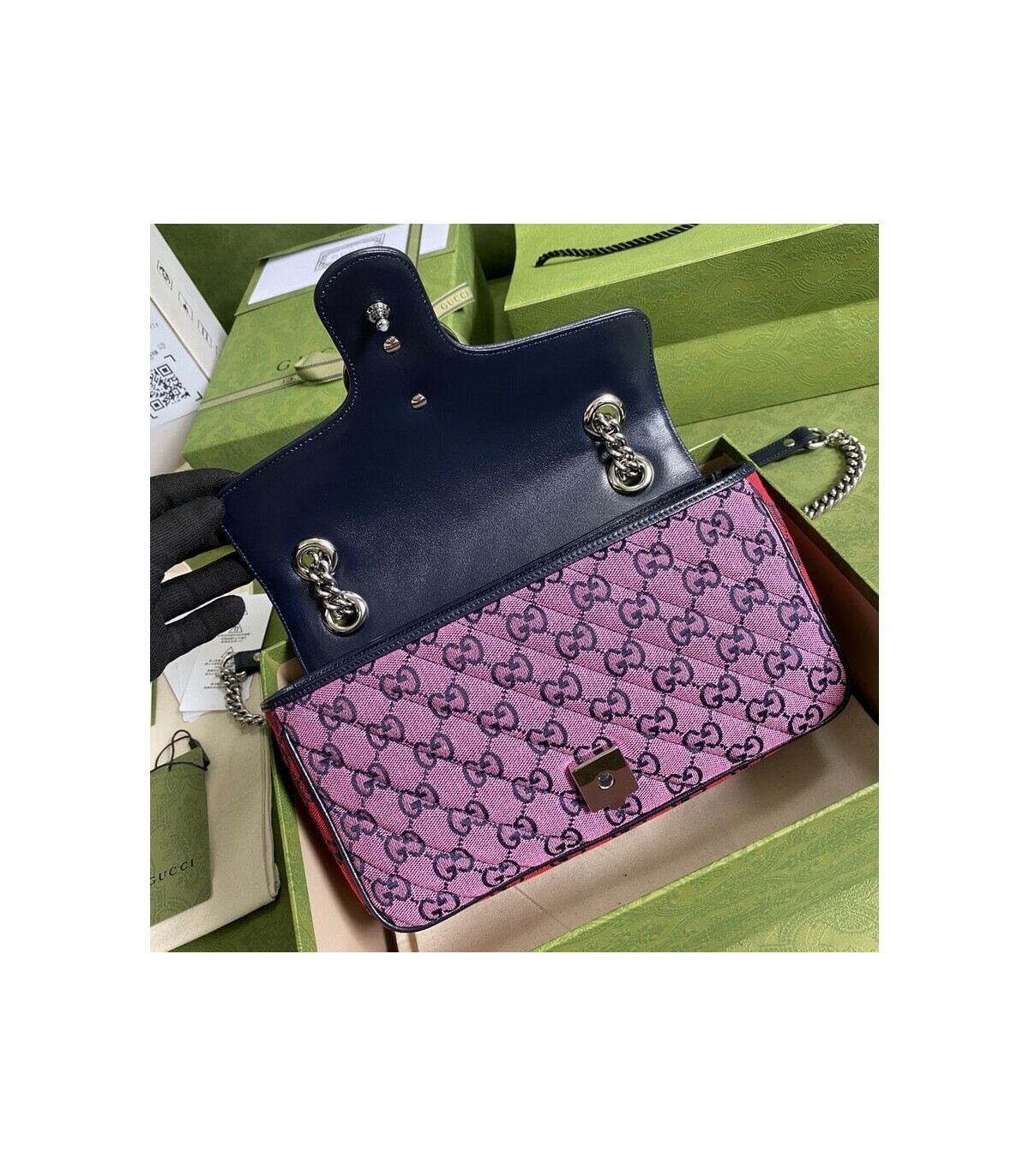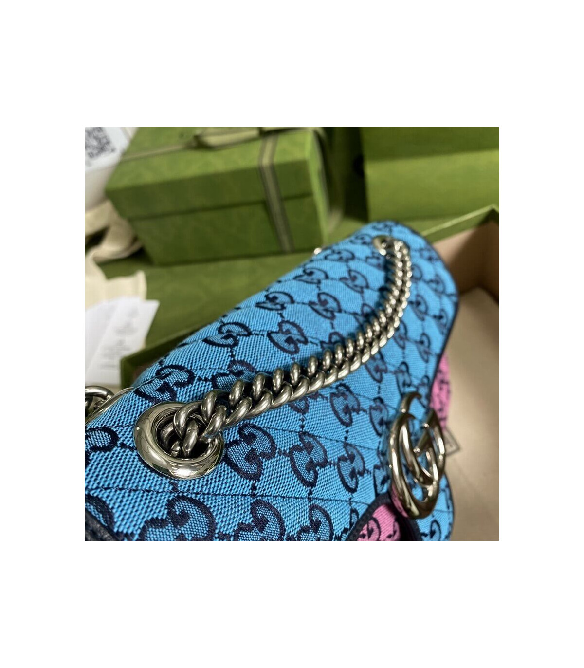 Embracing the new possibilities that lie within variations of the Gucci archives, various pieces throughout the collection provide a new lens through which to view the emblematic GG rhombi motif. Already an evolution of the House logo, it is once again reimagined in a series of bright colours—a theme that has become synonymous with the Creative Director’s vision. This GG Marmont small shoulder bag has an adjustable strap and is part of the GG Multicolour collection.