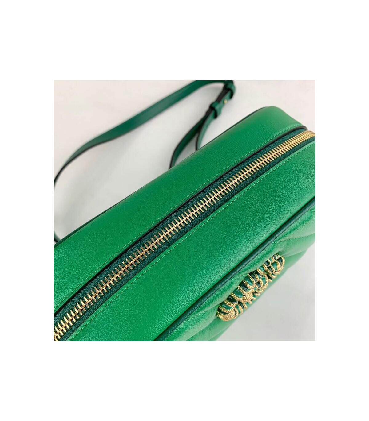 – Gold-toned hardware with green enamel