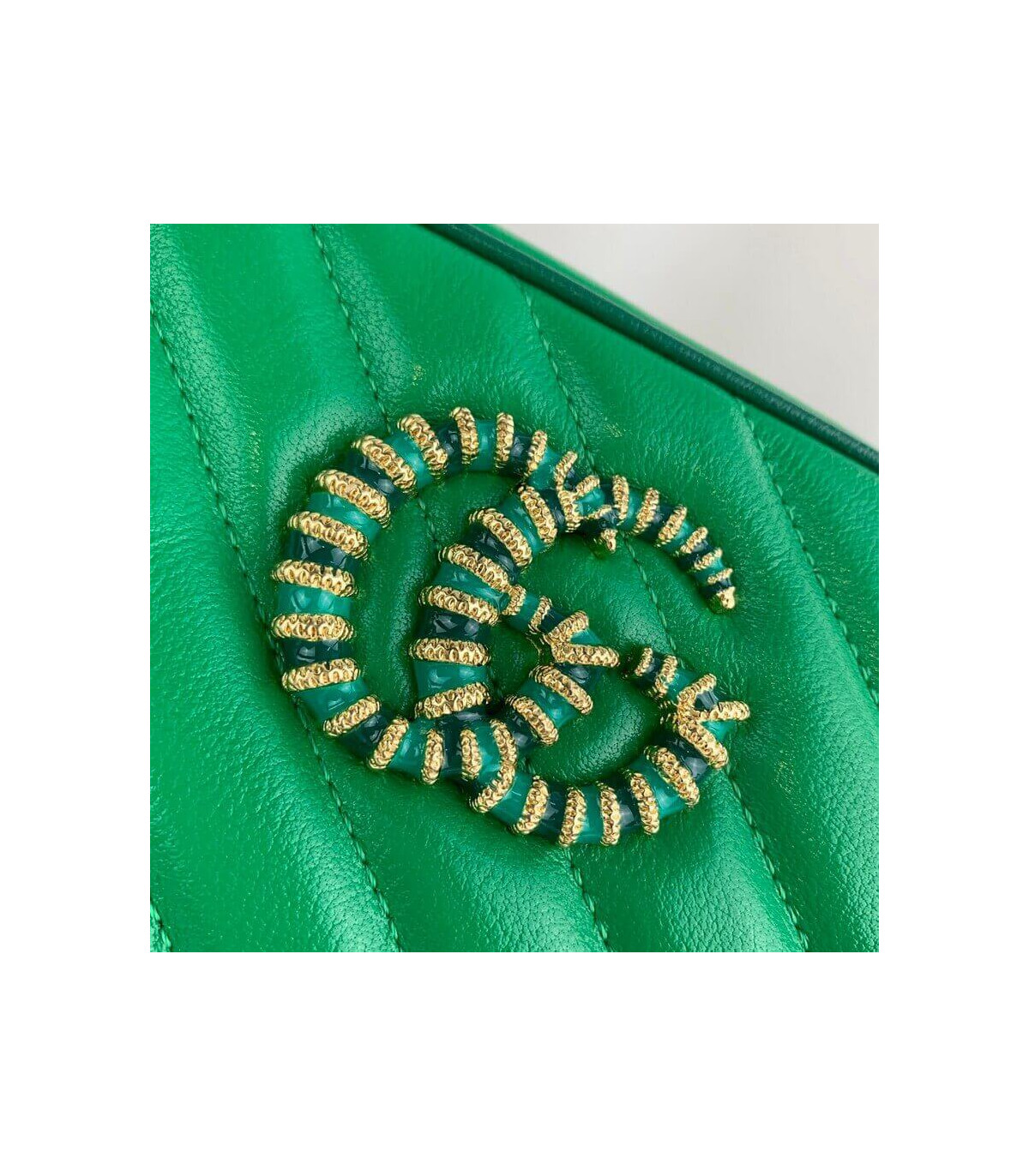 – Bright green diagonal matelassé leather