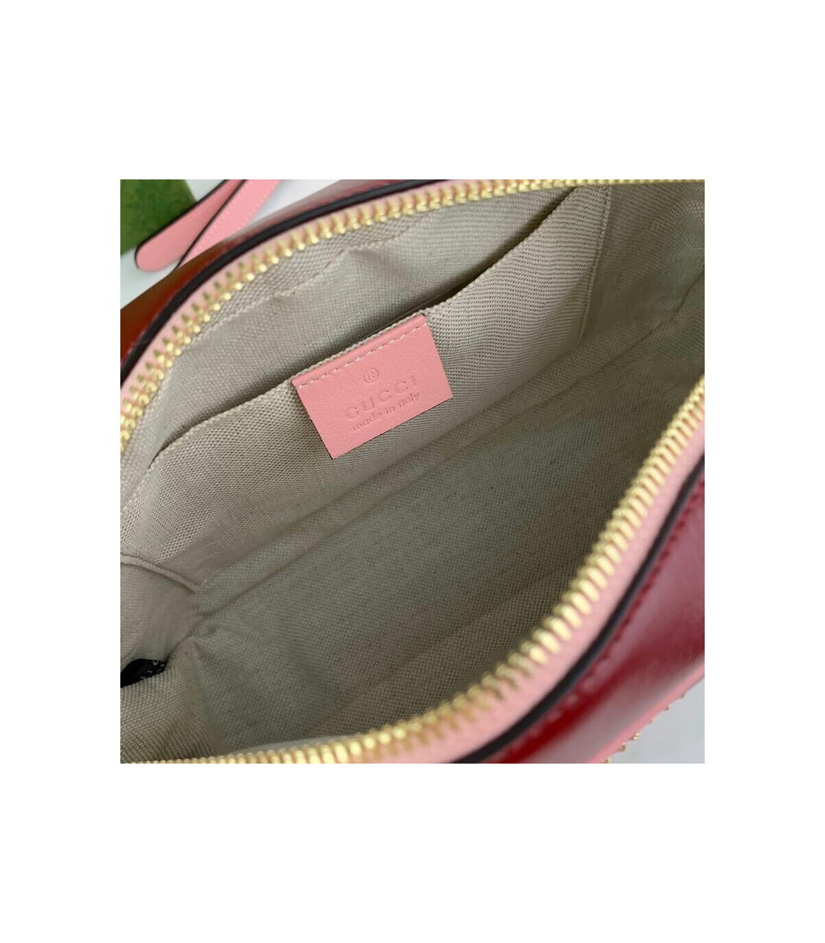 – Gold-toned hardware with green enamel
