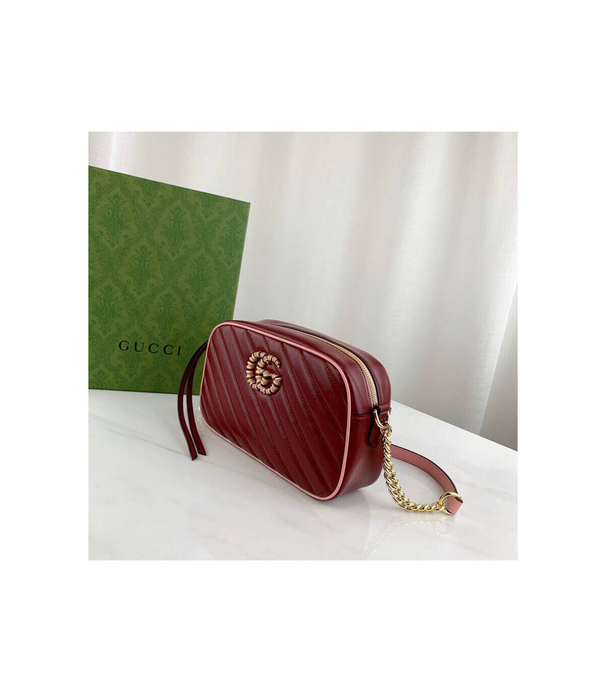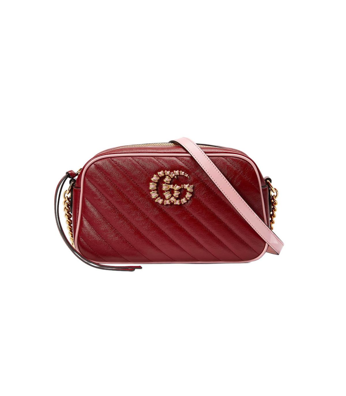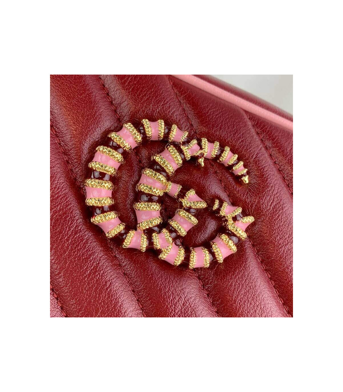 – Dark red diagonal matelassé leather