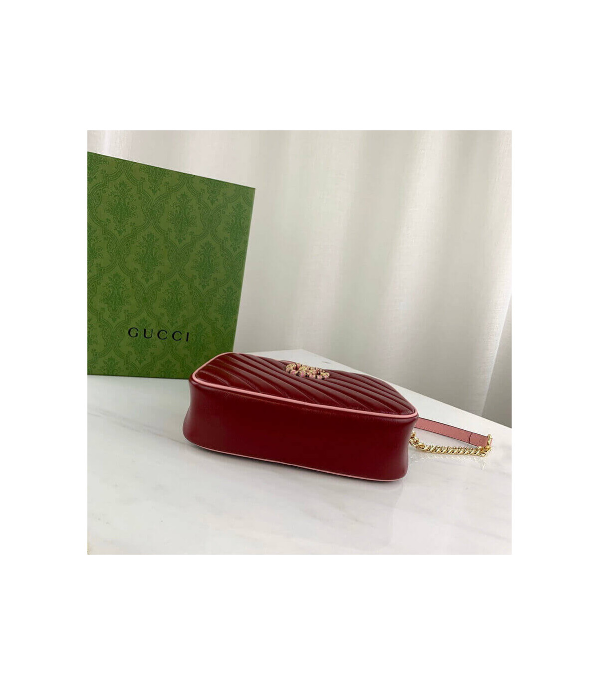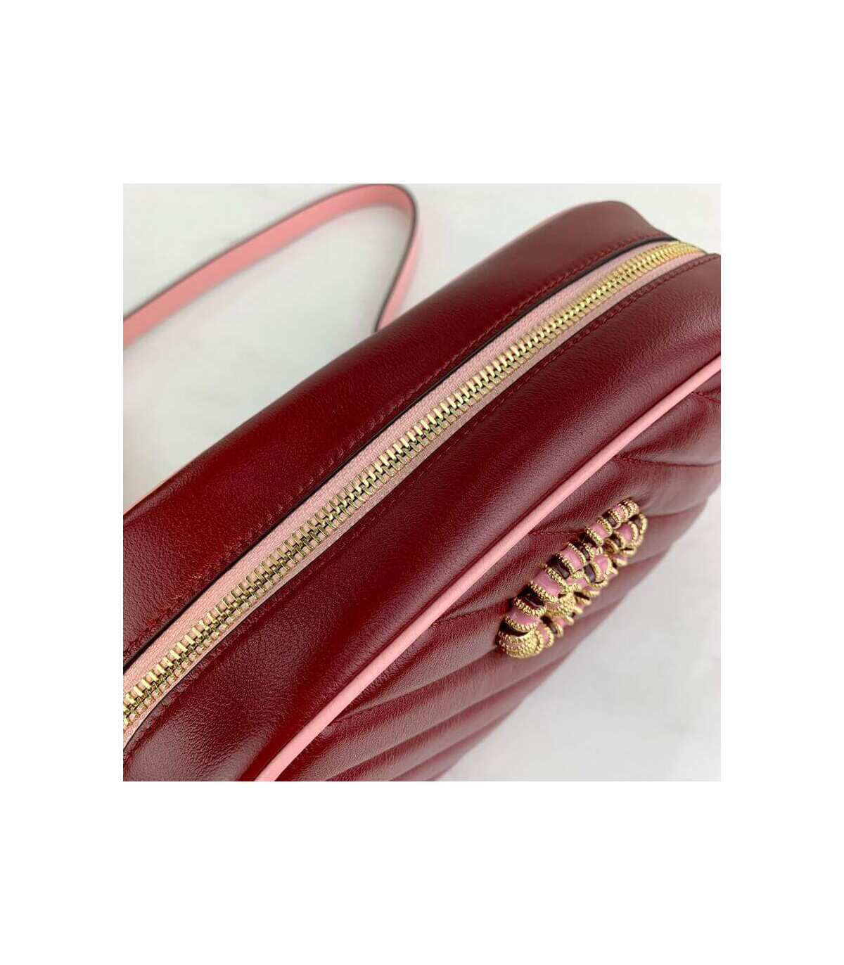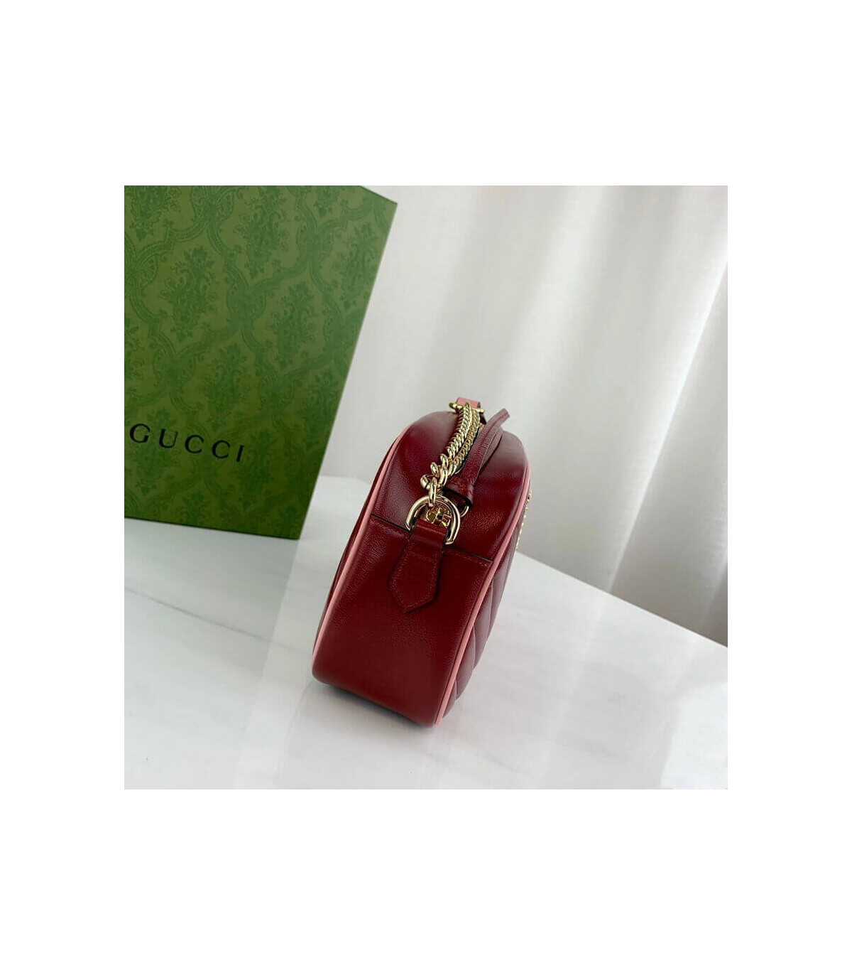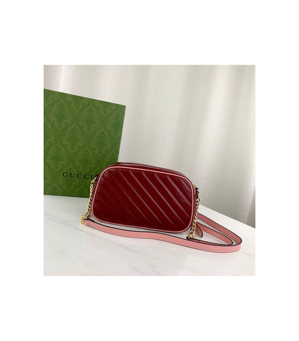 – Dark red diagonal matelassé leather