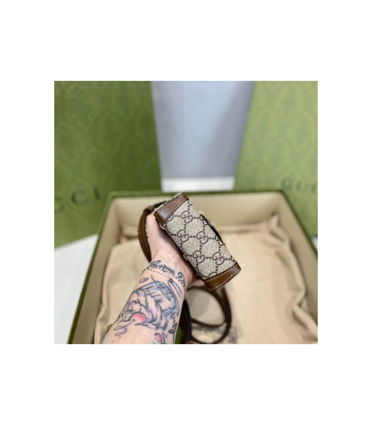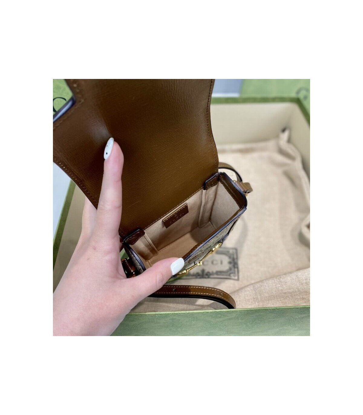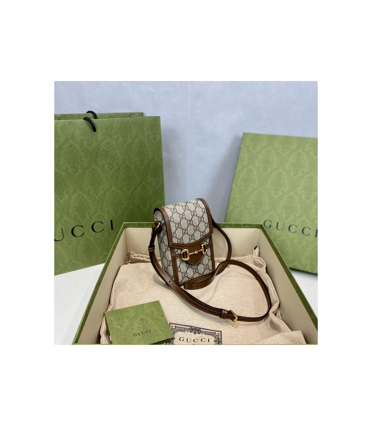 Presented in a petite rectangular shape, the Gucci Horsebit 1955 mini bag is introduced in the House’s monogram canvas. Inspired by archival designs, the accessory highlights the double ring and bar design that has been established as one of the most distinctive elements among the House symbols borrowed from the equestrian world. Pieces with versatile ways to wear and style embrace each person who is part of the House’s individual spirit.